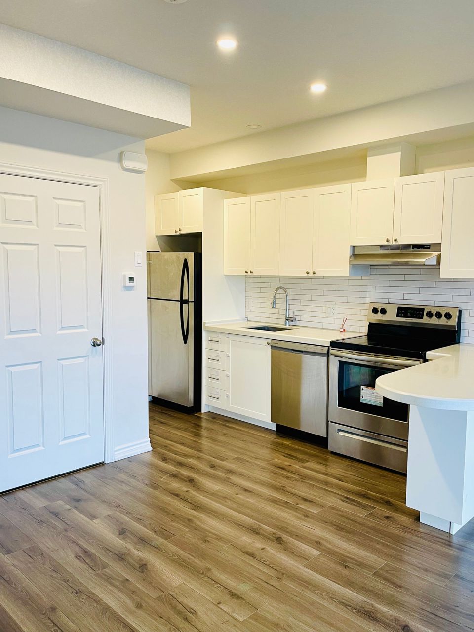 Spacious three bedroom and three full baths (two en-suites) in this townhouse condo in highly desirable area of Kitchener, close to all schools, shopping, and amenities, on the bus route. This stunningly chic, and super stylish unit features stainless steel appliances, quartz counters, pot lights, two balconies (one off the primary bedroom) glass shower, tiled floors. Upper Floor Has 2 Bedrooms + Laundry Room For Ease Of Convenience. Primary Bedroom Has Large Closets & Full Ensuite.Includes: Stove, Fridge, Dishwasher, Washer, Dryer, All Electrical Light Fixtures. All Utilities Are Extra. Comes With Only 1 Parking Spot. Visitor Parking available.