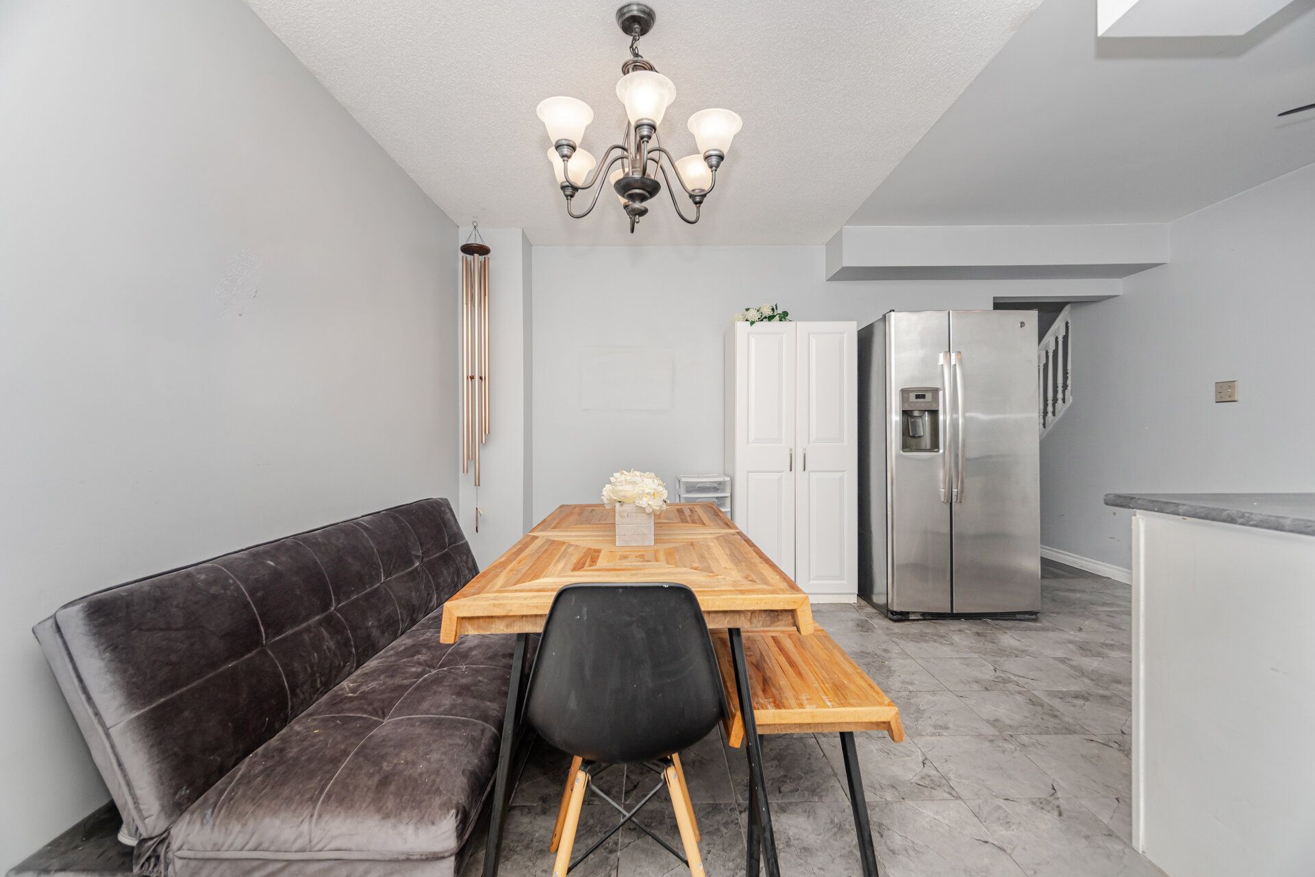 步入室内,您会发现一个明亮实用的布局。主层设有一个宽敞、阳光充足的客厅、一个温馨的用餐区和一个实用的厨房,提供充足的储物空间。楼上有三间舒适的卧室和一间设施齐全的浴室,非常适合家庭居住。