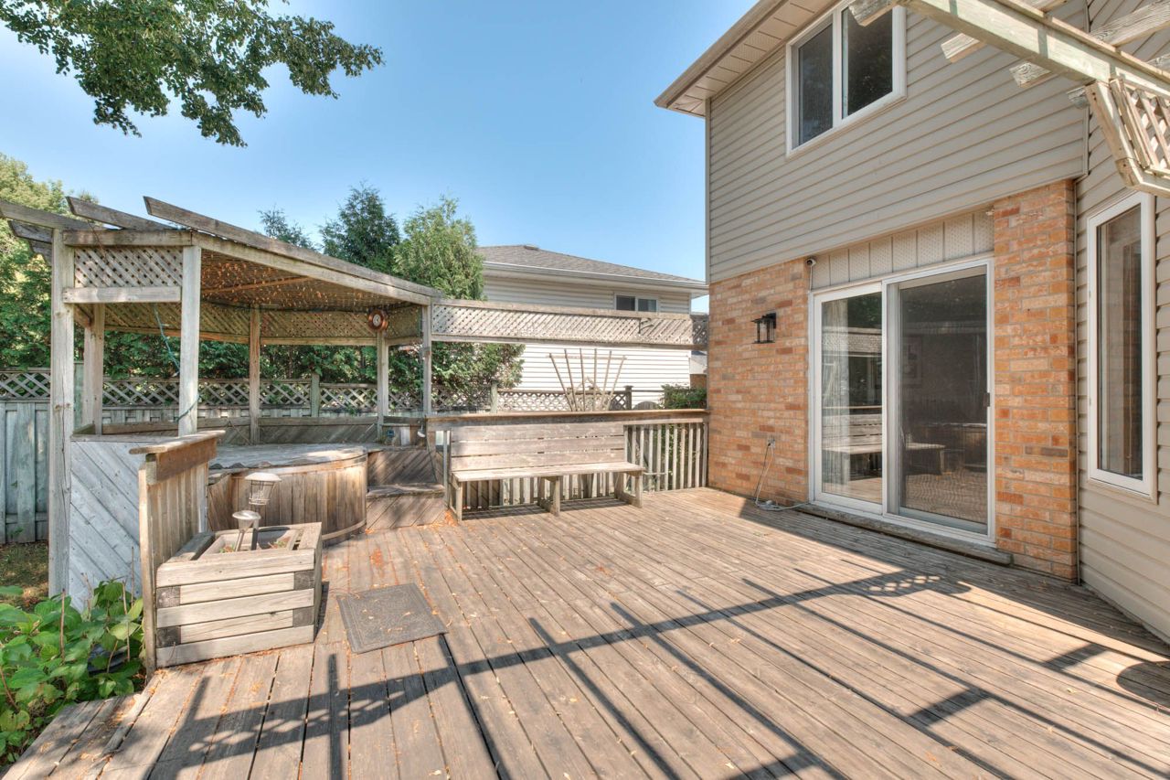 Your Private Backyard Oasis Awaits in Grand River North! Welcome to this beautifully maintained 3+1 bedroom, 4-bathroom family home nestled on a quiet court in the sought-after Grand River North neighbourhood of Kitchener. Backing directly onto serene nature trails, this home offers the perfect blend of comfort, style, and outdoor beauty. Step inside to a bright and spacious main floor with large windows that flood the home with natural sunlight. The updated kitchen featuring stainless steel appliances, sleek cabinetry, and a functional island with built-in drawers for extra storage. Enjoy cozy evenings by the gas fireplace in the living room, or host summer gatherings in your fully fenced backyard complete with an in-ground pool (liner replaced in 2023) and hot tub perfect for both relaxing and entertaining. Upstairs, you'll find three generously sized bedrooms, two linen closets, and a spacious primary suite with ample natural light. The finished basement includes an additional bedroom, a modern 3-piece bathroom, a laundry room with newer washer and dryer, and a cold cellarideal for extra storage.