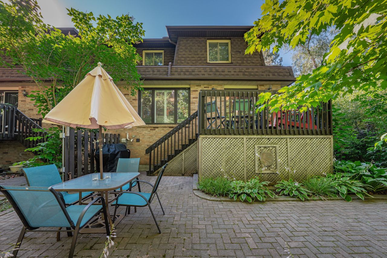 Welcome to this beautifully updated and meticulously maintained 2-bedroom, 4-bathroom end-unit townhome nestled in a quiet, well-managed 12-unit complex. From the moment you step inside, youll be impressed by the modern finishes, fresh paint, and spacious, carpet-free layout that blends comfort with contemporary style. Enjoy low maintenance living with condo fees that include water, exterior maintenance, landscaping, snow removal, and more, giving you more time to relax and enjoy your home. The main floor features a bright and airy living room with a newer gas fireplace and a separate dining area overlooking the private greenspace, ideal for hosting guests or enjoying quiet meals at home. The eat-in kitchen offers ample cabinetry and comes equipped with modern appliances, including a newer fridge, gas stove, dishwasher, and microwave. A stylish 2-piece bathroom completes the main level. Upstairs, you'll find a spacious primary suite with a walk-in closet and a 3-piece ensuite, a generous second bedroom, and an additional 4-piece bath. California ceilings and California shutters add a polished touch throughout the home. The fully finished basement includes a large rec room with a second gas fireplace, updated flooring, and a 3-piece bathroom, plus convenient direct access from the garage and a separate entrance for added privacy or in-law potential. Step outside to your private backyard, featuring a raised deck and interlocking patio, perfect for morning coffee or summer BBQs with a gas BBQ hookup and serene views of nature. Additional features include- Single-car garage with private driveway, Newer central air conditioning, Washer & dryer included & Visitor parking available. Steps to schools, parks, trails, Walking distance to Zehrs, Tim Hortons, Lowes, plus quick access to the expressway and Highway 401. Don't miss your chance to own this stunning home in a highly desirable location. Schedule your private showing today, this one won't last long!