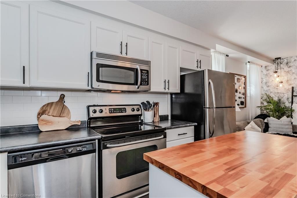 Beautiful 1-bedroom, 1-bath stacked townhouse in the popular Beechwood Forest. Features a modern, spacious open-concept layout, a good-sized in-suite laundry room, ample storage, and a private fenced patio. Convenient access to Hwy 8 and just minutes from shopping and amenities at 'The Boardwalk.' Move-in ready with low condo feesperfect for first-time buyers or investors.