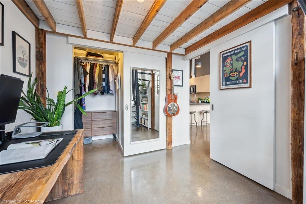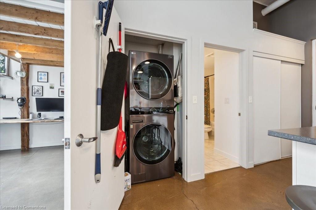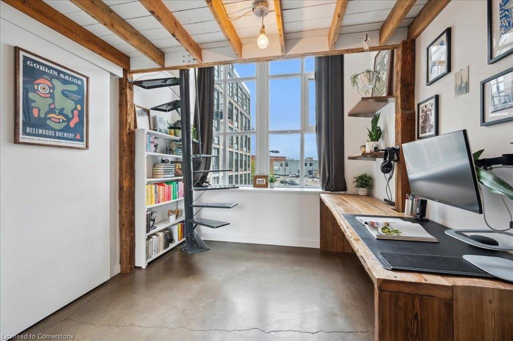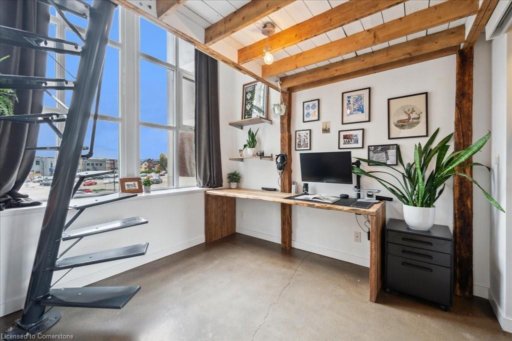 Experience modern urban living at its finest in the iconic Kaufman Lofts. This 1-bedroom, 1-bathroom unit features a one-of-a-kind elevated loft space, exclusive to this unit and unlike anything else in the Kaufman buildings. Whether used as a cozy reading nook, extra sleeping area, or additional storage, this unique feature adds versatility and character to the home. Residents can also enjoy a stunning rooftop patio, perfect for relaxing, entertaining, and taking in views of the city. Located in the heart of the vibrant Innovation District, this character-filled home blends historic charm with modern comfort with soaring ceilings, polished concrete floors, and oversized warehouse-style windows that flood the space with natural light. The thoughtfully designed layout makes the most of every square foot, perfect for first-time buyers, young professionals, or investors. Enjoy a peaceful view over the quiet parking lot, offering added privacy and daylight without the noise of street traffic. The kitchen is equipped with stainless steel appliances, and the unit includes in-suite laundry for everyday convenience. All just steps from Google, the LRT, and downtown’s best restaurants and cafes. This is the loft lifestyle you’ve been waiting for.