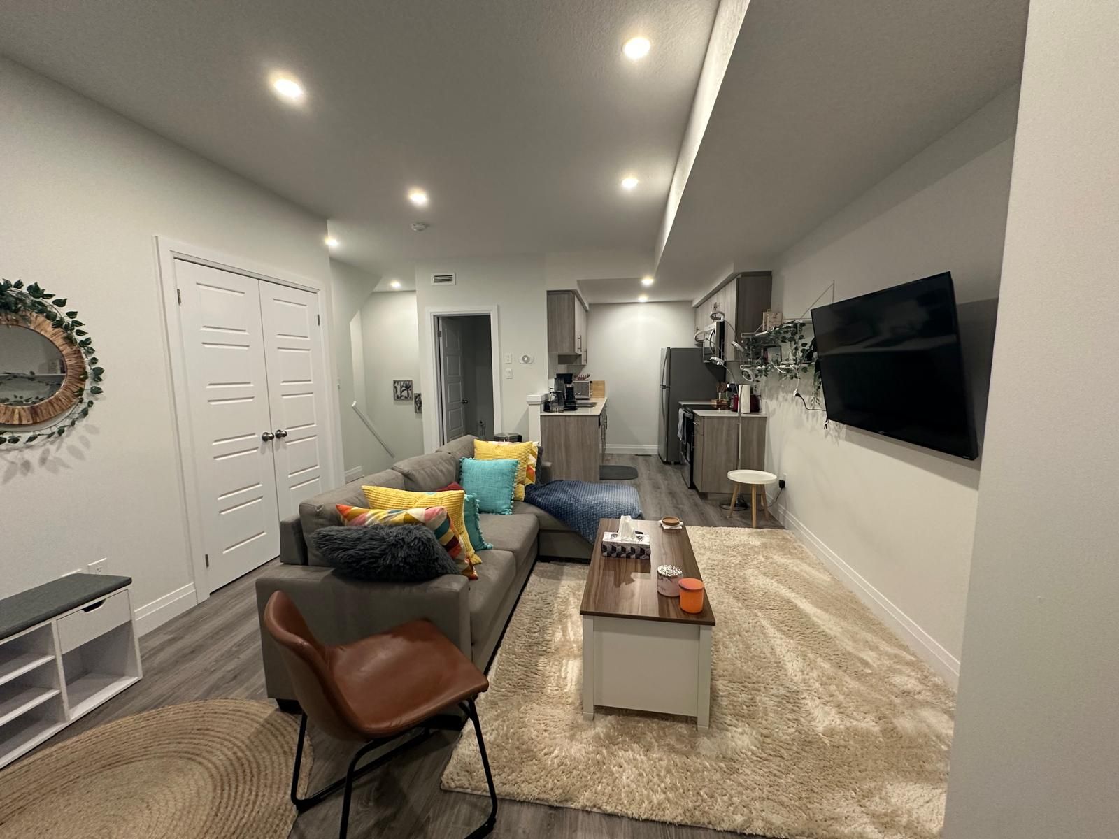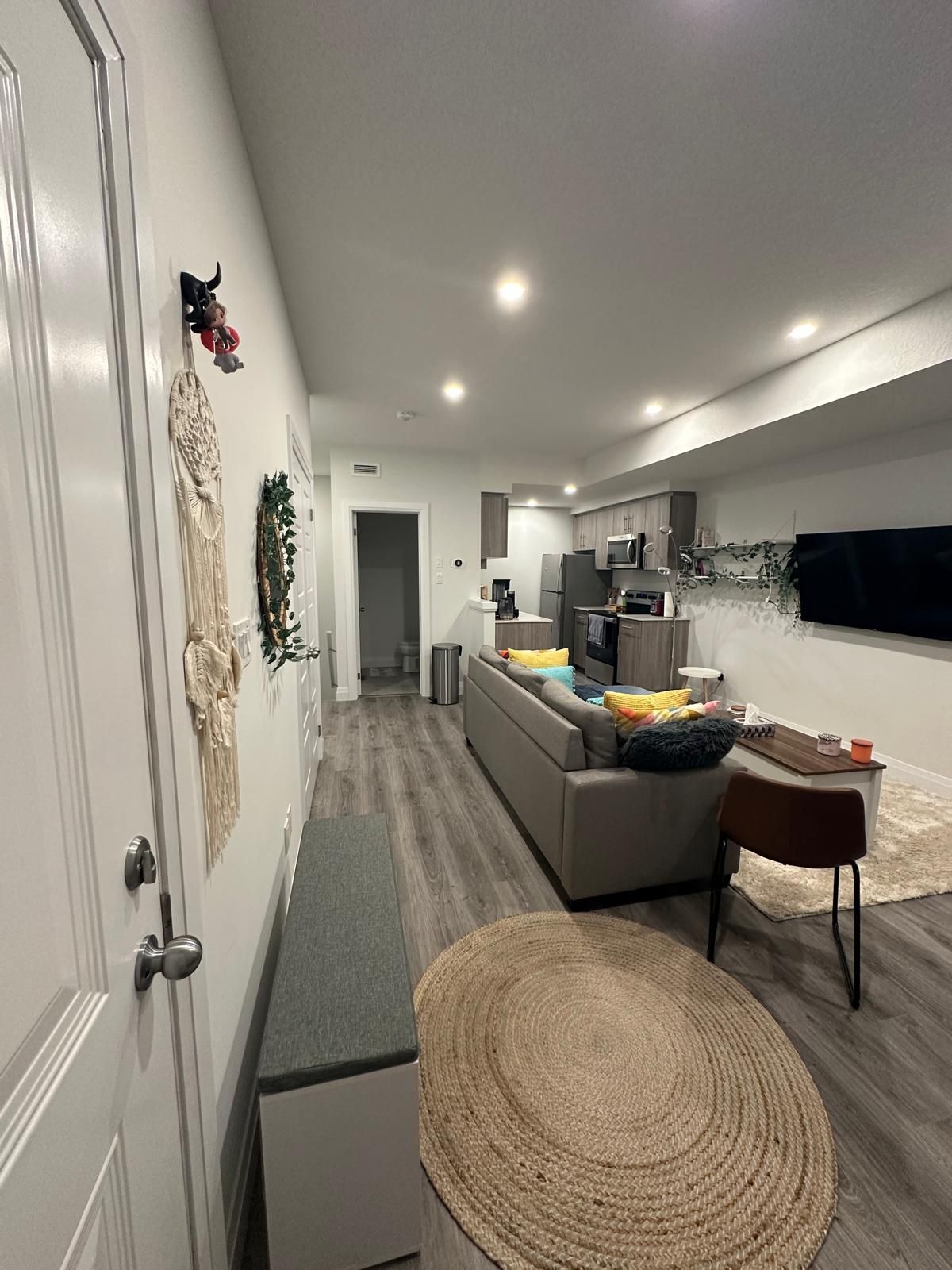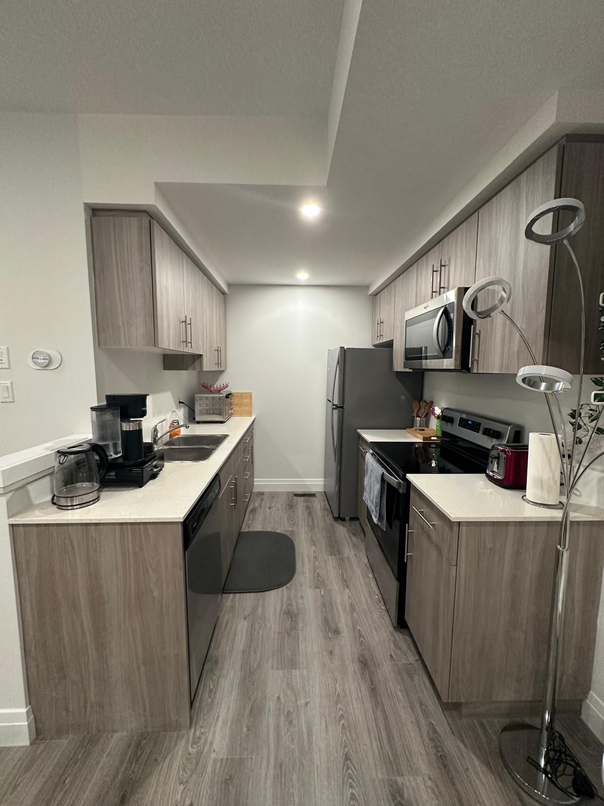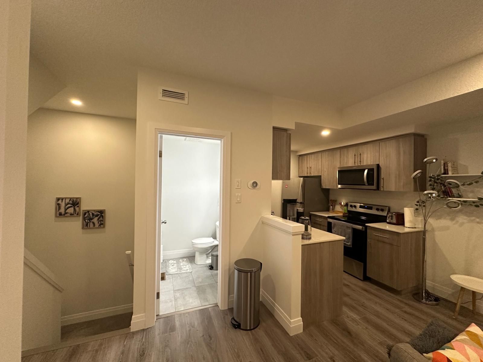 Fully furnished stacked townhome with over 1,000 sq. ft. of living space. This newly built home features an open-concept design, 2 bedrooms, a 4-piece bath, a walk-in closet, in-suite laundry, parking, and bike storage. Furnishings include a couch, TV, dining set, kitchen appliances, cookware, beds, a work table, bean bags, and dining chairs. Conveniently located in a prime Kitchener neighborhood near schools, shopping, transit, and amenities. Move-in ready!