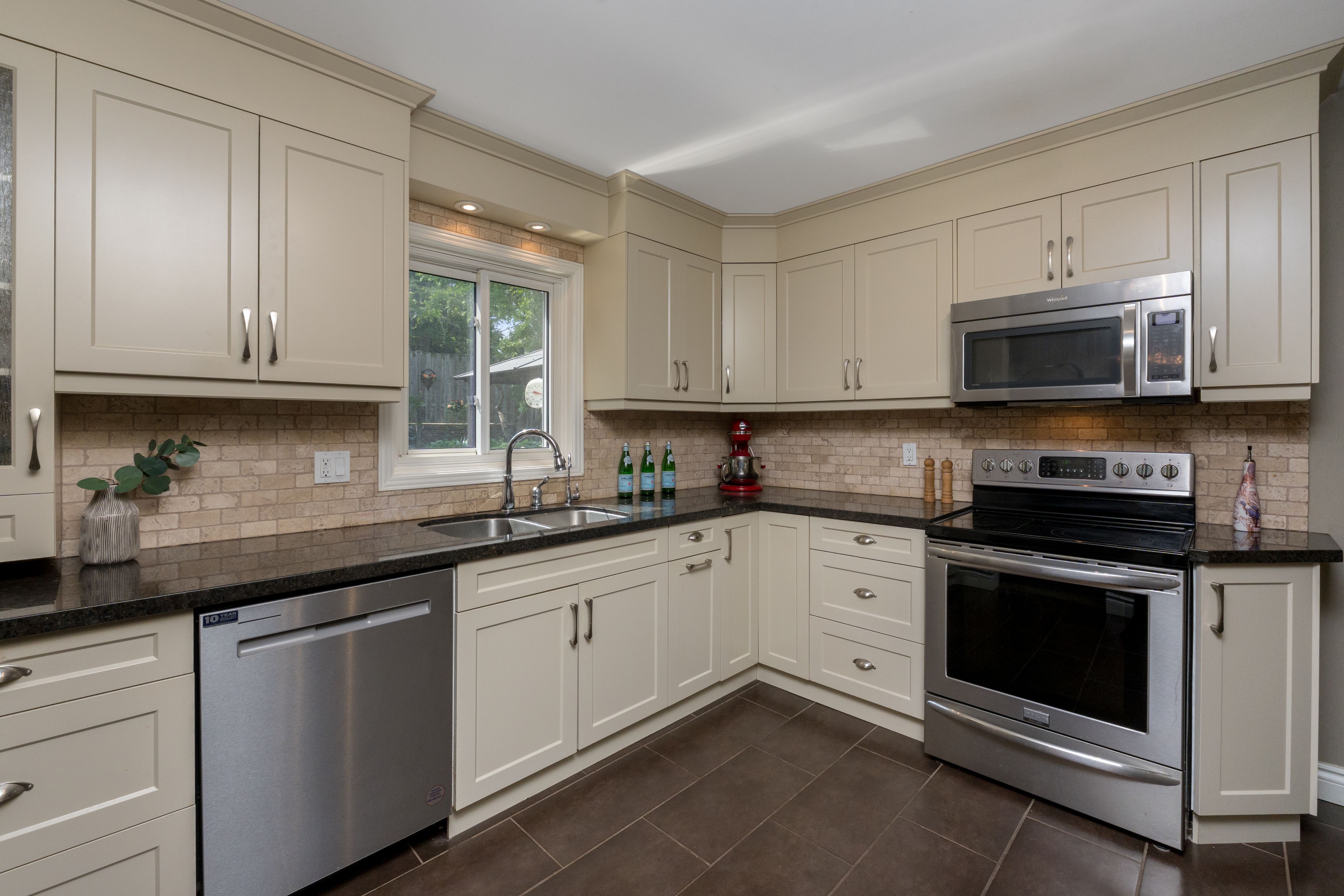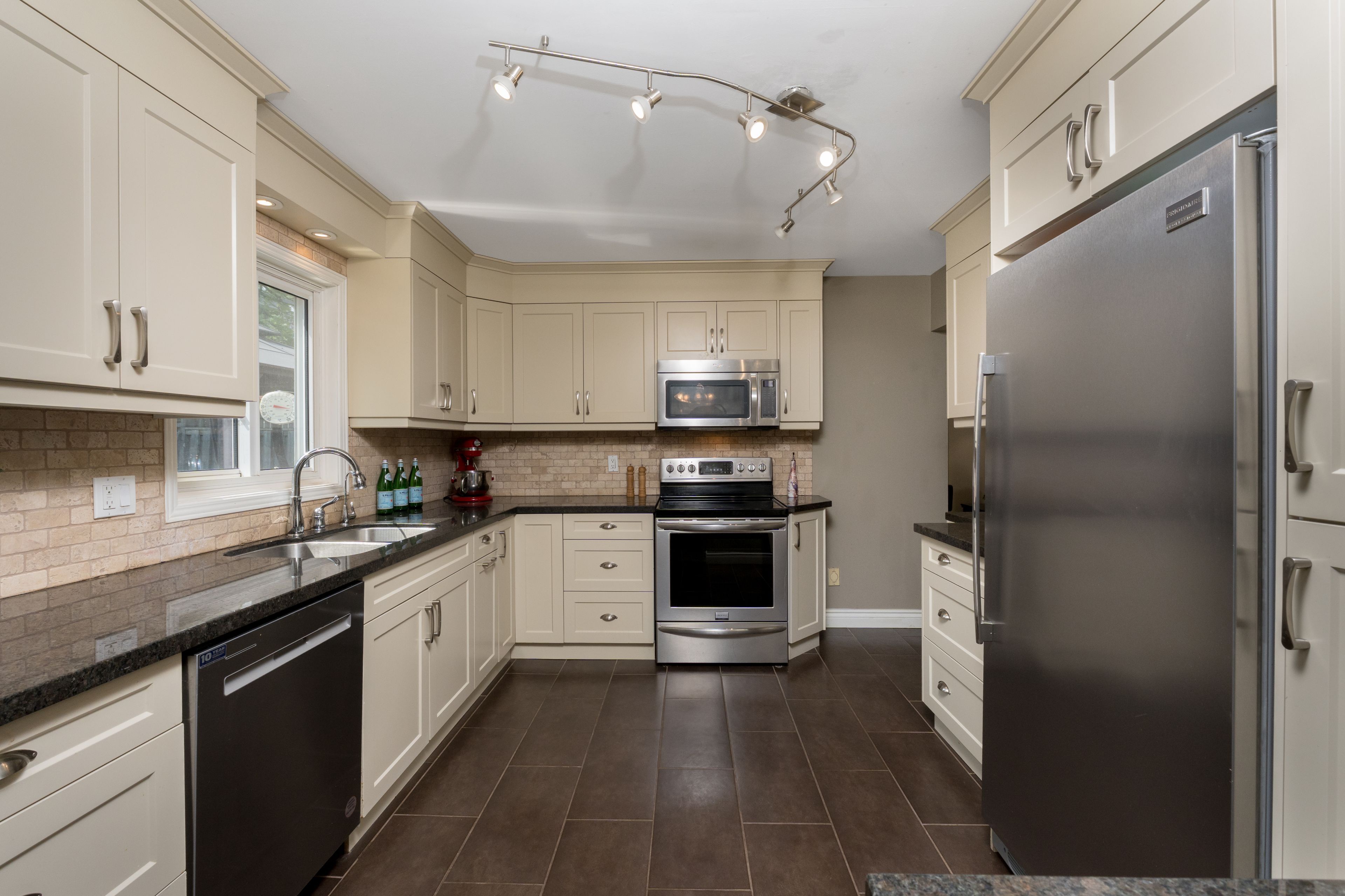 现代化厨房兼具时尚与实用,配备花岗岩台面及充裕的储物柜,与舒适的家庭活动室无缝衔接——此处可尽览大露台与宁静后花园,是休闲聚会与日常生活的理想空间。主层便利的洗衣房更添实用性。