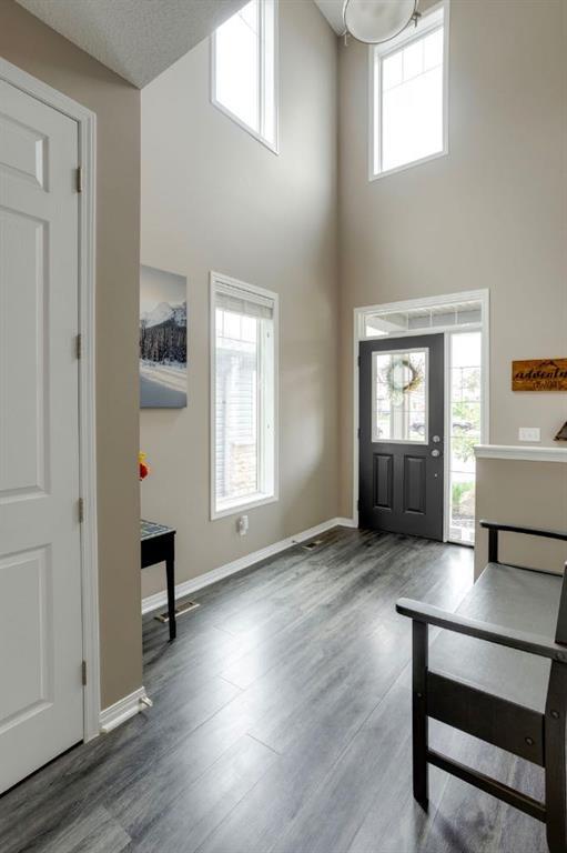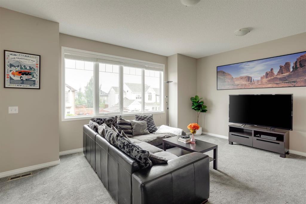 This well appointed home comes perfectly placed in the heart of Windsong with a south backing yard, 3 large bedrooms with walk-in closets, an upper bonus room and triple car tandem garage. You will instantly appreciate the open concept plan with a large mud room - perfect for families of all sizes! A cozy gas fireplace provides a warm and inviting ambiance and the kitchen is idyllic with plenty of counter space, S/S appliances and a sun soaked dining spot to enjoy with the family. 9 ft ceilings grace the main floor, with a peek hight of 12 feet in the mud room. The upper floor boasts 3 bedrooms with a fully upgraded primary ensuite including a soaker tub, dual sinks and tiled shower. The bonus room is substantial with plenty of windows that flood the space with natural light. Two secondary bedrooms, an oversized linen closet and a 4-piece bathroom complete the upper floor making it a perfect space for guests or growing families. The basement offers an additional 640 sq ft including ample space for storage and seasonal wares. You can develop it how you want and make it your own! Additional upgrades worth noting are: 60 amp garage service with multiple 220 outlets, forced air gas garage heater, and upgraded R50 roof insulation! Windsong is one of Airdrie's most sought after, family-friendly communities that is walkable to schools, parks, and the serenity of Chinook Winds pathway system. Established for over a decade, this ever-loving location is coveted in the heart of southwest Airdrie, allowing for easy access to all amenities and quick access to the highway when you feel like escaping to the mountains. This is a home you don't want to miss! (id:22211)