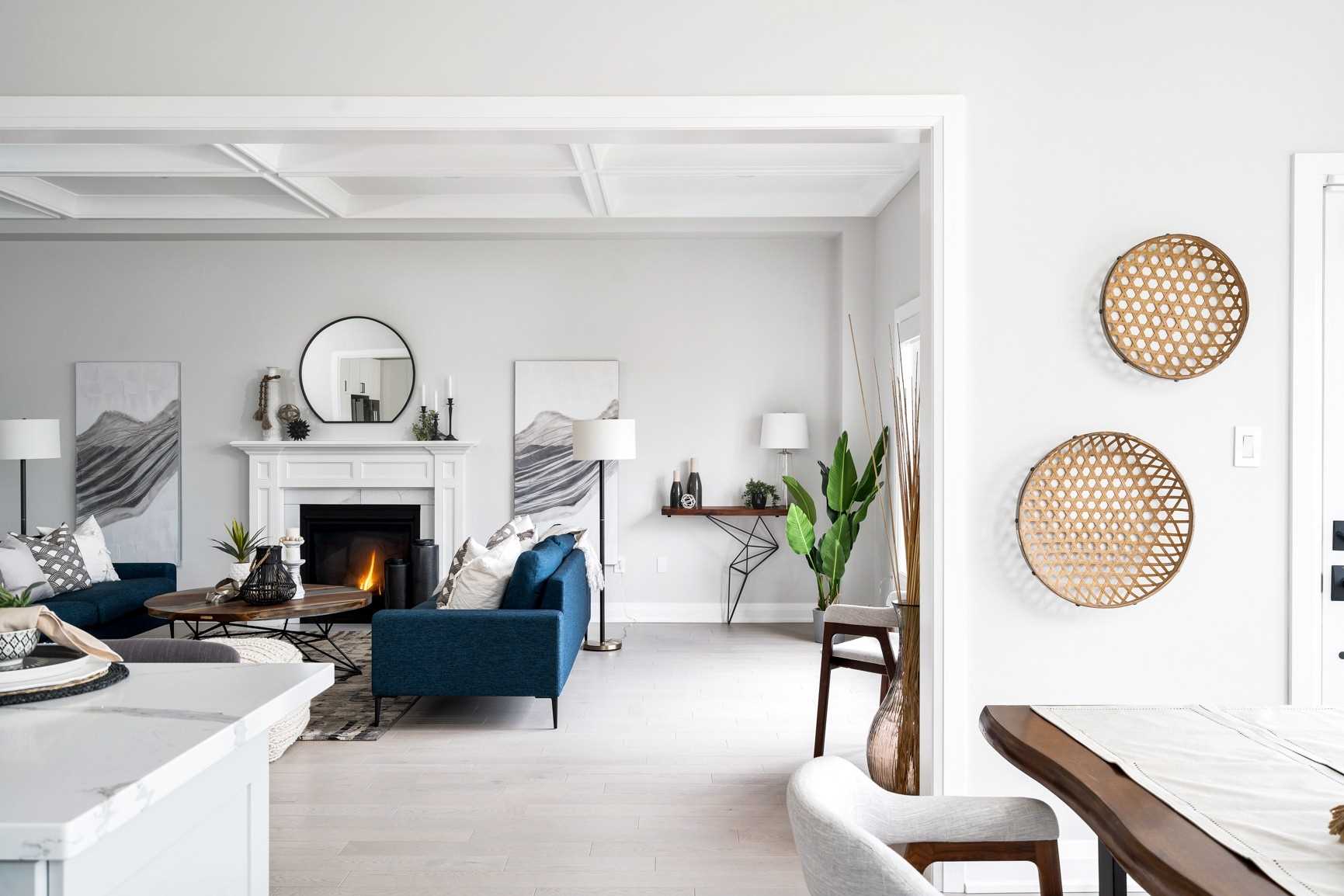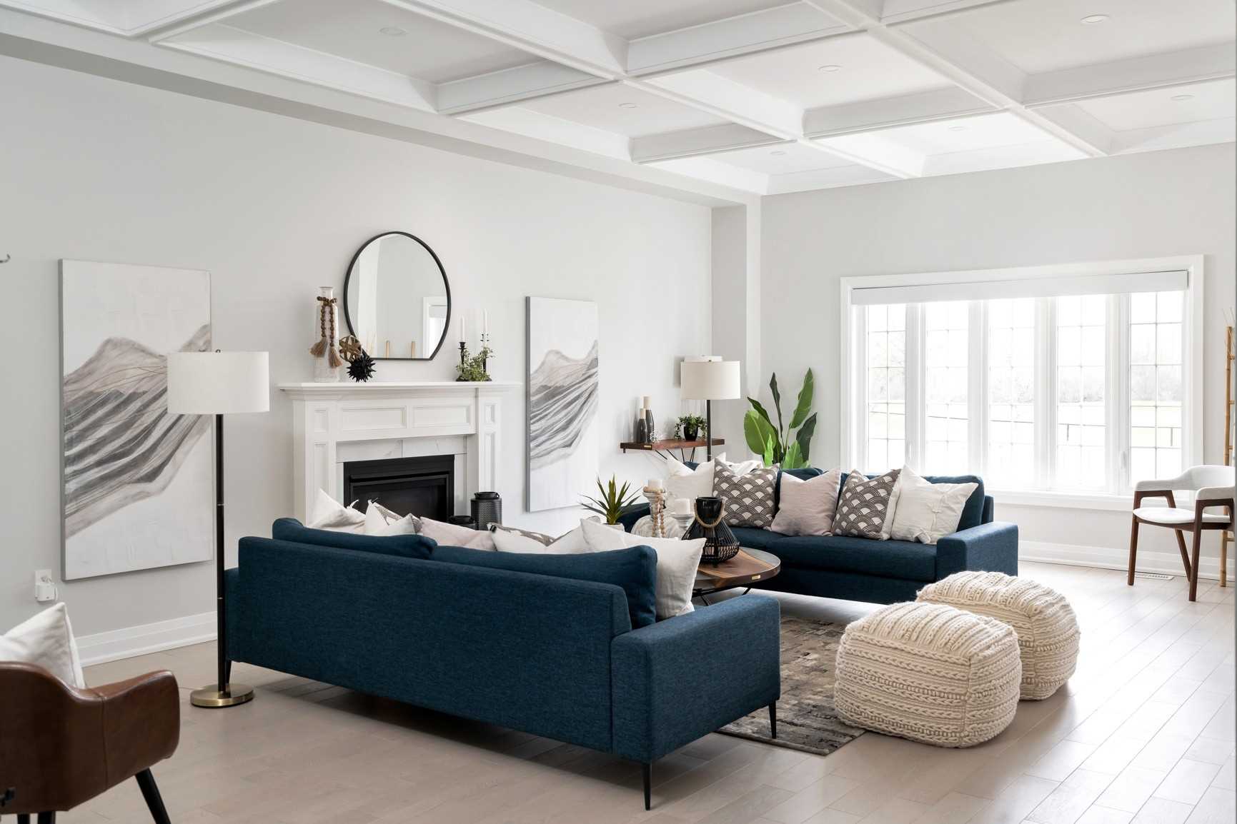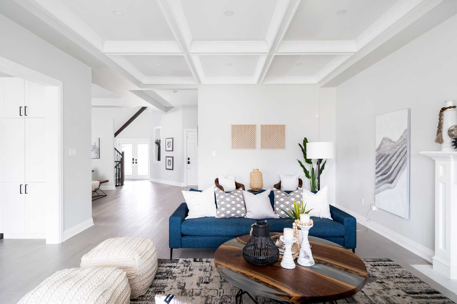 Hardwood Floor Gas Fireplace Coffered Ceiling