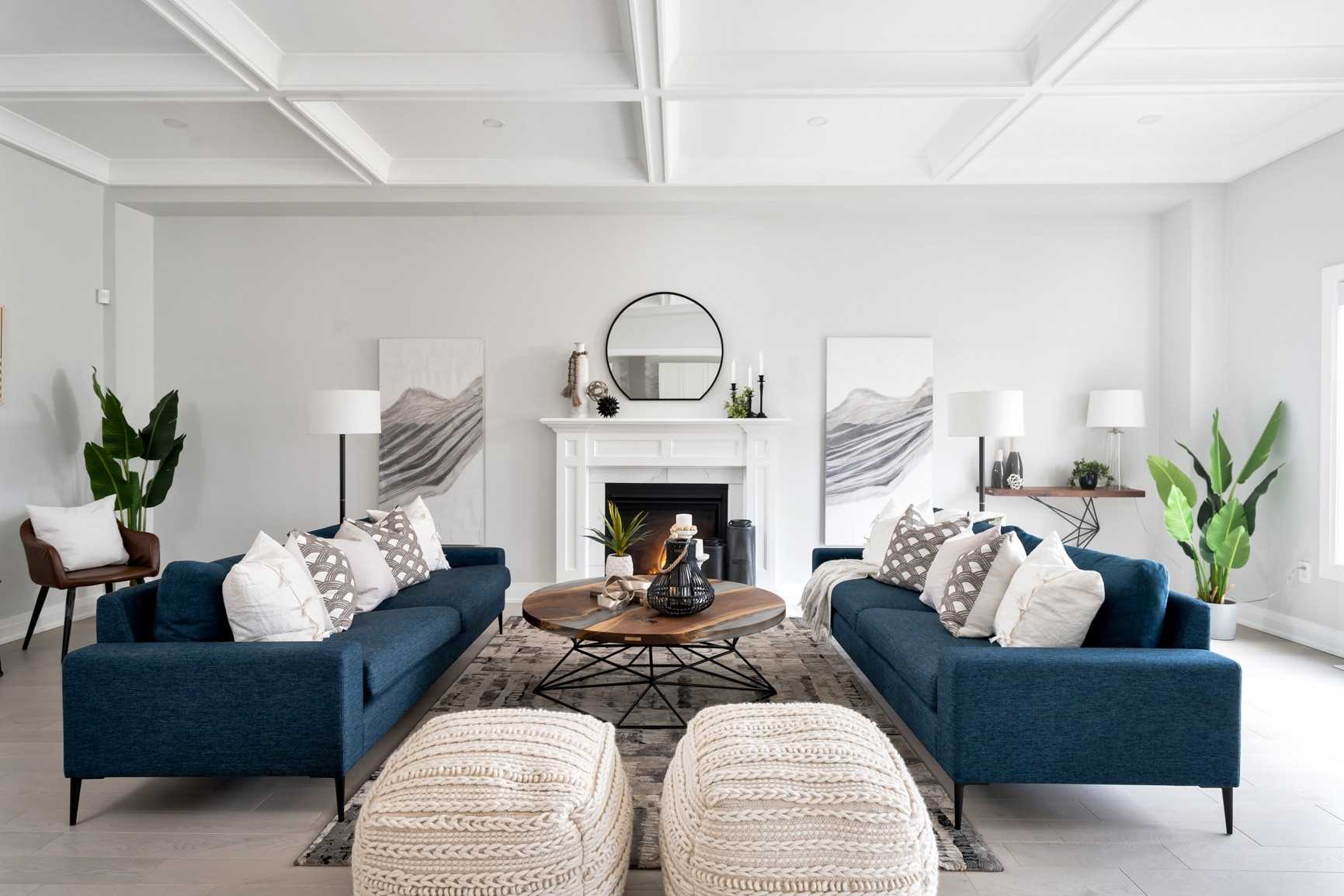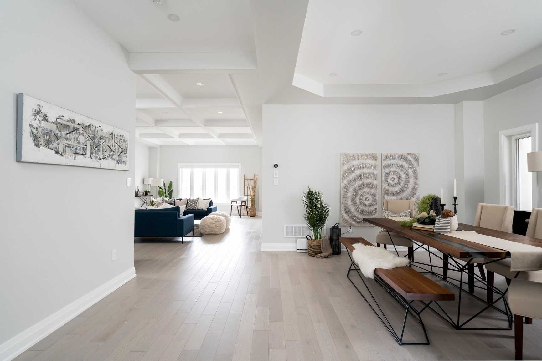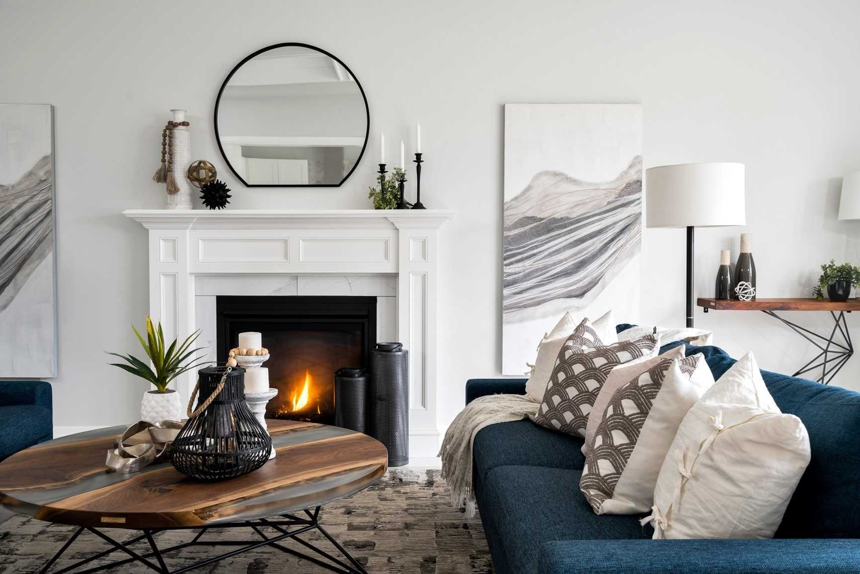 Hardwood Floor Gas Fireplace Coffered Ceiling