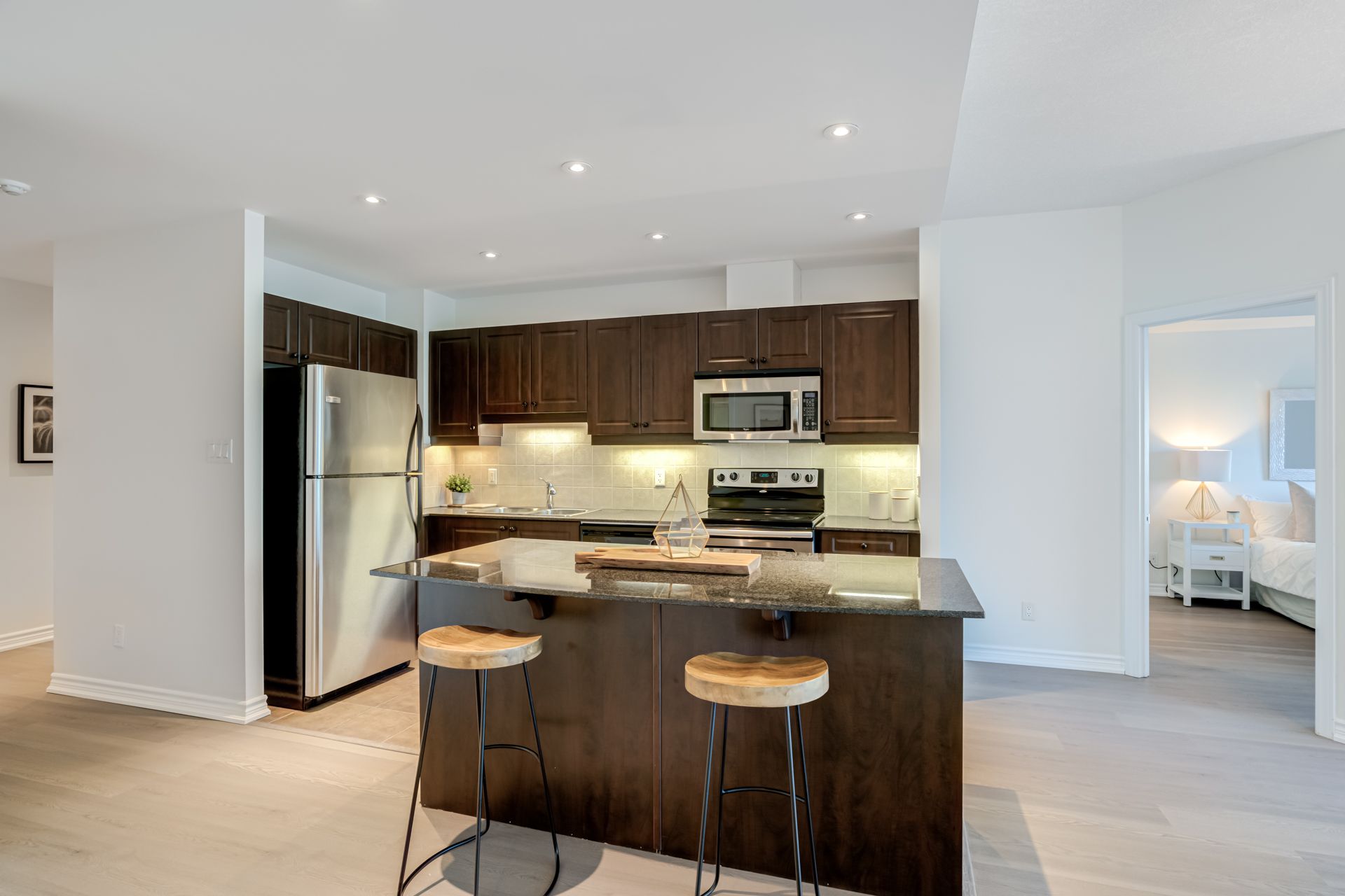 Beautiful Two Bedroom, Two Bathroom Suite in Nautica with Stunning Views of the Marina and Barrie's Kempenfelt Bay. Spacious Suite approximately 1225 sf of Luxury Living with Open Concept Layout and Recently Updated Laminate Floors! Features Include Granite Countertops with Kitchen Island, Pot Lights, Under Cabinet Lighting, Stainless Steel Appliances, Primary Ensuite Washroom with Jacuzzi Tub, His and Her Closets, Large Walk-In Closet in the 2nd Bedroom, Floor to Ceiling Windows, Large Outdoor Terrace, with One Parking and One Locker Included! Enjoy Nautica's Superior Amenities Including Pool, Hot Tub, Gym, Party Room, Sauna, Games Room, Guest Suite and Visitors Parking.Take Advantage of the Barrie Waterfront Walking/Biking Trail, Marina, Beaches, Barrie's Downtown, Restaurants, Entertainment, and a Short Walk To The Go Station. You're Going To Love It Here!!