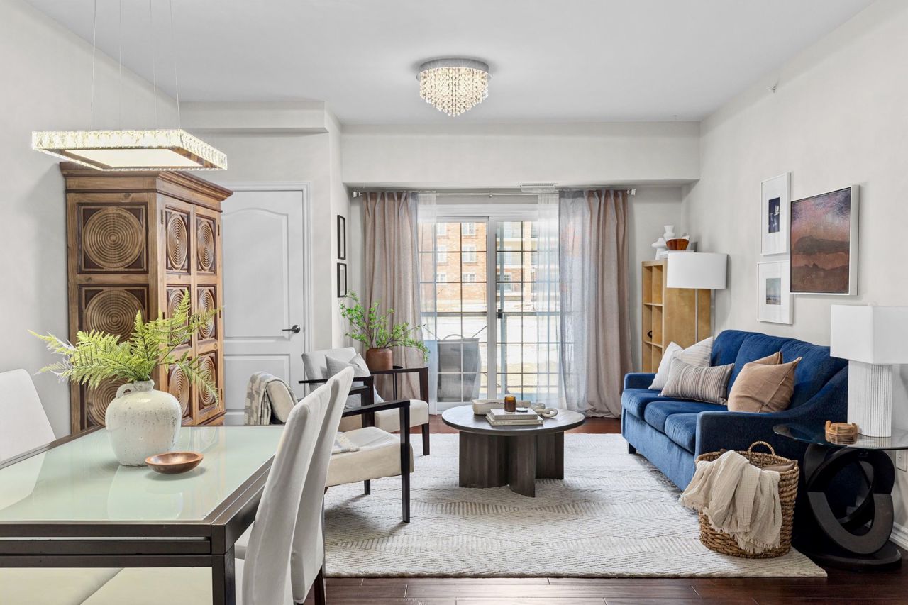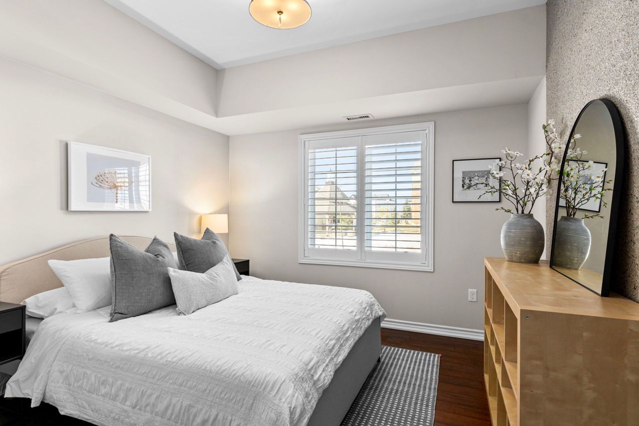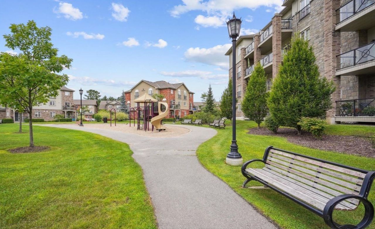 This fantastic and rarely offered 2 bedroom, 2 bathroom, ground floor unit in the beloved Ardagh community is one you won't want to miss! Inside this 1100+ square foot home you will find beautiful engineered hardwood floors, updated white kitchen with quartz counters and a large open concept living / dining room, perfect for entertaining friends / family or simply lounging. Walk out onto your private balcony with your morning coffee to enjoy lush views of the gardens and glimpses of the sunset in the evenings. The spacious primary suite includes its own 3 piece ensuite with walk - in shower and substantial size walk - in closet. No shortage of storage here wiht sizeable closets throughout plus your own locker unit located next to the unit's parking spot in the underground garage. Can't beat the location as you are just minutes from it all - Bear Creek Park, schools, shopping centres, major transportation routes and many more great amenities.**Interboard Listing: The Lakelands Real Estate Association**