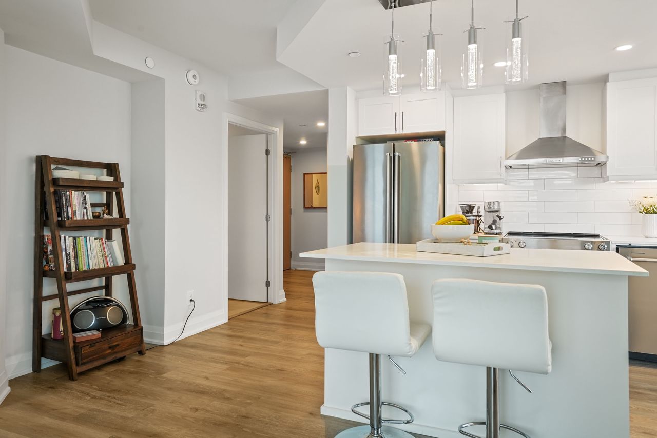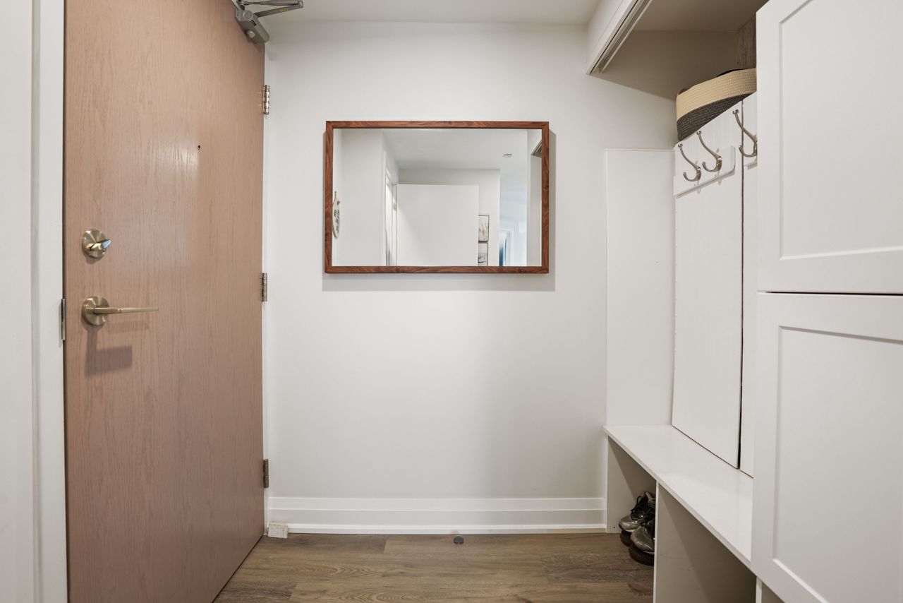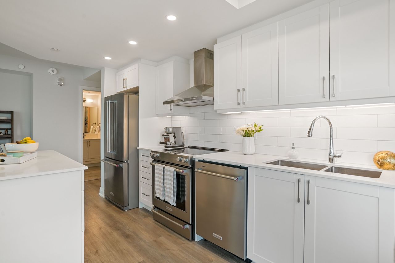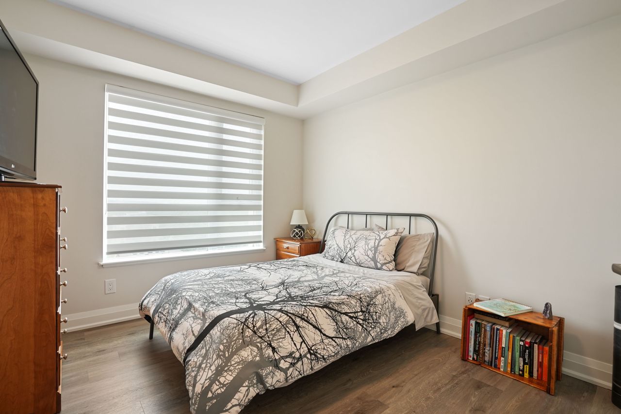 Welcome to this exquisite ninth-floor premium corner "Cranberry" model offering abundant natural light through extra windows and spaciousness throughout. This open-concept condo boasts numerous upgrades including a beautiful kitchen featuring a larger centre island with quartz countertops, soft-close cabinetry, backsplash, top of the line Kitchen Aid stainless steel appliances, and under-mount sink. You'll love the reconfigured primary bedroom completed with a large closet and ceiling fan, complimented nicely by the 3piece ensuite complete with ceramic floors and a lovely ceramic/glass shower. Additional features include a front entrance bench with storage and hooks, upgraded flooring, custom blinds, dimmable lights, pot & pendant lights, and a generous balcony perfect for relaxation. This 2-bedroom, 2-bathroom condo is designed for both entertaining and practical living, making it ideal for in-law or guests. Enjoy the convenience of amenities such as a games room, party room, exercise room, rooftop terrace, guest suite, visitors parking, dog wash, owned underground parking (rare extra wide with EV charging spot!!!), and an owned storage locker. Practicality meets luxury with a full-size washer and dryer included. Located close to Little Lake, Georgian College, Royal Victoria Hospital, shopping centers, parks, schools, and easy highway access, this property offers convenience and comfort within the desirable Little Lake community. Don't miss the opportunity to make this your new home, schedule a showing today!