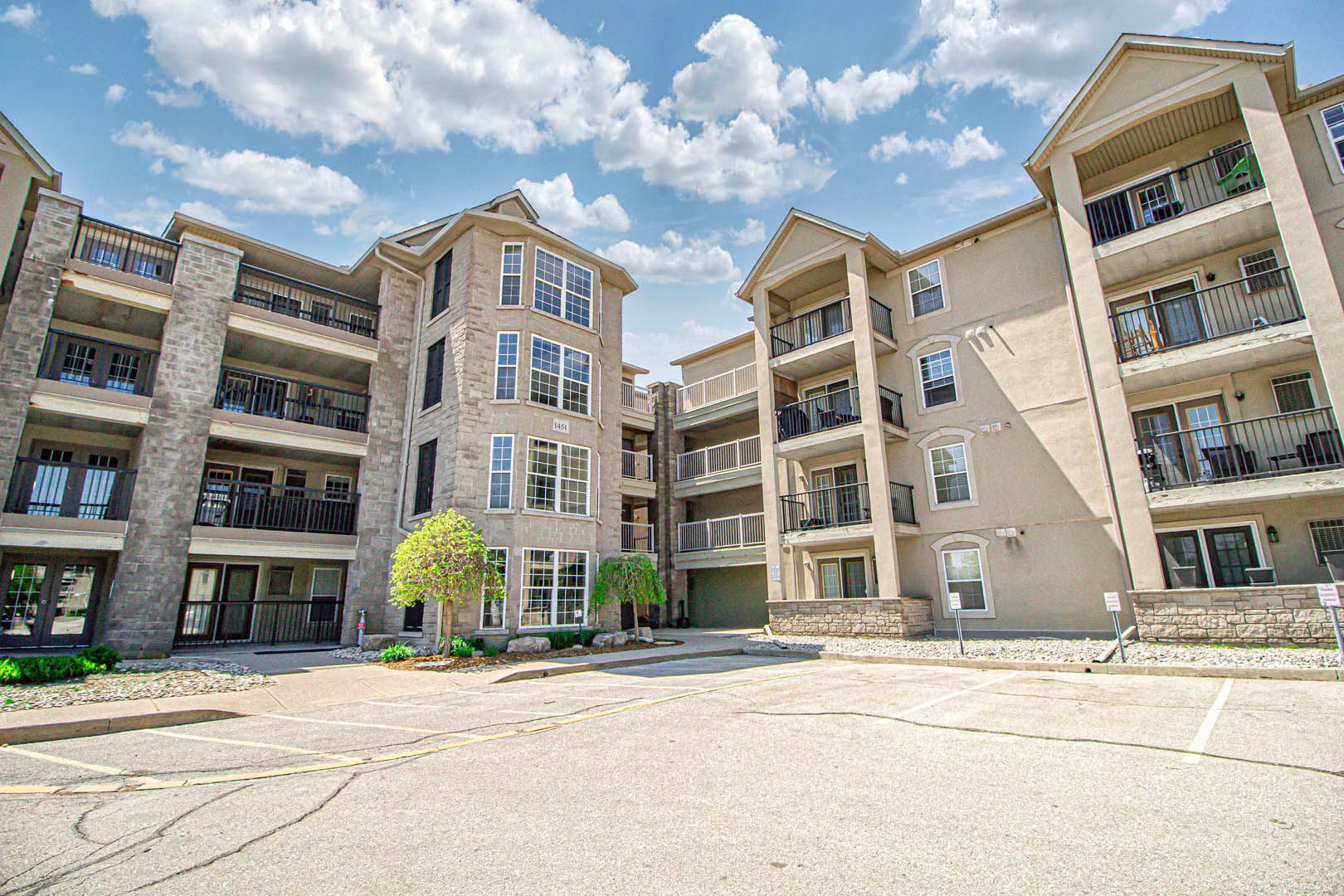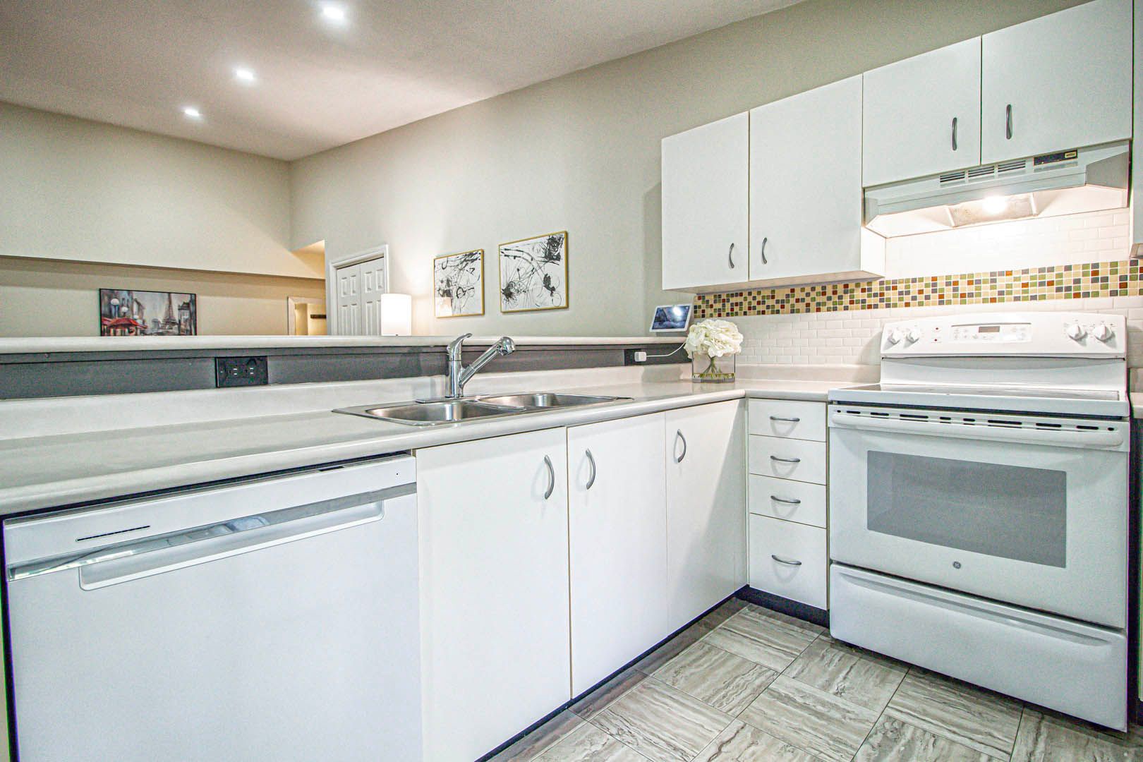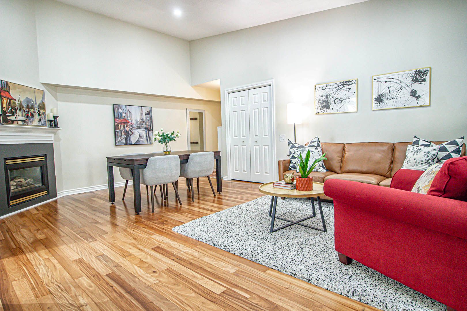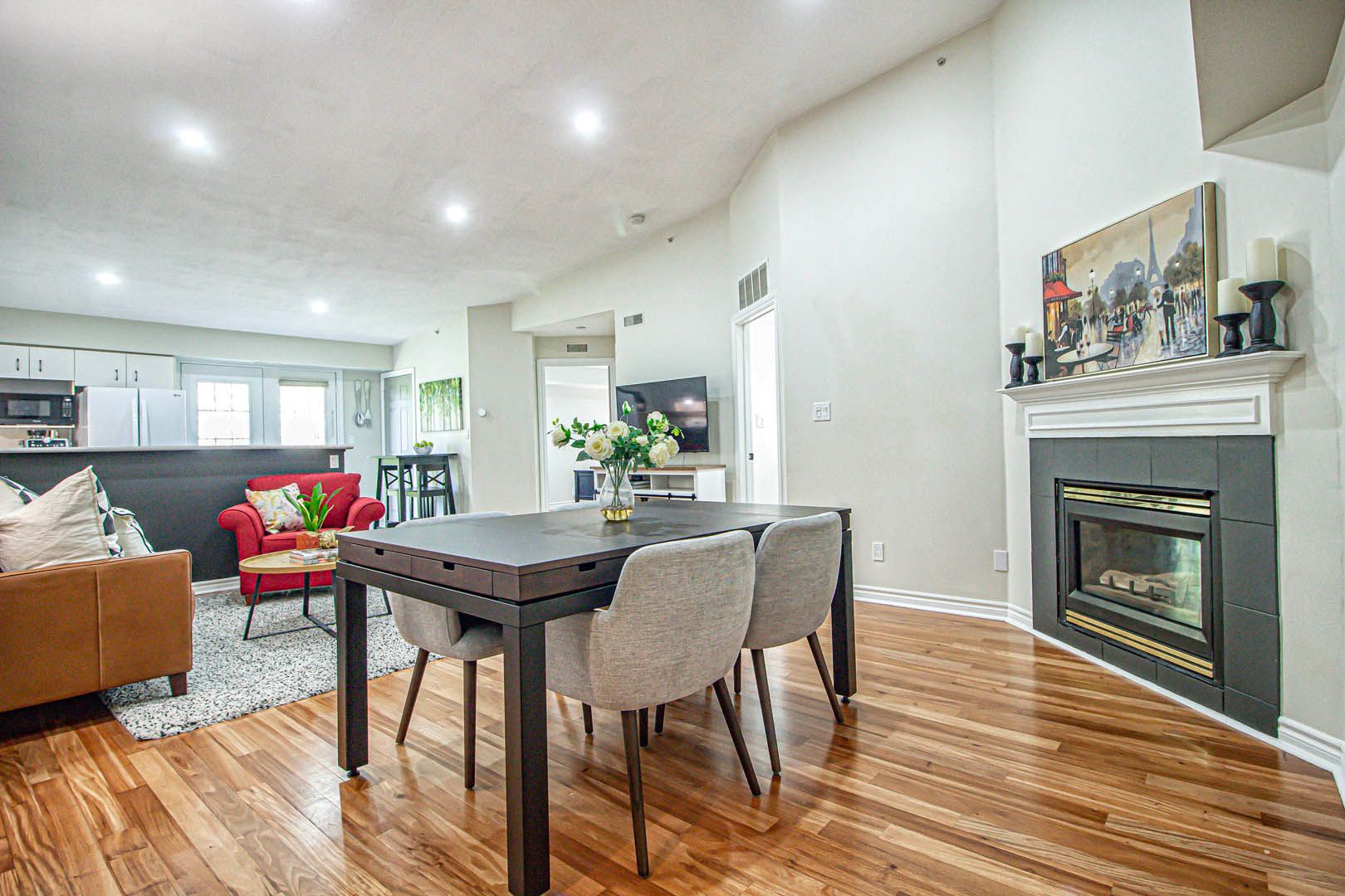 Absolute Gem!! Gorgeous 1,020 Sq.ft. Corner Condo in Burlington's Vibrant Tansley Woods! Bright, open-concept layout with soaring vaulted ceilings, abundant natural light, and a cozy gas fireplace. The kitchen boasts ample counter and cabinet space, a breakfast bar, and an eat-in area. Gleaming floors and pot lights create a luxurious penthouse ambiance. The spacious primary bedroom features a 5-piece ensuite and double closet, complemented by a large second bedroom and a 3-piece bathroom. Savor stunning top-floor views from the open balcony. Ideally located minutes from highways, shopping, restaurants, grocery stores, Tansley Woods Recreation Centre, Parks, and more. Includes ample visitor parking, a gym, and a party room. A must-see treasure!