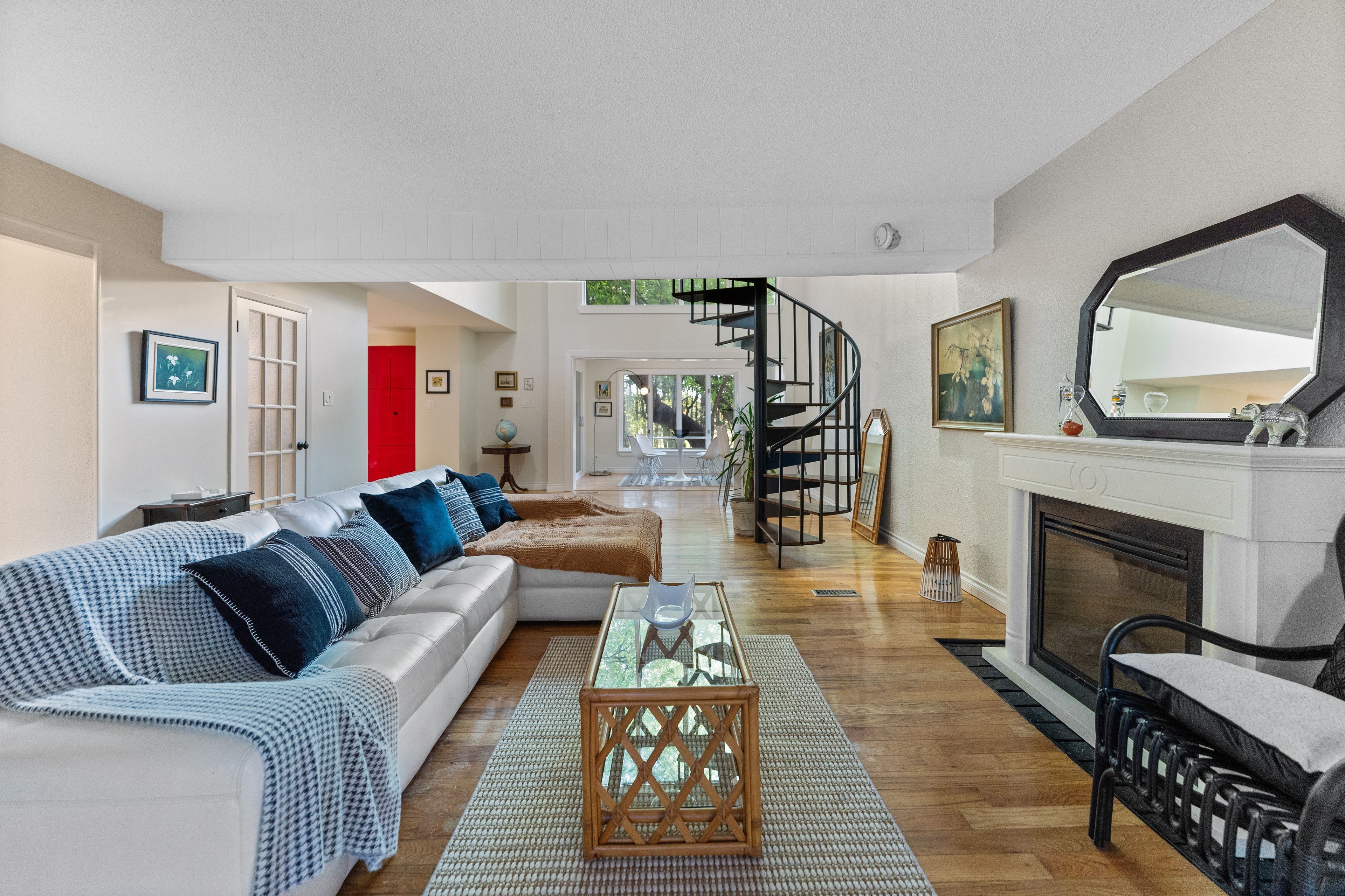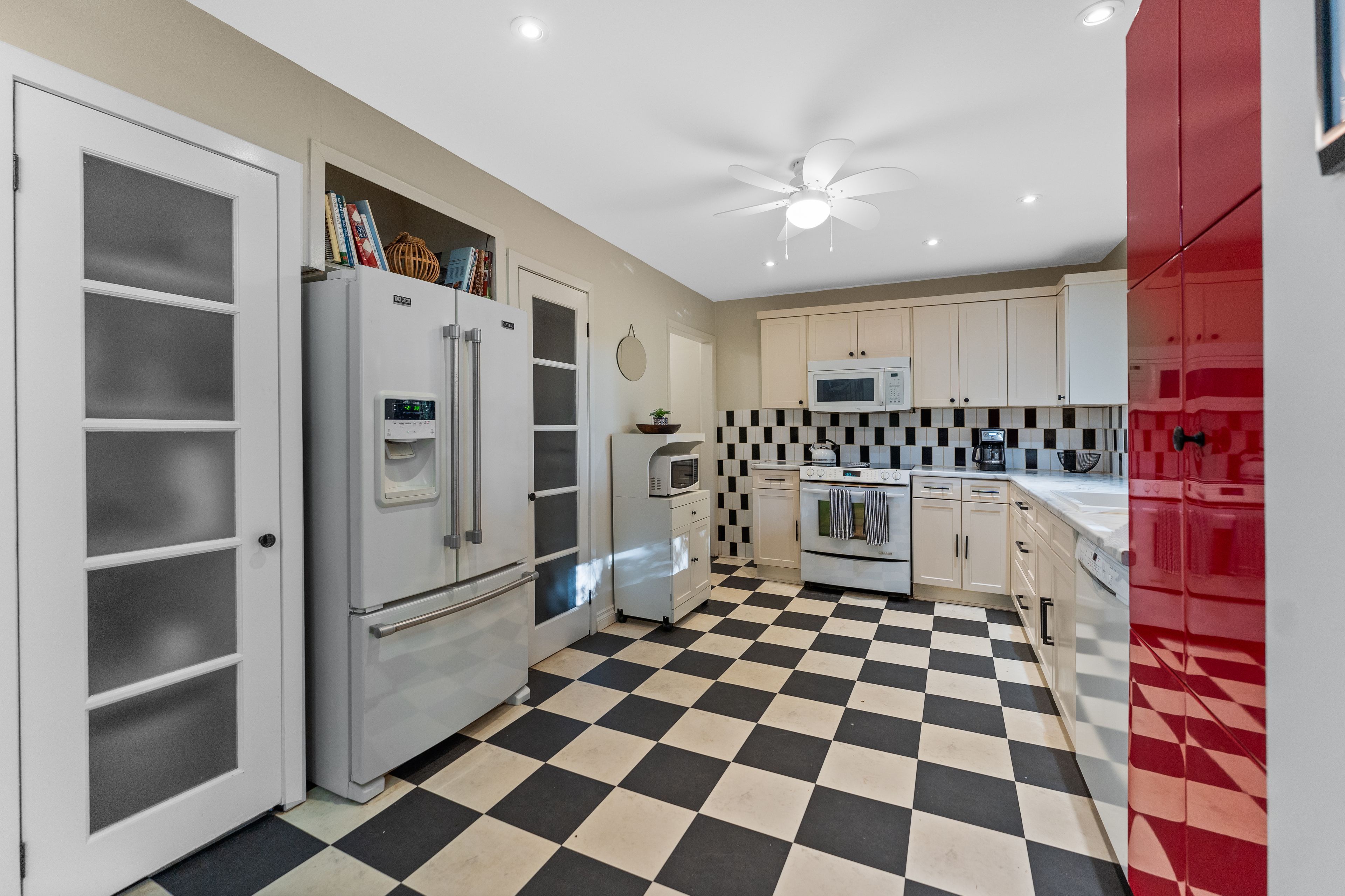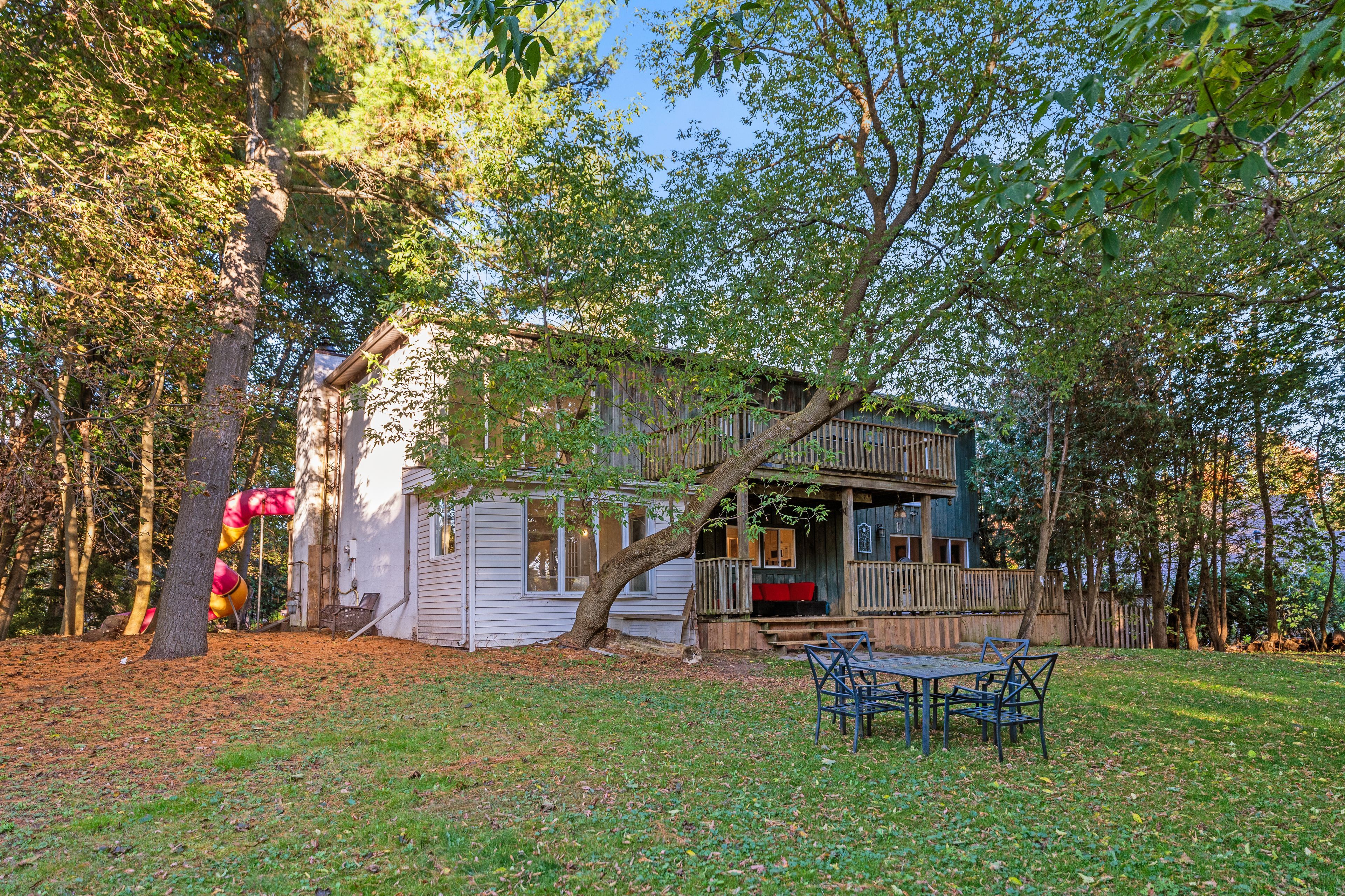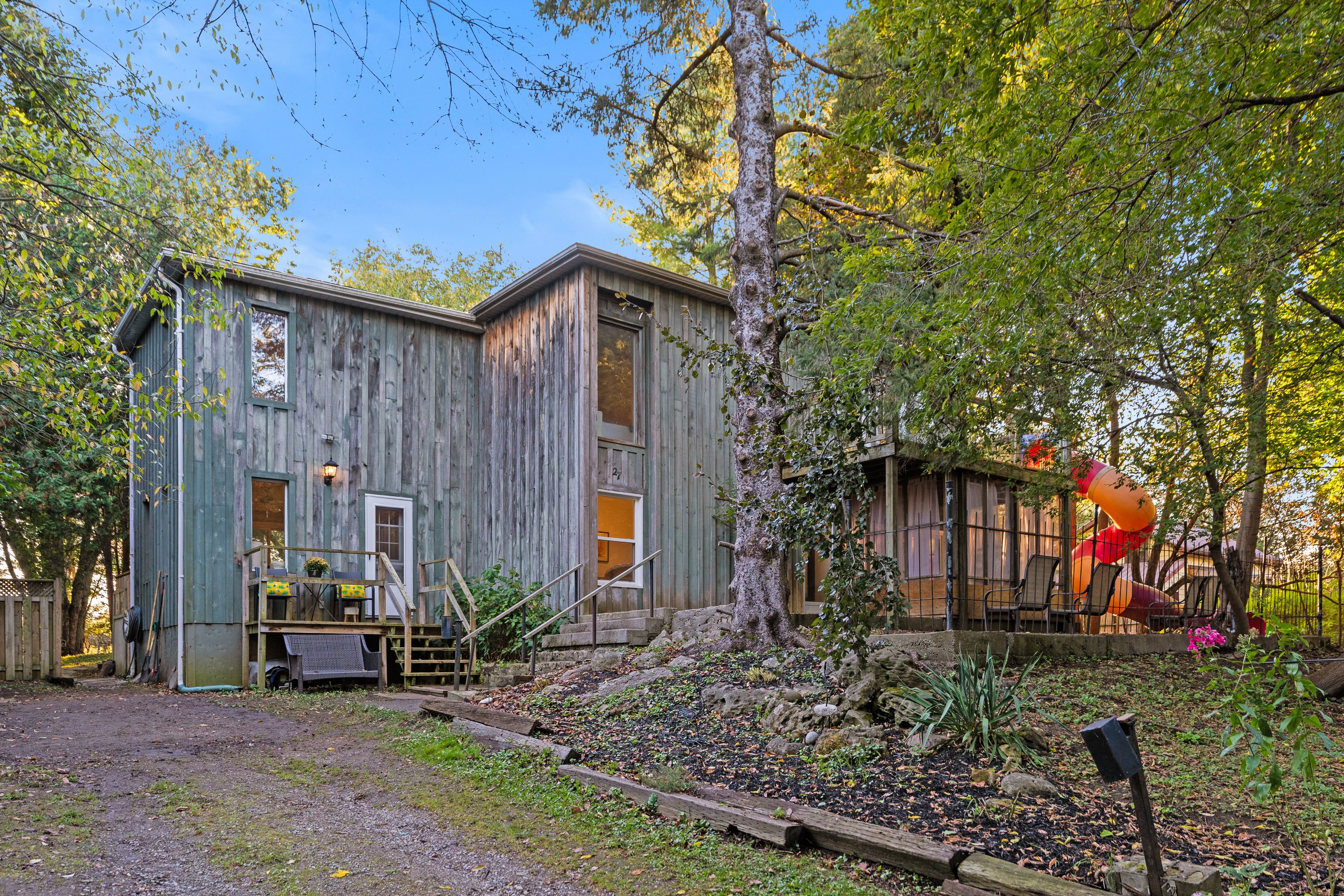 Tucked away in the picturesque village of Alton - just steps from the Millcroft Inn and the renowned Alton Mills Arts Centre - this delightful mid-century gem is a charming nod to retro design, with thoughtful updates that honour its timeless appeal. Showcasing classic architectural lines and a layout well ahead of its time, the home features soaring cathedral ceilings, expansive windows, and multiple walk-outs that bathe the space in natural light. The open-concept main floor seamlessly connects the living room, dining area, and kitchen, creating an inviting space perfect for gatherings and everyday living. The kitchen adds a playful yet functional twist with crisp white cabinetry, marble-look laminate countertops, and eye-catching black-and-white checkered floors that stay true to the home's roots. A generous pantry and ample counter space ensure both style and practicality. Upstairs, you'll find three spacious bedrooms - each offering outdoor access, with one even featuring its very own slide! A second living room on the main level offers a cozy retreat and is paired with a 3-piece bath and an additional upper-level bedroom, creating a flexible separate area perfect for extended family, guests, or a home office setup. Outside, the private backyard is a haven for warm-weather entertaining, gardening, or simply relaxing under the trees. Whether you're drawn to the charm of Alton or dreaming of a home with personality and potential, this one-of-a-kind property is ready to write its next chapter.A rare opportunity to make your mark - this vibrant property is a blank canvas awaiting your entertaining dreams.