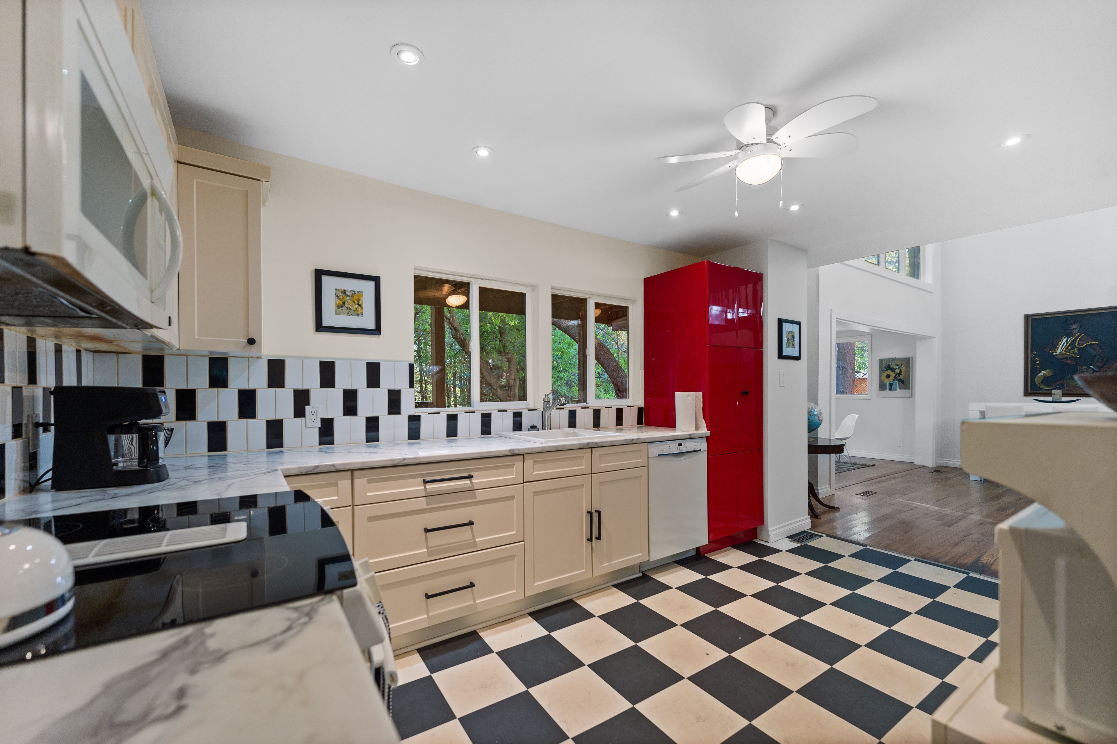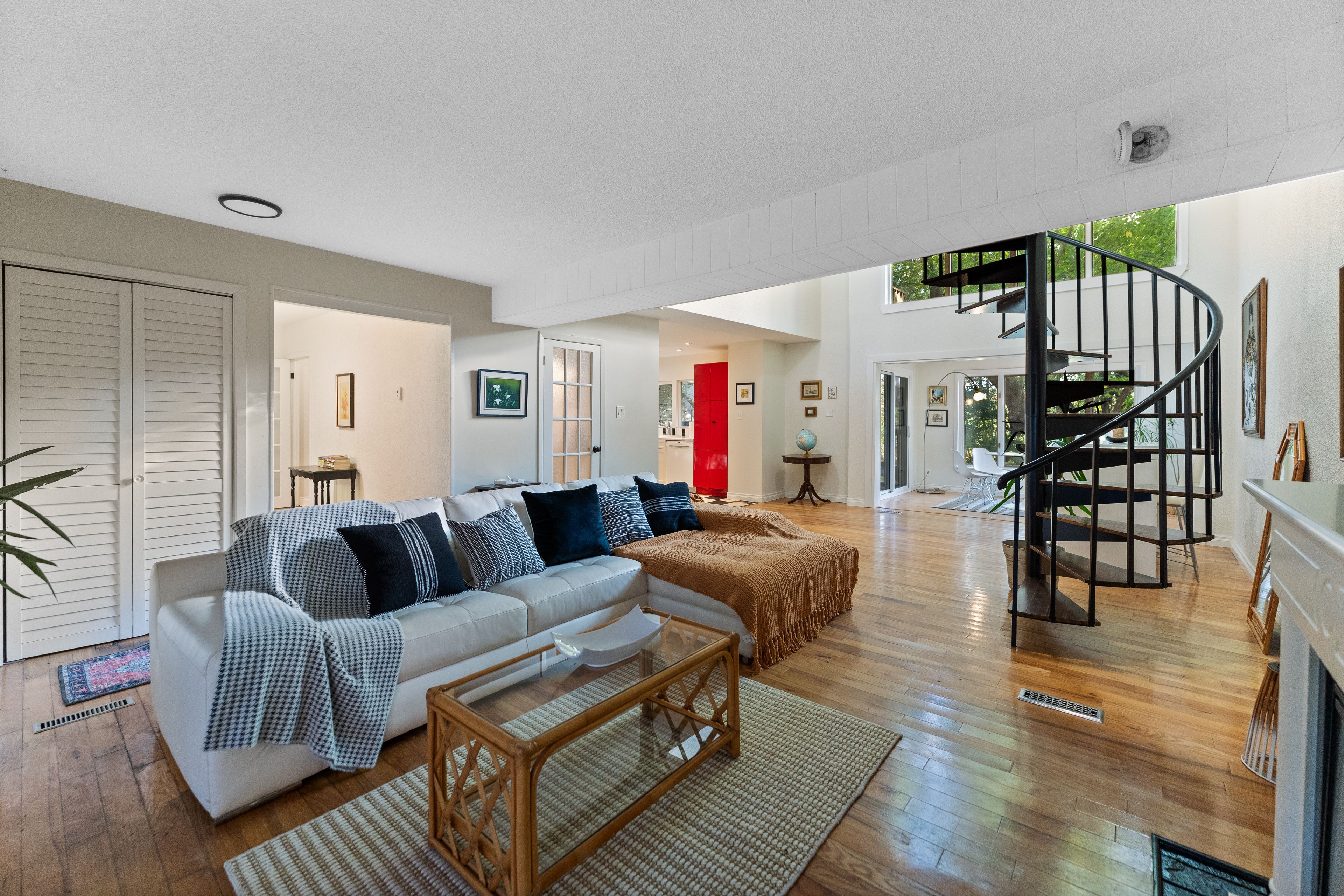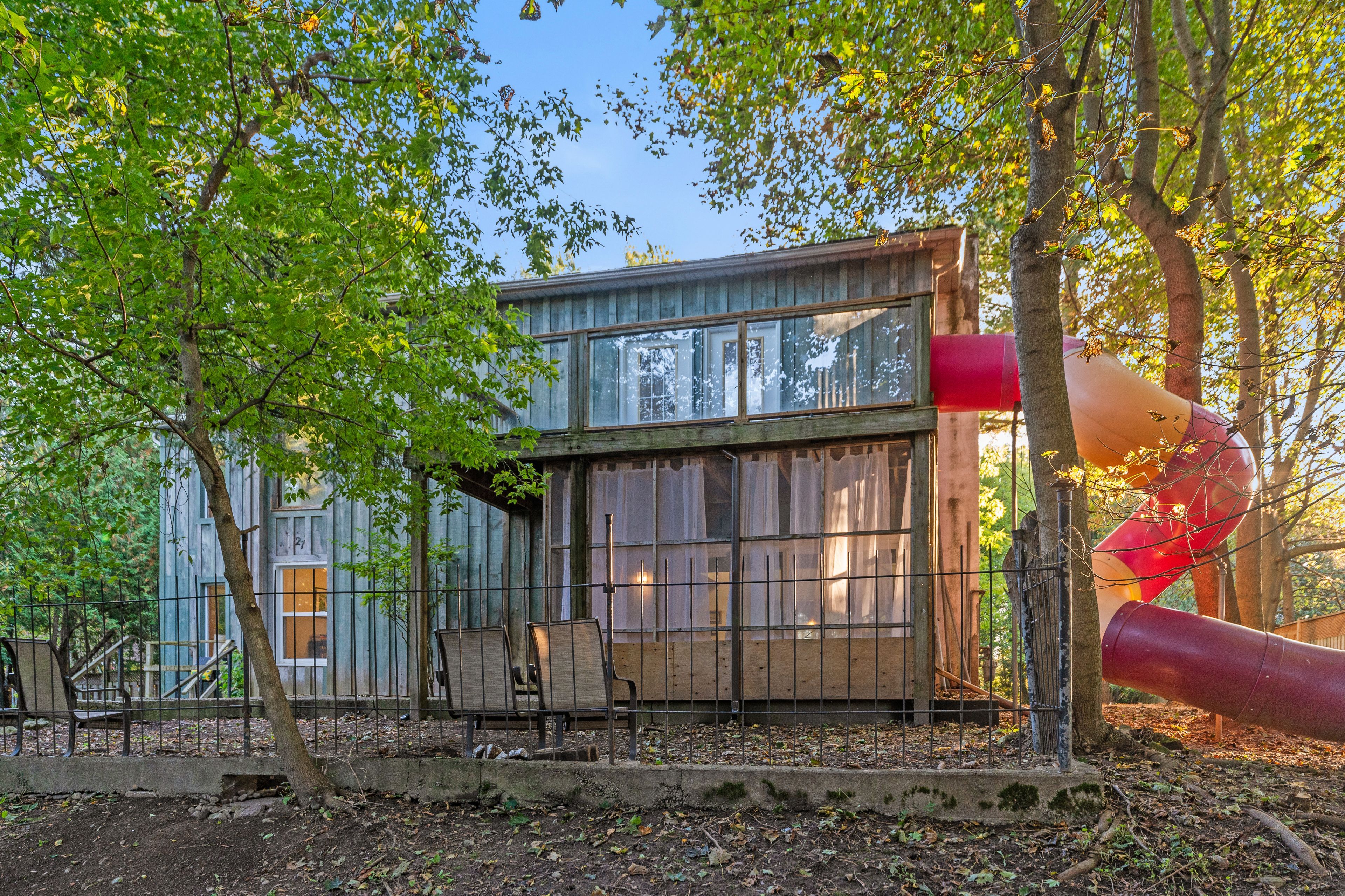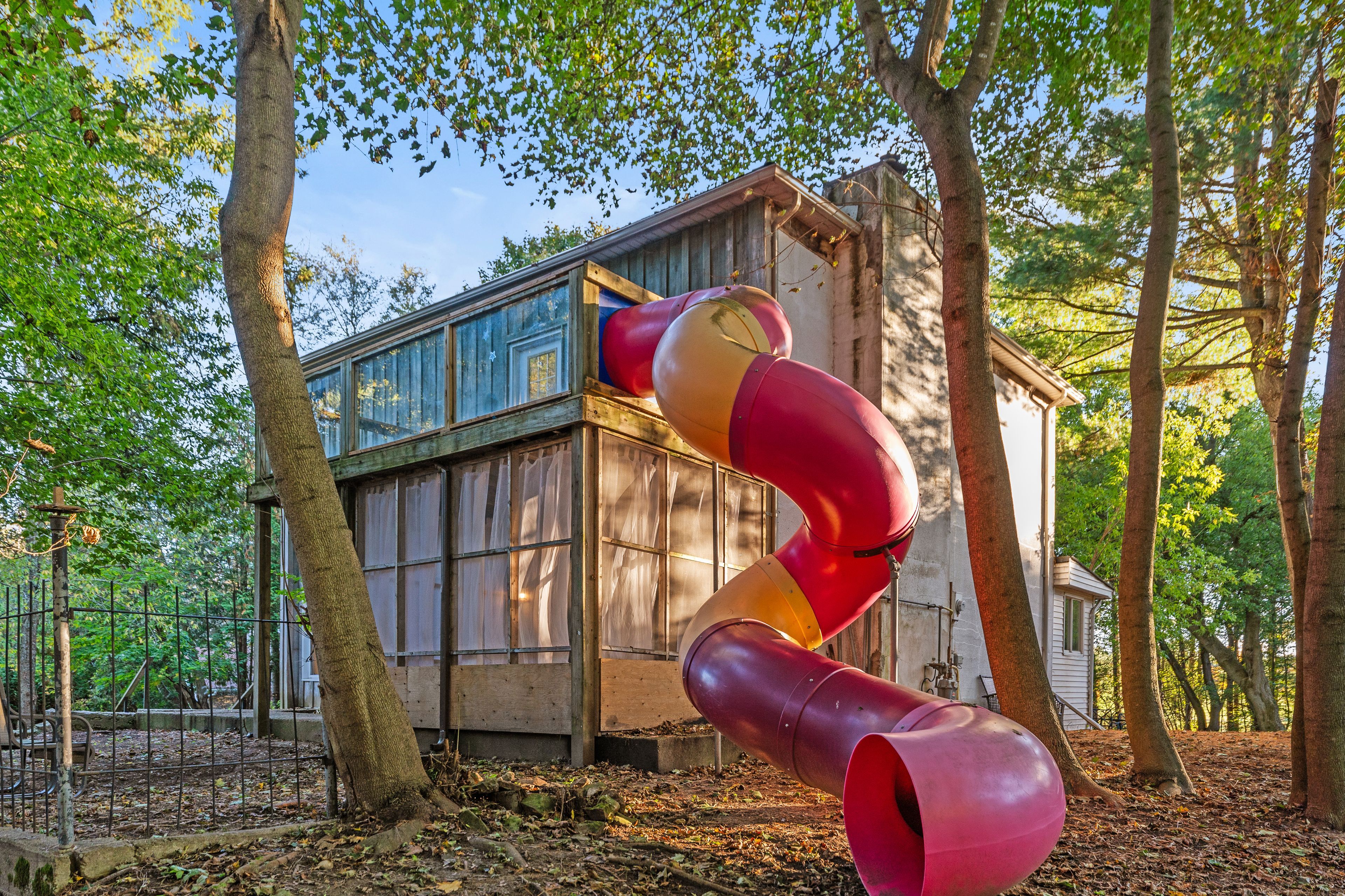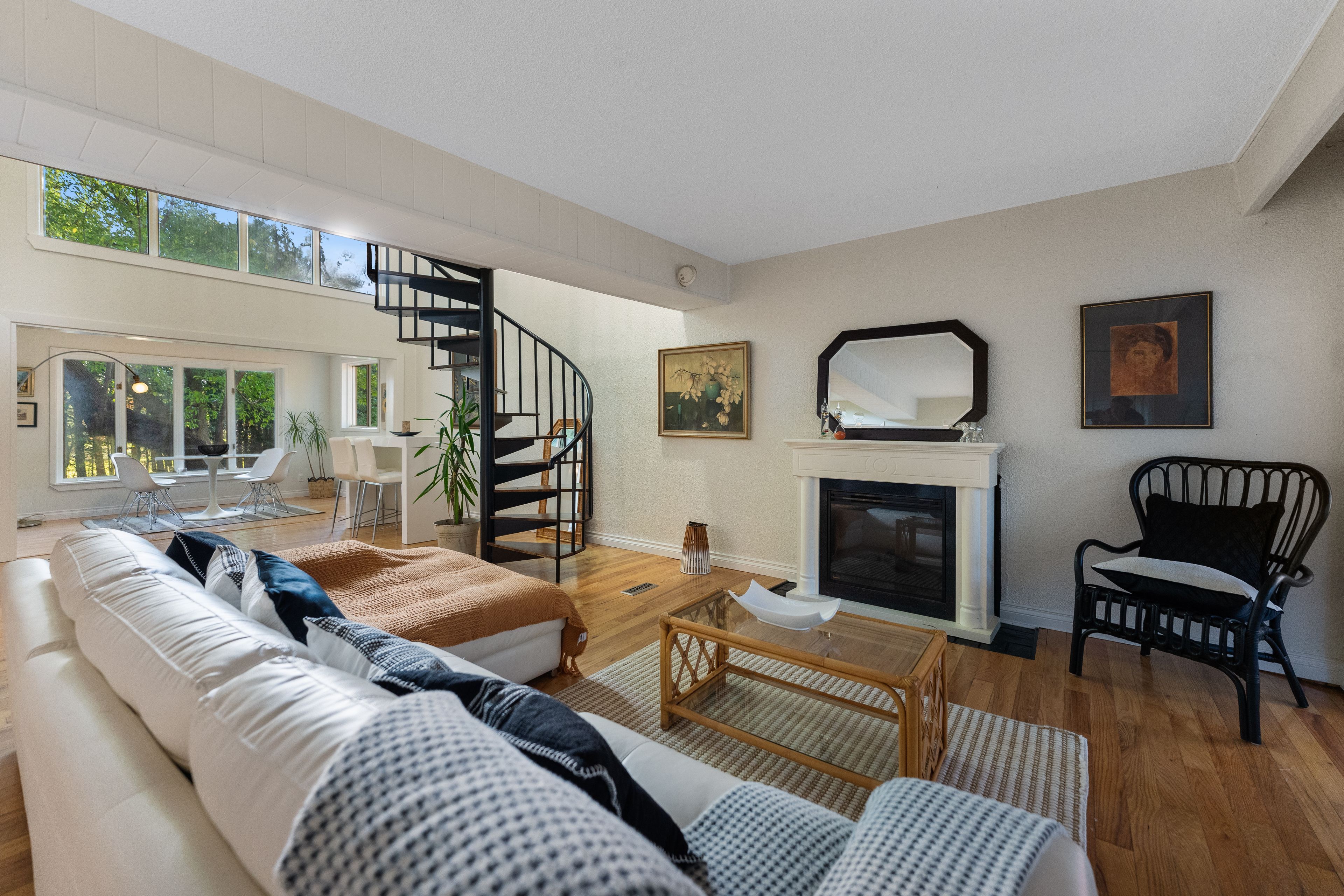 Tucked away in the picturesque village of Alton - just steps from the Millcroft Inn and the renowned Alton Mills Arts Centre - this delightful mid-century gem is a charming nod to retro design, with thoughtful updates that honour its timeless appeal. Showcasing classic architectural lines and a layout well ahead of its time, the home features soaring cathedral ceilings, expansive windows, and multiple walk-outs that bathe the space in natural light. The open-concept main floor seamlessly connects the living room, dining area, and kitchen, creating an inviting space perfect for gatherings and everyday living. The kitchen adds a playful yet functional twist with crisp white cabinetry, marble-look laminate countertops, and eye-catching black-and-white checkered floors that stay true to the home's roots. A generous pantry and ample counter space ensure both style and practicality. Upstairs, you'll find three spacious bedrooms - each offering outdoor access, with one even featuring its very own slide! A second living room on the main level offers a cozy retreat and is paired with a 3-piece bath and an additional upper-level bedroom, creating a flexible separate area perfect for extended family, guests, or a home office setup. Outside, the private backyard is a haven for warm-weather entertaining, gardening, or simply relaxing under the trees. Whether you're drawn to the charm of Alton or dreaming of a home with personality and potential, this one-of-a-kind property is ready to write its next chapter.A rare opportunity to make your mark - this vibrant property is a blank canvas awaiting your entertaining dreams.
