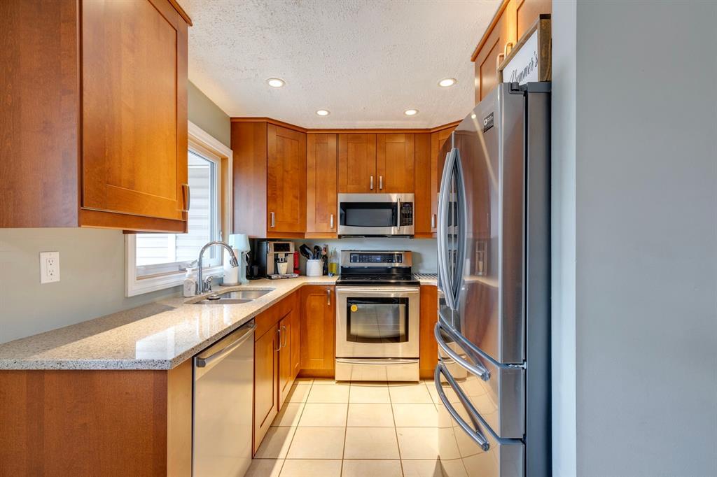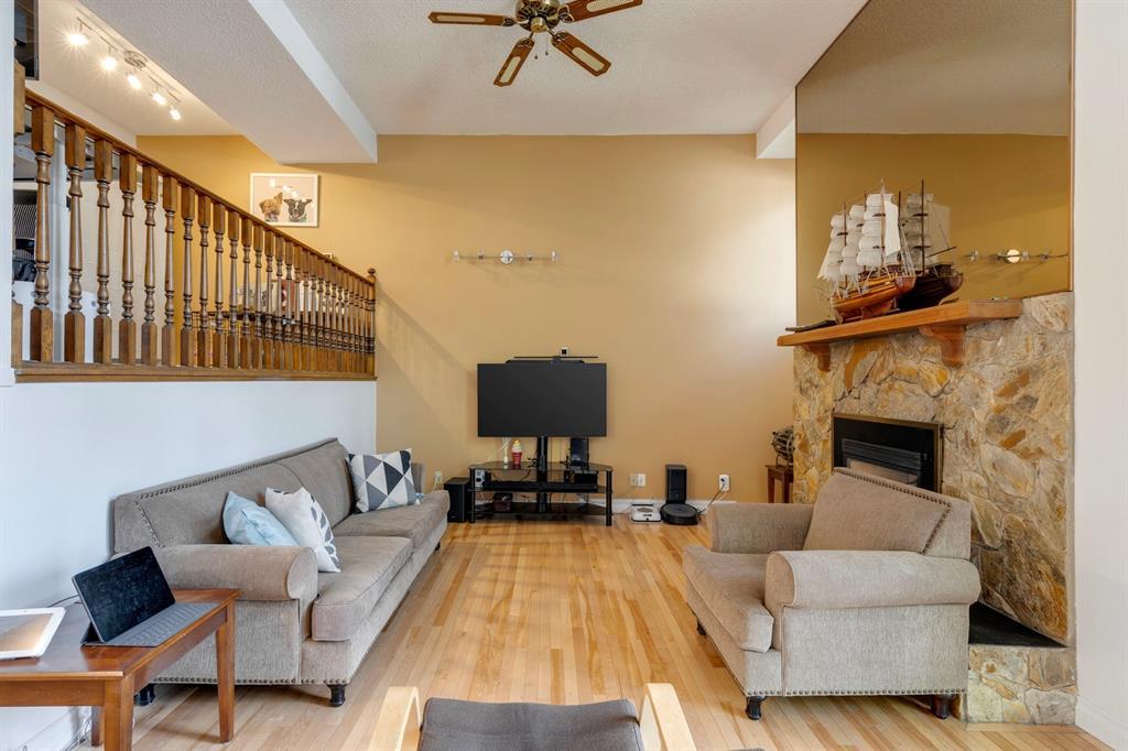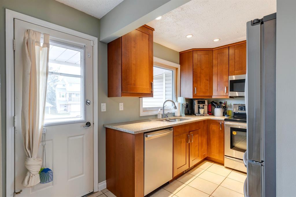 This 5 Level Split Townhome located in the community of Millrise has so much to offer. From the moment you walk in, it will feel like home. Bright and spacious, offering 1380sq.ft. of living space, 2 bedrooms, 2.5 baths, a single attached garage, and your own private yard. The living room is spacious with vaulted ceilings, maple hardwood floors, a gas fireplace and patio doors leading to your treed/private/fenced yard. The large windows throughout allow for lots of natural light. The next level loft is perfect for a home office or dining area and overlooks the living room. The updated kitchen boasts quartz countertops, stainless steel appliances, a breakfast nook w/ built-in pantry and a south facing deck. There is a 2-piece bath on this level as well. Upstairs you will find the Primary bedrooms w/ double closets, a 3-piece ensuite and a balcony. The second bedroom is a great size. There is a 4-piece bathroom and the convenience of laundry to complete the upper level. The lower level is unfinished w/ your utility room and lots of storage space. A 10-minute walk to the C-Train, dining, groceries and so much more. Easy access to main roads and close to Fish Creek Park. This Gem will not last. (id:22211)