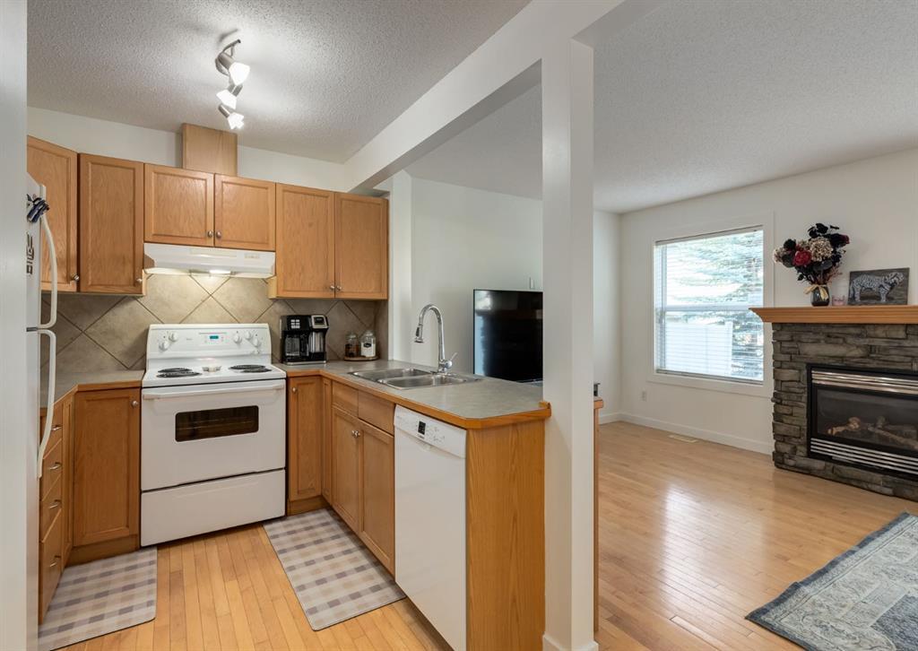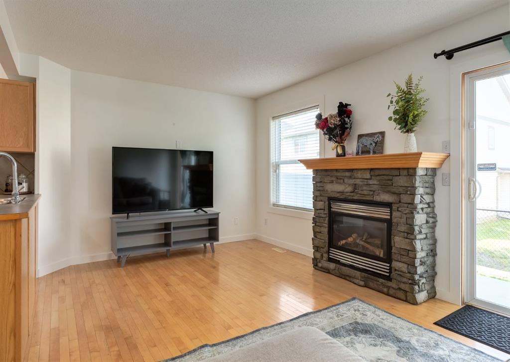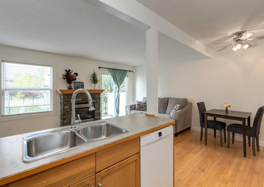 Welcome to Eversyde Court! This beautiful two-storey townhome in Evergreen is steps away from shopping, schools, public transportation, and is sure to impress. The main floor welcomes you in with an open floor plan, featuring a gas fireplace as the focal point of the living room. You’ll enjoy features like big windows for ample natural light, hardwood floors, a new dishwasher and new paint throughout! Upstairs you’ll find the spacious primary bedroom with a walk-in closet, and second bedroom with shared 4pc bathroom. The fully developed basement holds a family/recreation room, 3pc bathroom, laundry area and 2 storage spaces! Perfect for growing families and work from home professionals, plus it’s pet friendly! This townhome also features a single attached garage and concrete driveway, as well as a front porch and a patio in the backyard! This won’t be on the market for long, book your showing today! (id:22211)