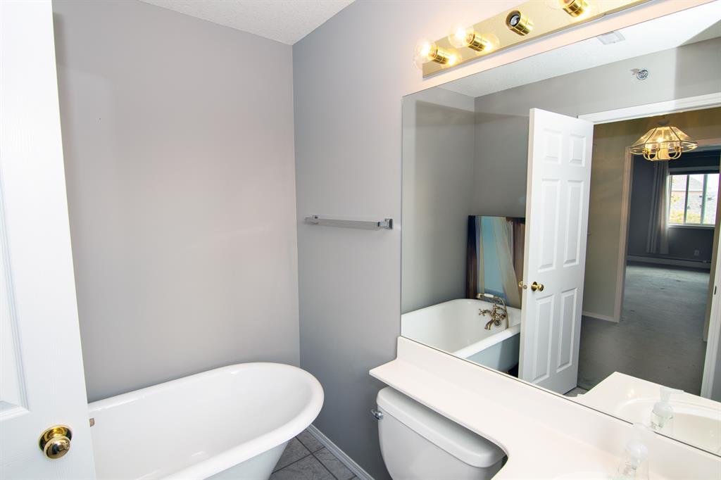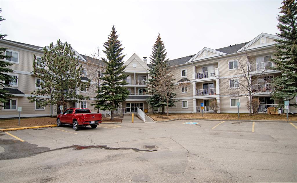 Top floor, corner unit, south facing deck, over 1100 sq/ft of living space, 2 bedrooms, plus den, with some features other units don’t offer. Open concept, galley Kitchen with gas cooktop, wall oven, kitchen breakfast bar, and tile flooring, all open to dining and living space. South-facing windows and patio sliders let the sun into this bright unit, with an AC unit & gas hook up for your BBQ. Separate laundry/utility room for in-unit storage, a den/flex room for a computer or office space, 3-piece guest bath with a 6-foot walk-in shower. The primary suite is large enough to host a king-size bed, walk through closet into the ensuite with a stand-alone clawfoot soaker tub. 2nd bedroom has double doors opening to the primary suite, for those who work from home, need a great nursery, or just an owner retreat, convent but private. Heated oversized underground parking, plus an assigned basement-level storage locker. Quiet building with convent guest parking at the front door, public transit just steps away. Close proximity to all amenities - Shopping, paved pathways, Fish Creek Provincial Park, Blue Devil & McKenzie Meadows Golf Course. Easy access to Stoney Trail, Macleod Trail, and South Campus Hospital makes this community of Chaparral a desirable location. (id:22211)