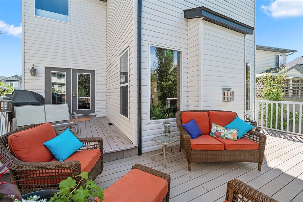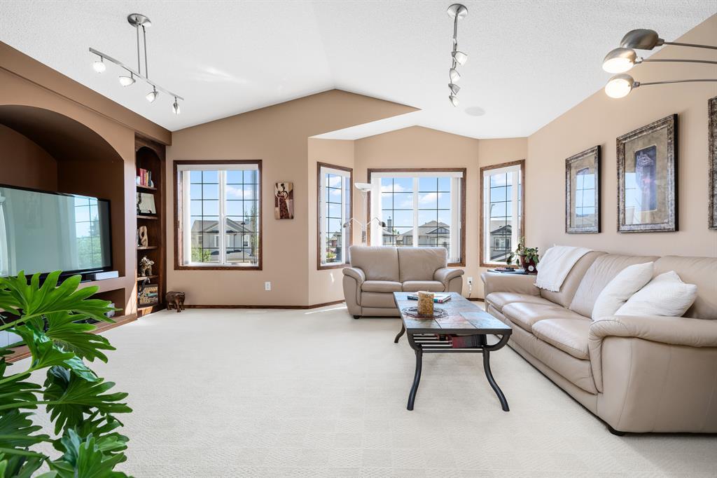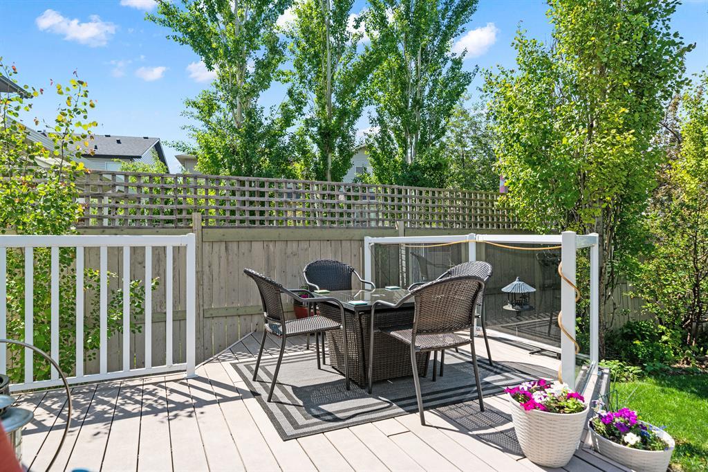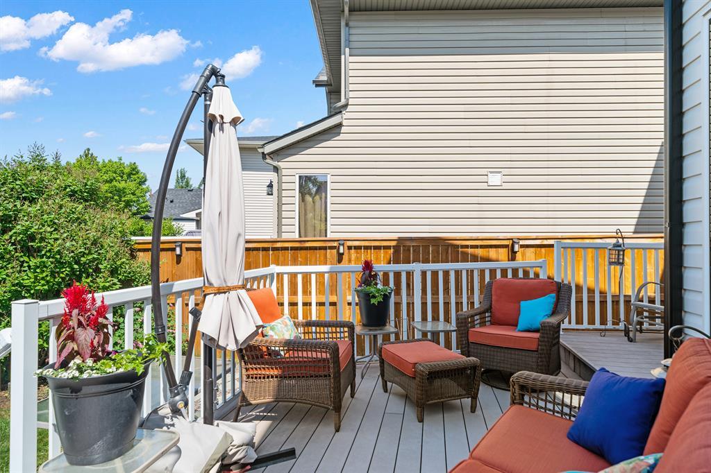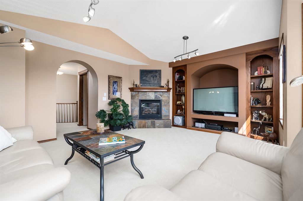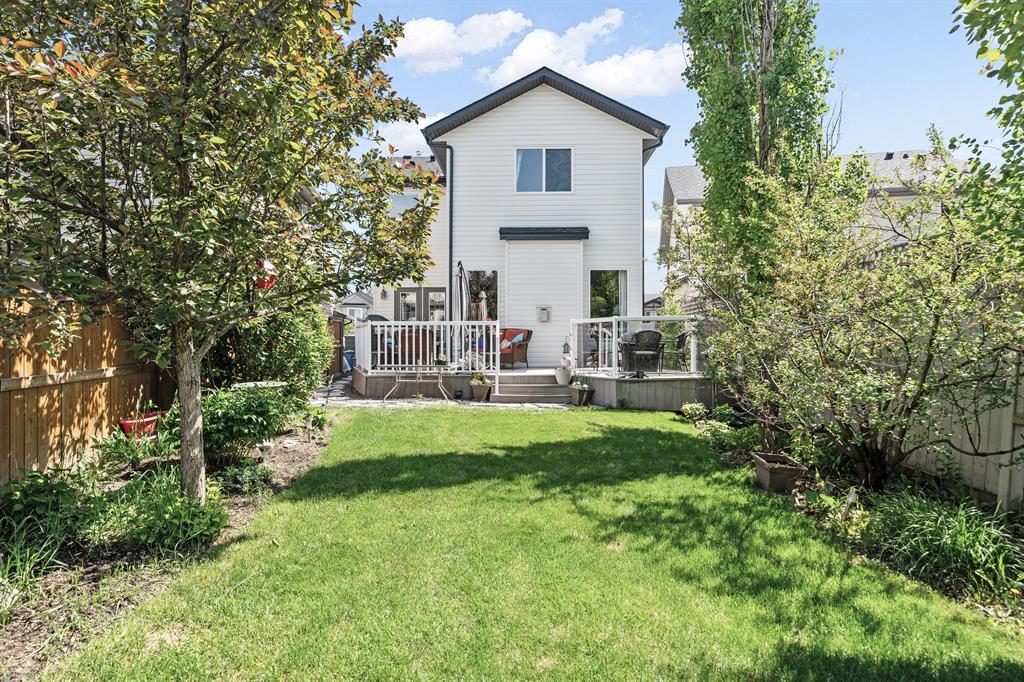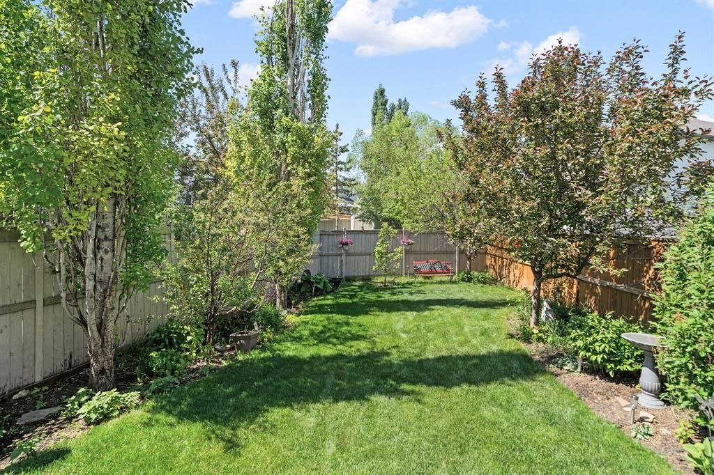 Beautifully maintained home with meticulous landscaping and a large west-facing backyard on a quiet street within this family-friendly community. Lovely gardens add to the curb appeal granting a fantastic first impression. A private foyer leads to an elegant main hallway with coffered ceilings. The open and airy floor plan is adorned with 9’ ceilings and gleaming maple hardwood flooring that was on site finished (not factory) and hand stained. Made for entertaining the spacious kitchen looks out to the living room, dining room and yard! Loads of counterspace and cabinets, a pantry for extra storage, stainless steel appliances and a centre island with a raised breakfast bar encourage culinary adventures and time spent gathered together. The fireplace flanked by windows in the adjacent living room invites you to sit back and put your feet up. Easily host intimate or large dinner parties in the dining room or proceed through French doors to the expansive deck with gas line for casual summer barbeques and a carefree indoor/outdoor lifestyle. Gorgeous etched French doors open to reveal a privately enclosed home office that looks out to the front gardens. This well laid out floor plan includes a powder room ideally away from the main living spaces and a large mudroom with laundry. Convene in the upper level, vaulted bonus room around the second fireplace and enjoy binging your favourite show and weekend movie nights around the built-in media area equipped with surround sound speaker system and an included 60" TV. Grand cathedral ceilings and backyard views add an airy ambience to the primary retreat complete with its own private ensuite boasting an indulgent jetted soaker tub, a separate shower and a large walk-in closet. Both additional bedrooms on this level are generously sized, sharing the 4-piece main bathroom. The basement awaits your creativity and is already equipped with rough-ins for a future bathroom plus 2 windows that stream in sunshine and all of the plumbin g lines are Pex with no Poly B. The massive full-width, 2-tiered, glass railed rear deck is an outdoor paradise that looks out to the extra deep and exceptionally private yard nestled amongst mature trees and sour cherries creating an outdoor oasis. An extra wide driveway leads to the oversized double attached garage with a workbench and a handy man door to the side yard. Phenomenally located within walking distance to Fish Creek Park, Evergreen School, Marshall Springs School and numerous shops, restaurants and services including Shoppers, Starbucks, Tim Hortons and Sobeys. When you do need to leave the neighbourhood there is great access to Stoney Trail, McLeod Trail, Tsuut’ina Costco, the Shawnessy/Bridlewood LRT Station, the YMCA and much more! Truly an unbeatable location for this move-in ready home! (id:22211)
