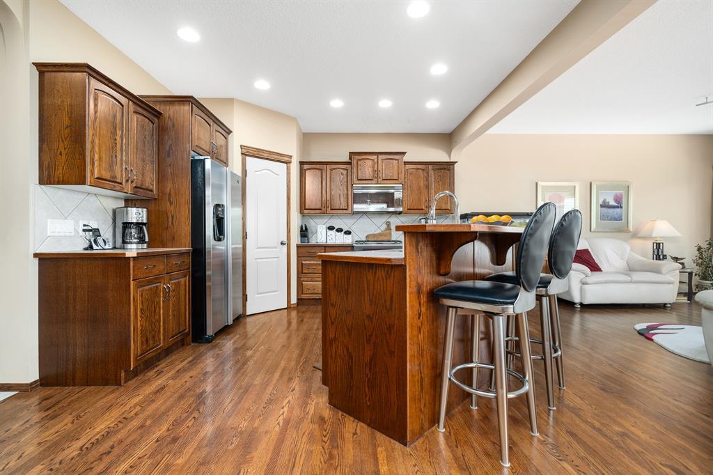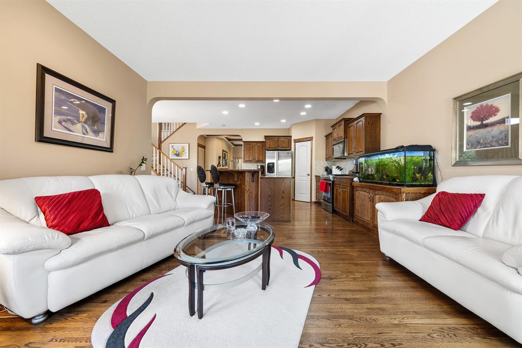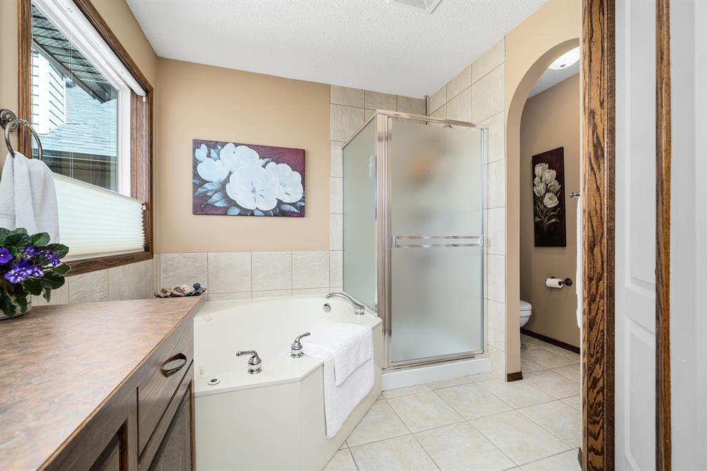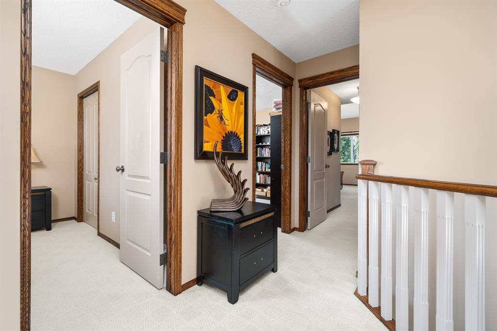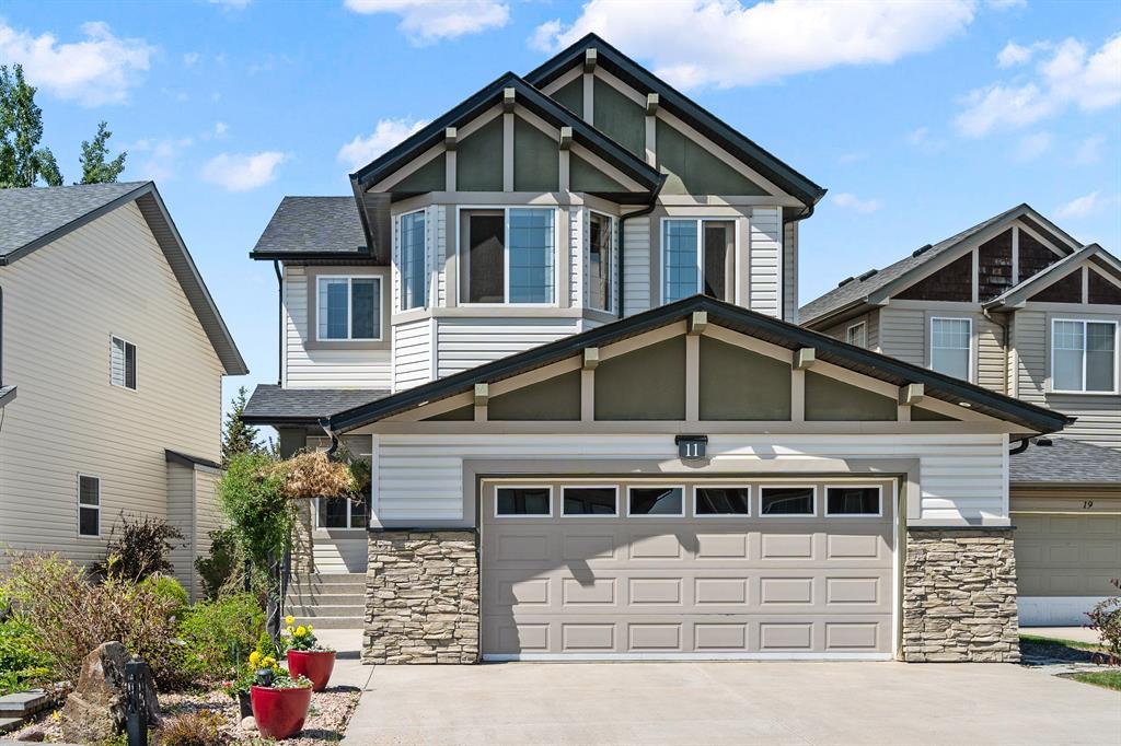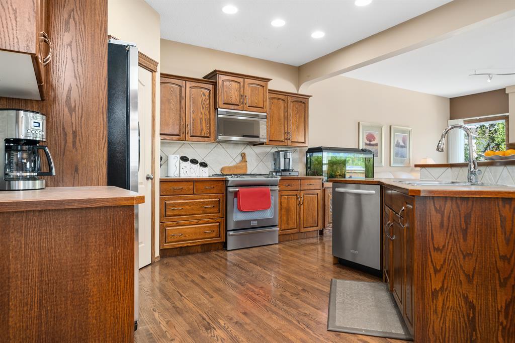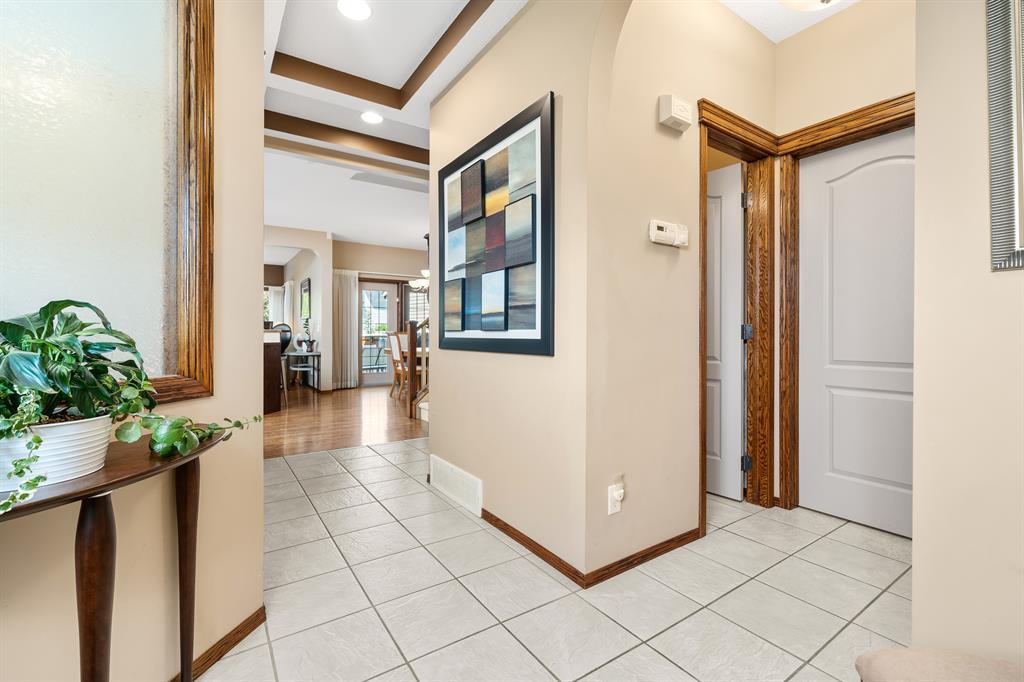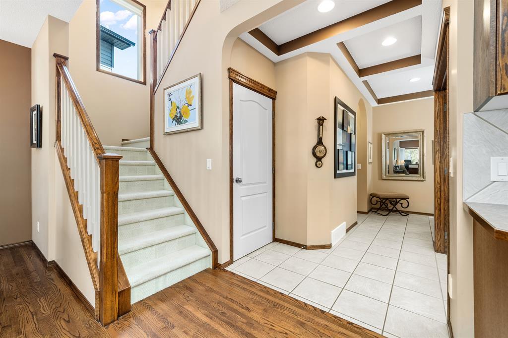 Beautifully maintained home with meticulous landscaping and a large west-facing backyard on a quiet street within this family-friendly community. Lovely gardens add to the curb appeal granting a fantastic first impression. A private foyer leads to an elegant main hallway with coffered ceilings. The open and airy floor plan is adorned with 9’ ceilings and gleaming maple hardwood flooring that was on site finished (not factory) and hand stained. Made for entertaining the spacious kitchen looks out to the living room, dining room and yard! Loads of counterspace and cabinets, a pantry for extra storage, stainless steel appliances and a centre island with a raised breakfast bar encourage culinary adventures and time spent gathered together. The fireplace flanked by windows in the adjacent living room invites you to sit back and put your feet up. Easily host intimate or large dinner parties in the dining room or proceed through French doors to the expansive deck with gas line for casual summer barbeques and a carefree indoor/outdoor lifestyle. Gorgeous etched French doors open to reveal a privately enclosed home office that looks out to the front gardens. This well laid out floor plan includes a powder room ideally away from the main living spaces and a large mudroom with laundry. Convene in the upper level, vaulted bonus room around the second fireplace and enjoy binging your favourite show and weekend movie nights around the built-in media area equipped with surround sound speaker system and an included 60" TV. Grand cathedral ceilings and backyard views add an airy ambience to the primary retreat complete with its own private ensuite boasting an indulgent jetted soaker tub, a separate shower and a large walk-in closet. Both additional bedrooms on this level are generously sized, sharing the 4-piece main bathroom. The basement awaits your creativity and is already equipped with rough-ins for a future bathroom plus 2 windows that stream in sunshine and all of the plumbin g lines are Pex with no Poly B. The massive full-width, 2-tiered, glass railed rear deck is an outdoor paradise that looks out to the extra deep and exceptionally private yard nestled amongst mature trees and sour cherries creating an outdoor oasis. An extra wide driveway leads to the oversized double attached garage with a workbench and a handy man door to the side yard. Phenomenally located within walking distance to Fish Creek Park, Evergreen School, Marshall Springs School and numerous shops, restaurants and services including Shoppers, Starbucks, Tim Hortons and Sobeys. When you do need to leave the neighbourhood there is great access to Stoney Trail, McLeod Trail, Tsuut’ina Costco, the Shawnessy/Bridlewood LRT Station, the YMCA and much more! Truly an unbeatable location for this move-in ready home! (id:22211)