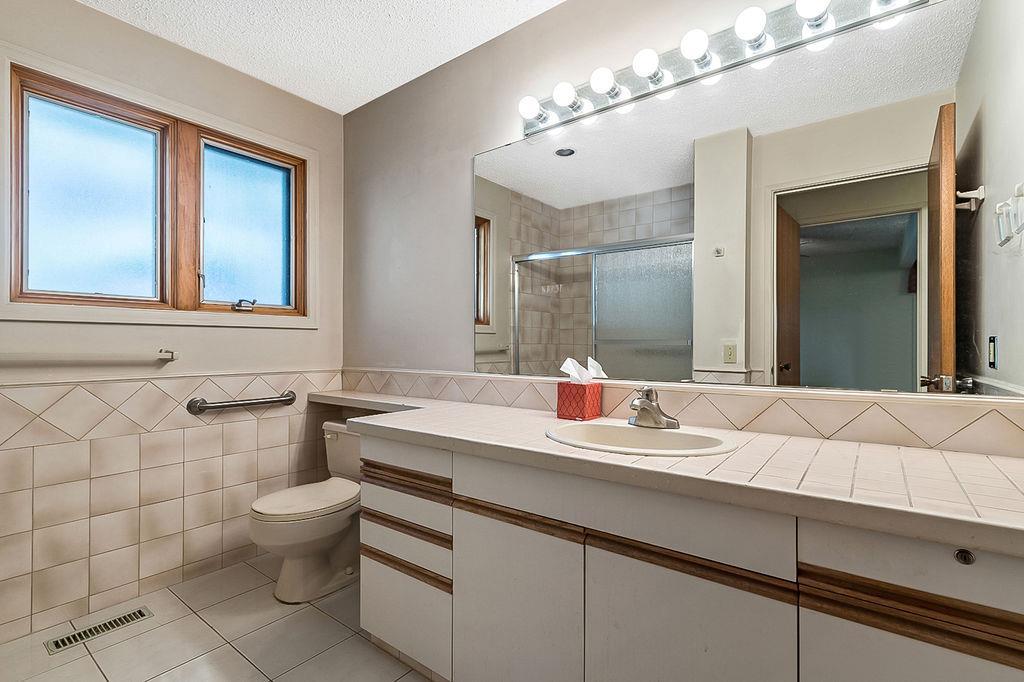Braseside Gem-Larger Mint Bungalow 1365sq ft above grade. Originally a 3 bedroom up(converted to 2) and 2 bed down with 2.5 bathrooms. Large front bedroom with ensuite and fun 3 season SUNROOM. Kitchen looks onto backyard with large pantry. Gorgeous WEST backyard and DRIVETHRU garage. Heritage hardwood floors and Vintage perennial gardens. Roof, soffits, siding, eaves, windows all updated. Basement is fully finished in with 2 bedrooms, bar and bathroom plus laundry and storage. Southland Leisure Centre minutes away as well as Fishcreek Park. Costco, No Frills and library just around the corner. Off leash park just down the block and fantastic access to spanish, french, catholic and public schools. This is a beautiful big home that is waiting for its next owners in a fabulous mature neighbourhood. (id:22211)