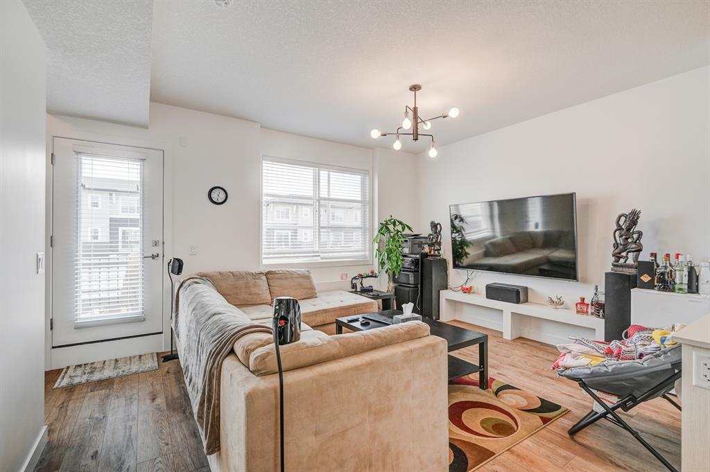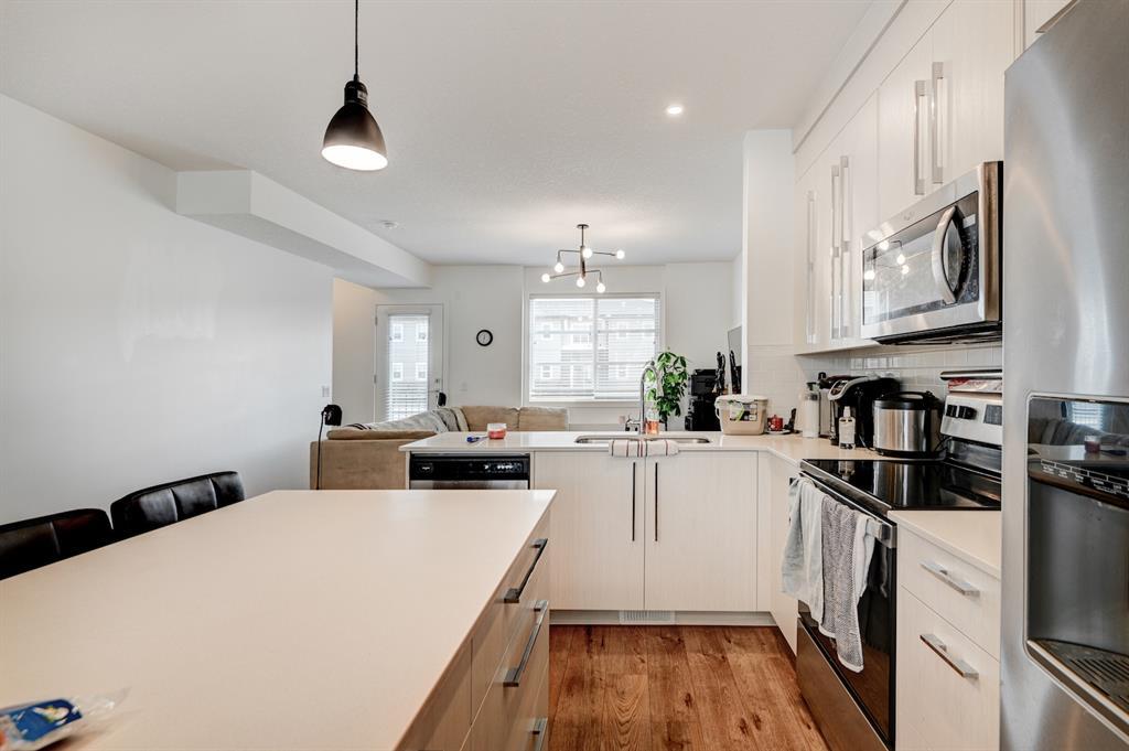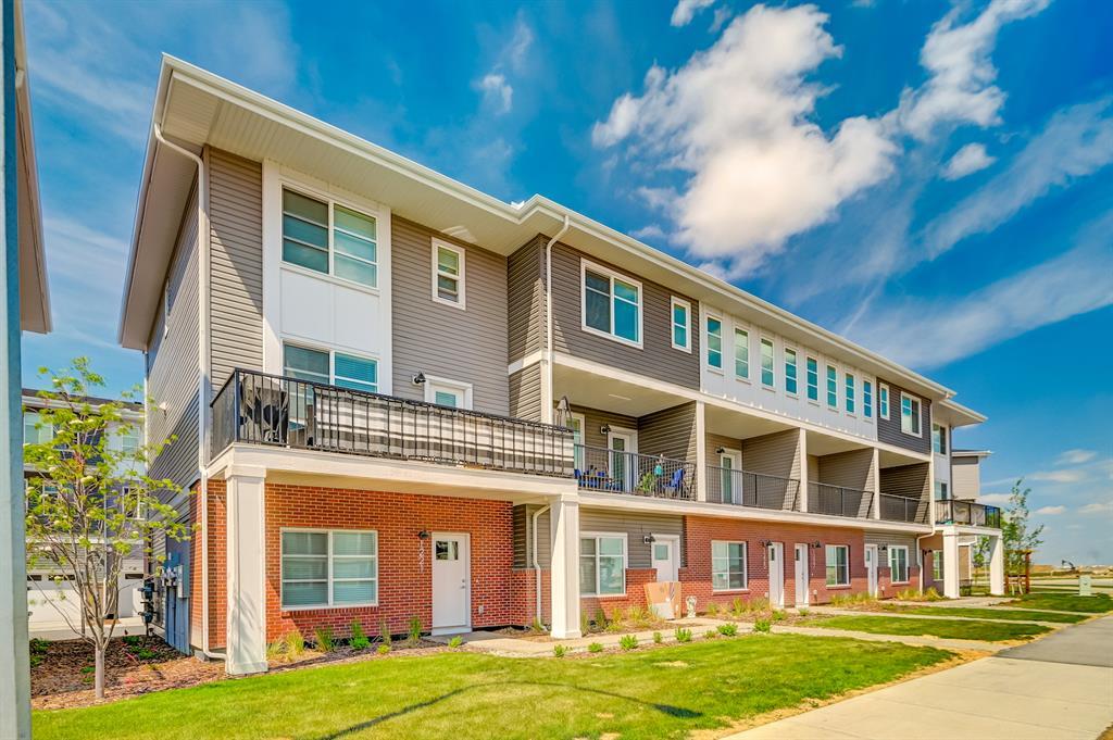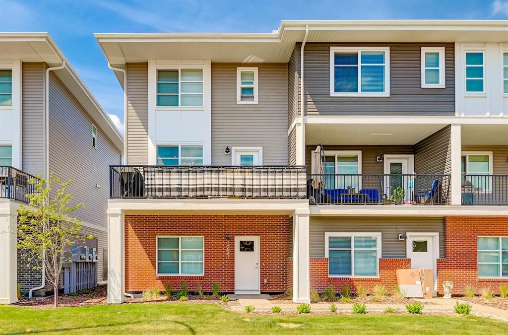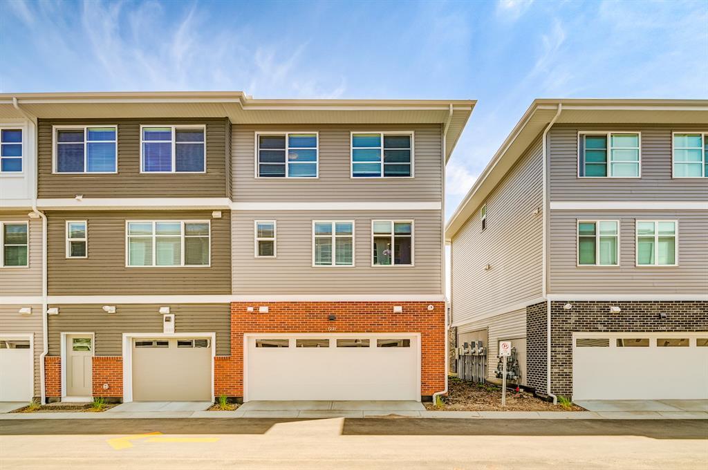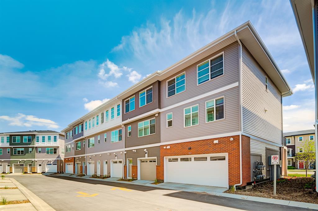 A Fantastic Find in Cornerstone! This 2021 built, 4 bedroom Townhouse, 2.1/2 bath, new build condo located in Cornerstone Passage fronting East and West Exterior Back. Offering approximately 1505 sq.ft. of living with large picture windows. Commute on Stoney this an easy access property that is central to Calgary's North East side of the city, offering a cozy private foyer entrance, large entertainment areas including a spacious living & dining room, an open modern kitchen with quartz counter tops, a centre island, with bright picture windows. There is a beautiful primary suite with a private 4pc ensuite, additional 4 pc bath, guest bedroom, and an additional top floor guest bedroom and one lower level bedroom, upper floor laundry, gleaming laminate floors & upgraded stainless appliance package. Situated on the street side with a large outdoor balcony for entertaining and it is situated perfectly nearby amenities & shopping. Additionally, this home offers one double attached insulated, (electric )heated garage and there is a paved backlane access to your indoor parking at the rear of this end unit. A fabulous opportunity to own this outstanding unit that walks out to ground level with balcony Skyline Views that are just one of the unique qualities of this residence in a neighborhood with a fine reputation for new homes for families. (id:22211)