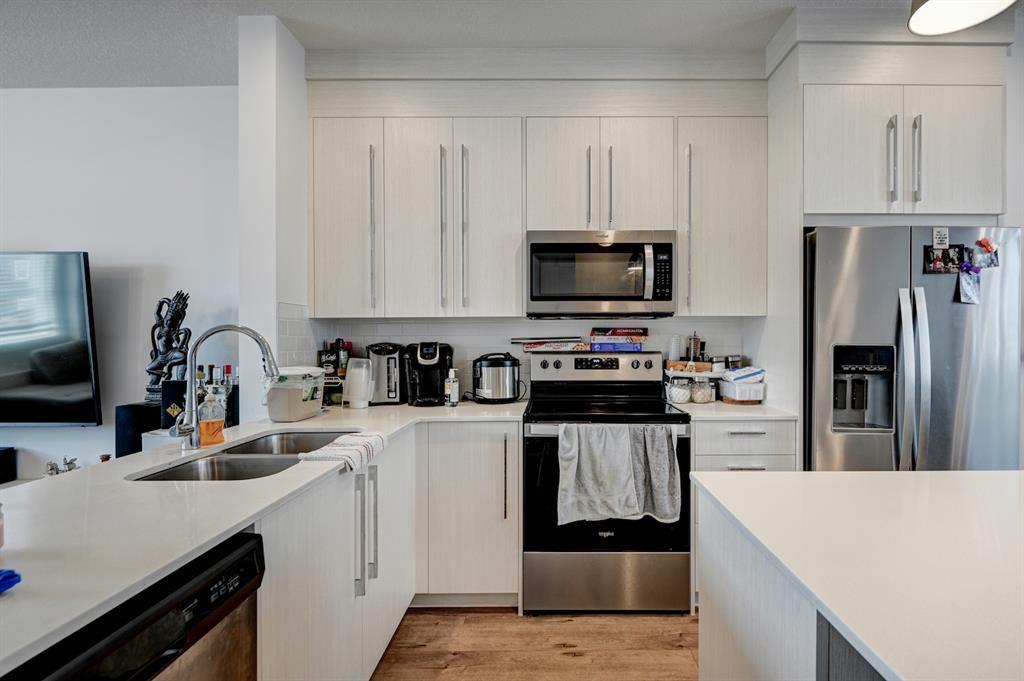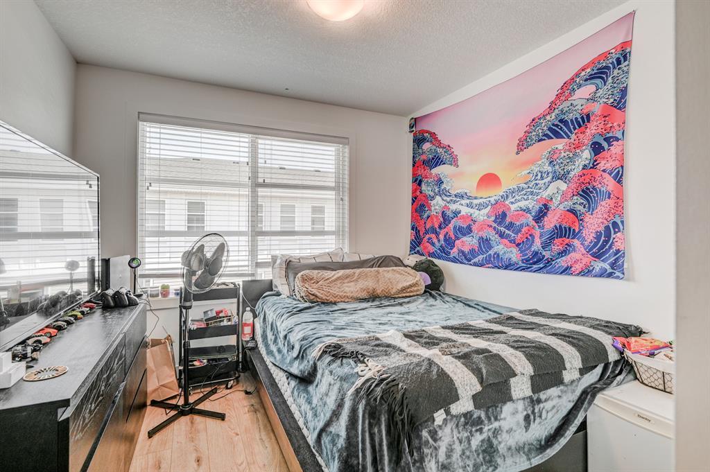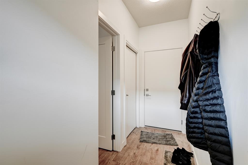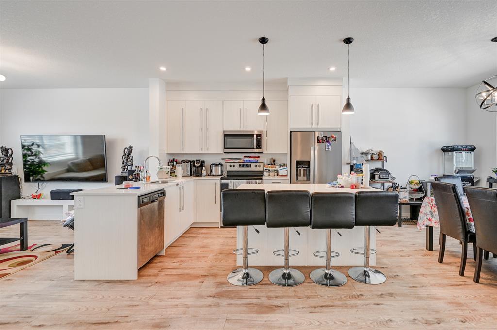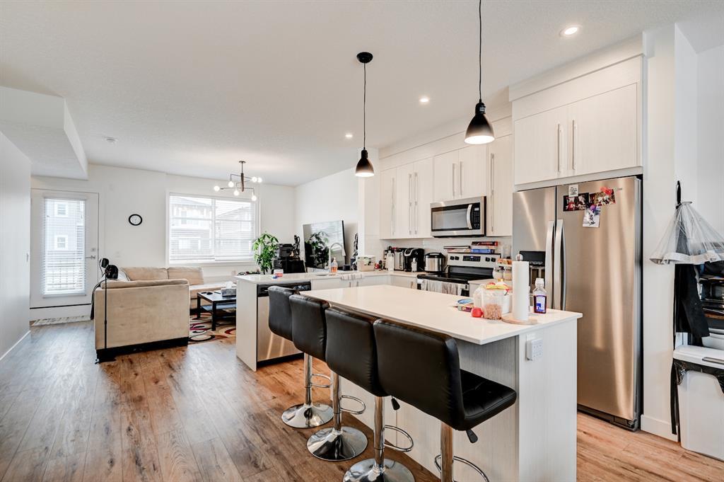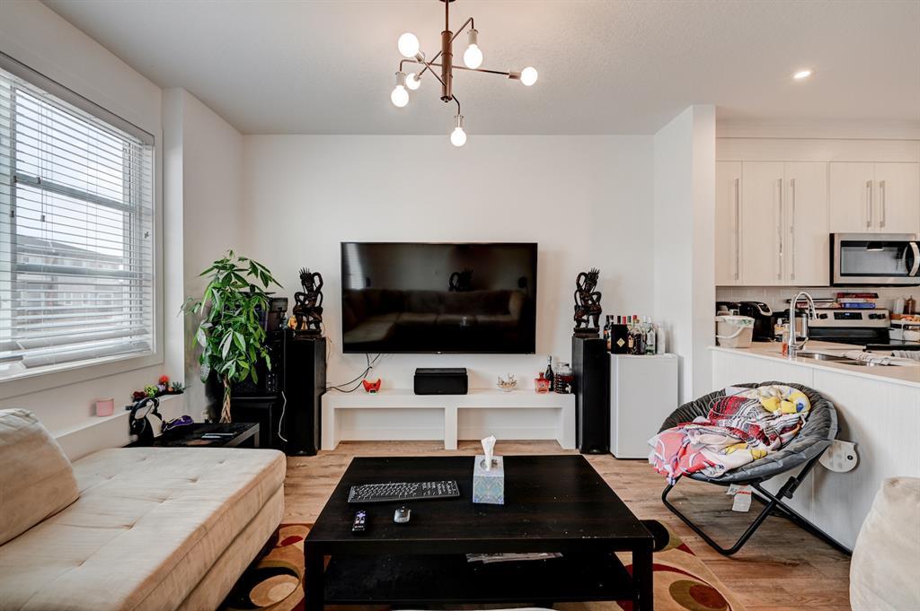 A Fantastic Find in Cornerstone! This 2021 built, 4 bedroom Townhouse, 2.1/2 bath, new build condo located in Cornerstone Passage fronting East and West Exterior Back. Offering approximately 1505 sq.ft. of living with large picture windows. Commute on Stoney this an easy access property that is central to Calgary's North East side of the city, offering a cozy private foyer entrance, large entertainment areas including a spacious living & dining room, an open modern kitchen with quartz counter tops, a centre island, with bright picture windows. There is a beautiful primary suite with a private 4pc ensuite, additional 4 pc bath, guest bedroom, and an additional top floor guest bedroom and one lower level bedroom, upper floor laundry, gleaming laminate floors & upgraded stainless appliance package. Situated on the street side with a large outdoor balcony for entertaining and it is situated perfectly nearby amenities & shopping. Additionally, this home offers one double attached insulated, (electric )heated garage and there is a paved backlane access to your indoor parking at the rear of this end unit. A fabulous opportunity to own this outstanding unit that walks out to ground level with balcony Skyline Views that are just one of the unique qualities of this residence in a neighborhood with a fine reputation for new homes for families. (id:22211)