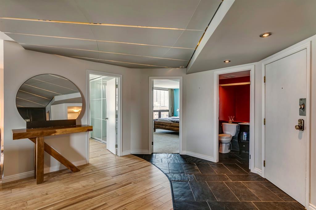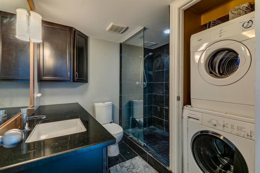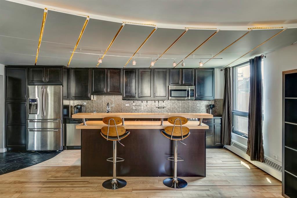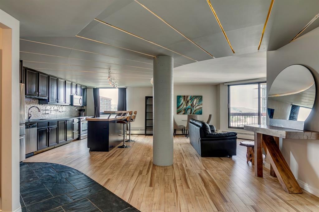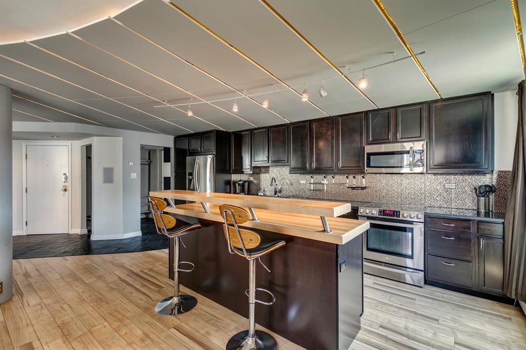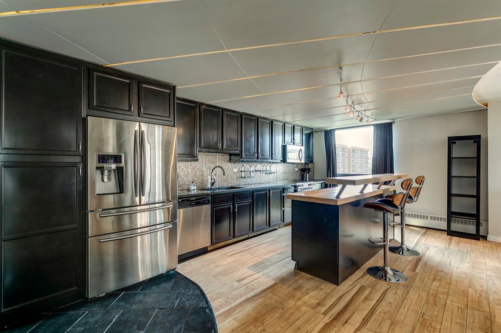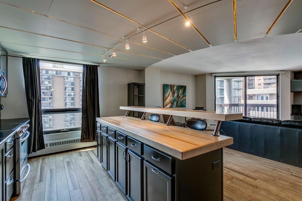 Welcome to unit 940, 1304 15th Avenue SW. This is not your average apartment; as you enter the unit, you notice the open concept, high-end design touches, and brand-new laminate flooring. This 2-bedroom 1.5 bath unit has undergone extensive renovations that will wow anyone who comes over. The kitchen is equipped with high-end Stainless-steel appliances, Granite countertops and multiple built-ins to maximize storage capability. The large island has a reclaimed wood countertop that will impress when you have friends or family over for parties. The ceiling has more design elements and is accented with led lighting. The living room/dining room has space for a small dining table and two couches. As you head into the primary bedroom, you will notice the ample size, built-in closet organizers and a 3-piece bathroom equipped with full-size laundry. The second bedroom is perfect for your home office or guests staying the night. If this was not already a great unit, it also comes with panoramic views of the downtown skyline, A covered parking stall, a storage locker, and proximity to all the shops and restaurants Calgary offers. Book your private showing today. (id:22211)