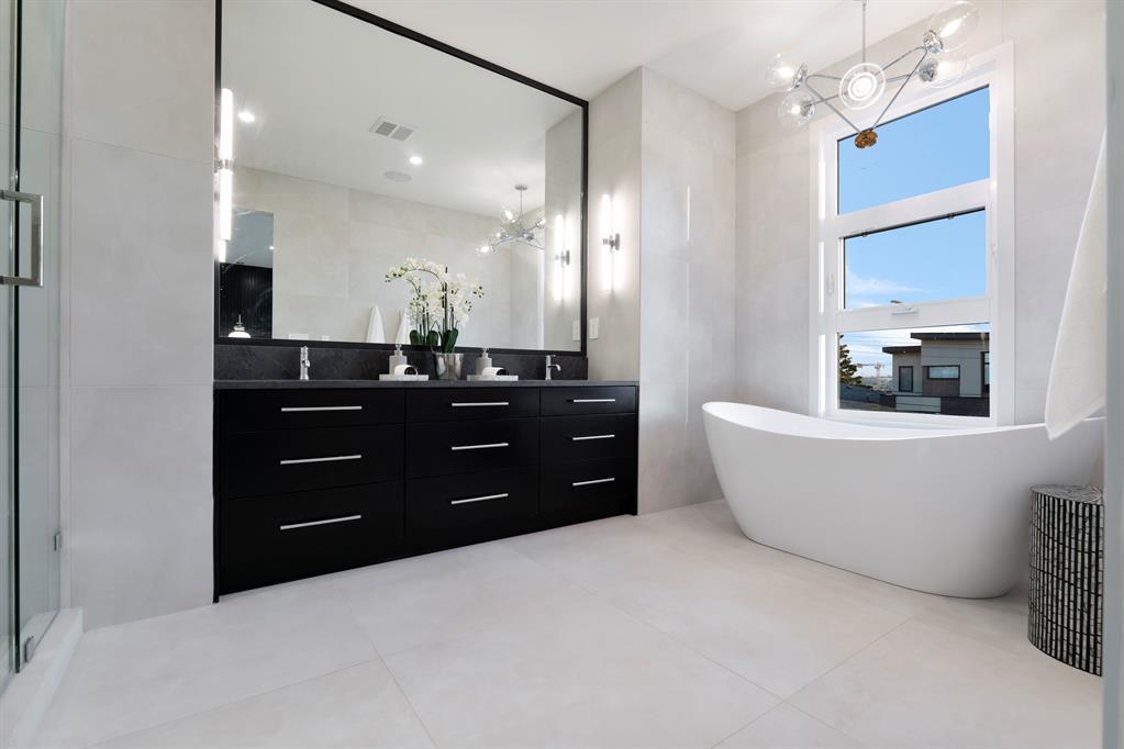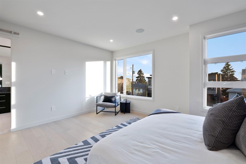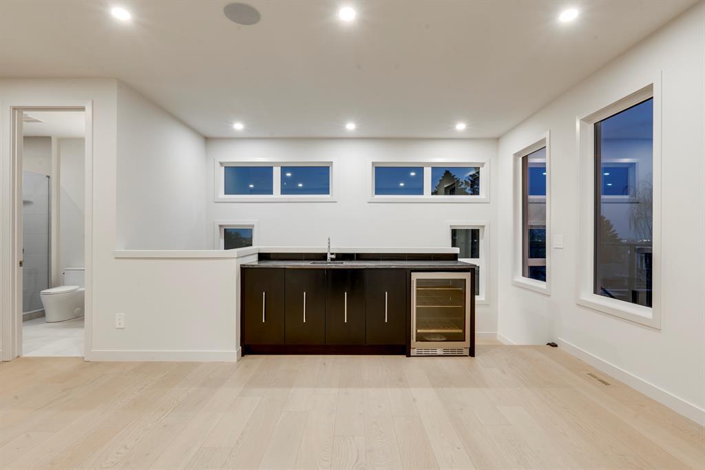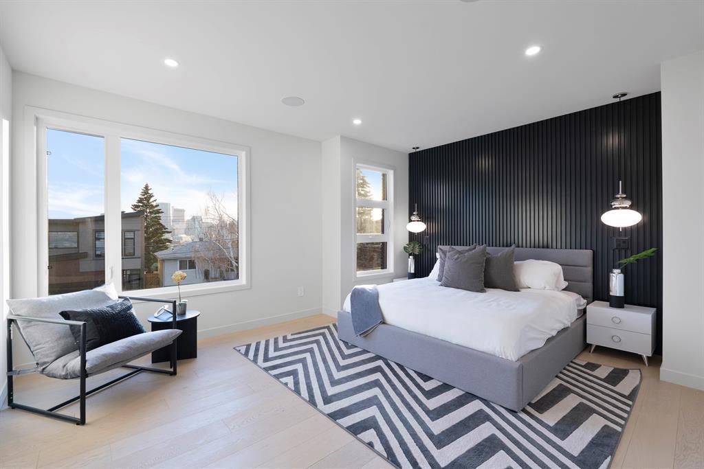 Fantastic views at an incredible price. Silverpoint homes and Paul Lavoie Interior Design present a spectacular creation, at an even more spectacular price. Over 4200 square feet of high quality craftsmanship on 4 levels. Hardwood flooring, Granite and lavish tiling adorn this home, which features an amazing floorplan perfect for a large family. As you enter the foyer a classic dining area welcomes you with a custom feature wall of GRASS CLOTH wallpaper, and floor to ceiling windows. The main level continues to the entertainment hub with a huge living room, Chef's kitchen with ample custom cabinetry. This well designed kitchen space has everything you would expect from a home of this meticulous design. A fabulous waterfall granite island, top line FISHER PAYKEL appliances which includes a custom panel fridge, a wall oven, speed oven/microwave, gas cooktop with a overhead 500 CFM hoodfan. The butlers pantry is perfect for additional storage, a full serving area and wine fridge, conveniently located between the formal dining and kitchen. Floor to ceiling sliding glass doors seamlessley usher you to a large back composite deck. Your comfortable living room showcases a classic fireplace, cladded with a Porcelain tile slab, accented with GREY side mirrors. Of course a huge mud room with custom cabinetry, and a quaint power room. The second level features your Primary Bedroom, with city and mountain views to the southwest. A beautiful retreat with sitting area, a spa ensuite with a STEAM SHOWER, tile everywhere you look, a freestanding tub ,dual sinks, heated tile floors, and of course a huge walk-in closet. This level also boasts a family lounge, office or a nursery. Its a perfect flex room on this level. An additional large bedroom, with walk in, and large east windows. A full main bath is located on this level for access by both rooms, offering dual sinks and a separate tub/shower area. The large laundry room is well located close by. The third floor highlights a truly spectacular city and mountain view to the south west, where the sunsets burst with vibrant colors. This top foor level is the perfect family area with a large wet bar, an additional sizeable bedroom and a 3 piece bath with large walk in shower. The basement is waiting for your favourite games table, a media room, (pre wired for 5.1) or a gym/yoga room. The fourth guest bedroom is spacous, private and shares another main full bath. A truly amazing location in one of the cities premier inner-city communities where city view lots are not becoming increasingly sparce. Close to all amenities, schools, shopping, some of the cities best restaurants, parks and access to downtown. Dont miss out on this great new home package. Silverpoint homes offers a 2 years builders warranty for peace of mind, plus the certified new home warranty program. This is the perfect home for the growing or grown family looking for more space and luxury living in a truly perfect location. (id:22211)