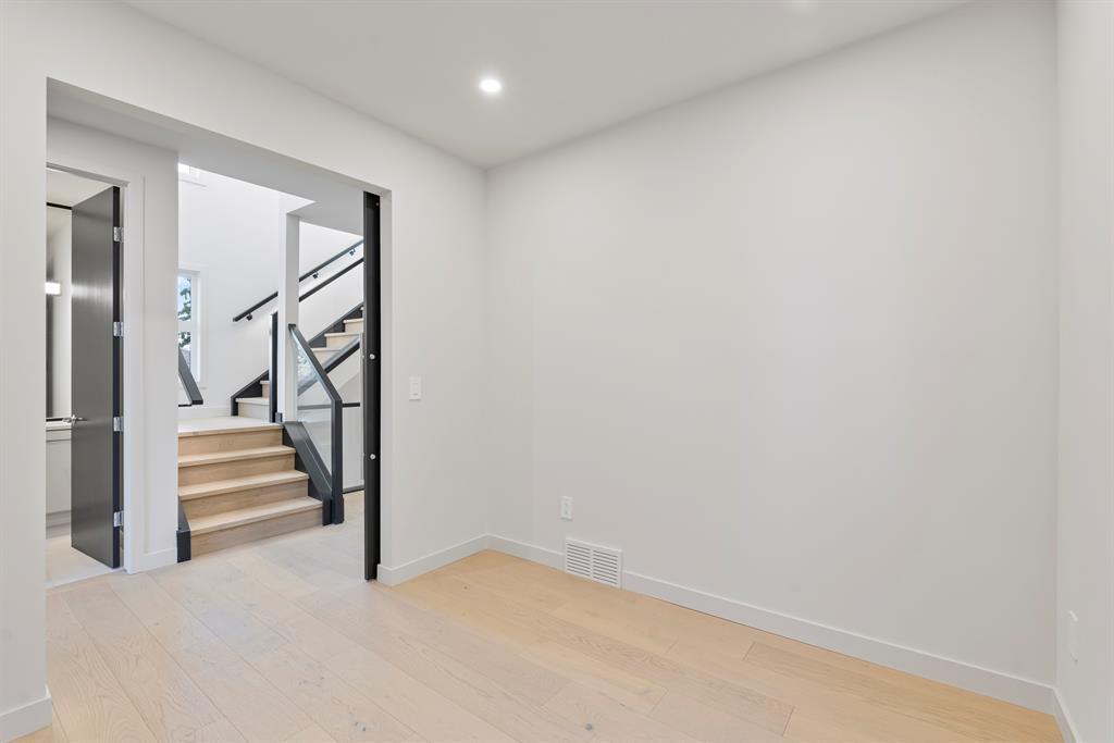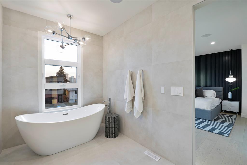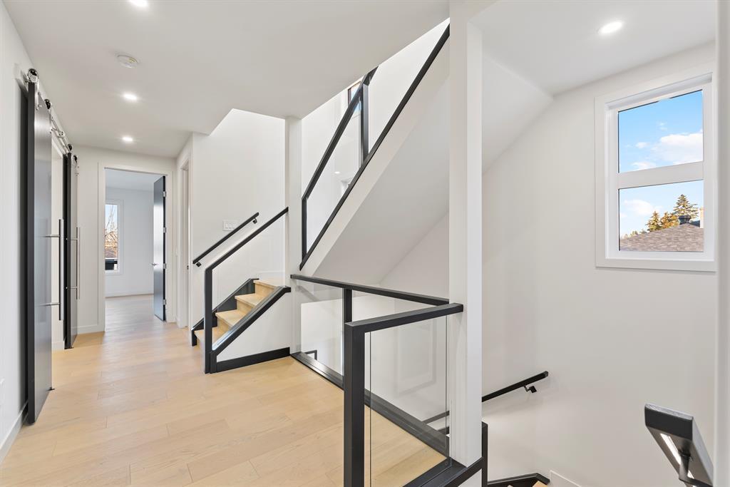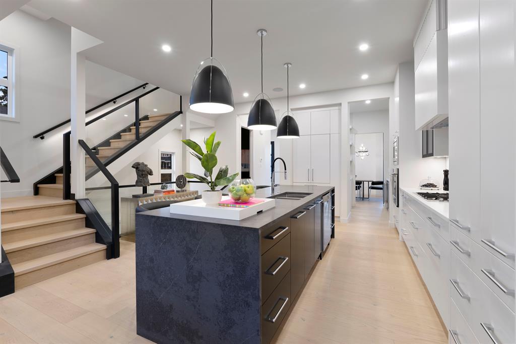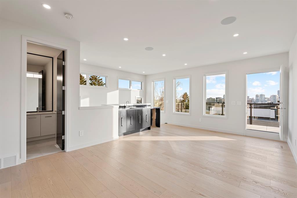 Fantastic views at an incredible price. Silverpoint homes and Paul Lavoie Interior Design present a spectacular creation, at an even more spectacular price. Over 4200 square feet of high quality craftsmanship on 4 levels. Hardwood flooring, Granite and lavish tiling adorn this home, which features an amazing floorplan perfect for a large family. As you enter the foyer a classic dining area welcomes you with a custom feature wall of GRASS CLOTH wallpaper, and floor to ceiling windows. The main level continues to the entertainment hub with a huge living room, Chef's kitchen with ample custom cabinetry. This well designed kitchen space has everything you would expect from a home of this meticulous design. A fabulous waterfall granite island, top line FISHER PAYKEL appliances which includes a custom panel fridge, a wall oven, speed oven/microwave, gas cooktop with a overhead 500 CFM hoodfan. The butlers pantry is perfect for additional storage, a full serving area and wine fridge, conveniently located between the formal dining and kitchen. Floor to ceiling sliding glass doors seamlessley usher you to a large back composite deck. Your comfortable living room showcases a classic fireplace, cladded with a Porcelain tile slab, accented with GREY side mirrors. Of course a huge mud room with custom cabinetry, and a quaint power room. The second level features your Primary Bedroom, with city and mountain views to the southwest. A beautiful retreat with sitting area, a spa ensuite with a STEAM SHOWER, tile everywhere you look, a freestanding tub ,dual sinks, heated tile floors, and of course a huge walk-in closet. This level also boasts a family lounge, office or a nursery. Its a perfect flex room on this level. An additional large bedroom, with walk in, and large east windows. A full main bath is located on this level for access by both rooms, offering dual sinks and a separate tub/shower area. The large laundry room is well located close by. The third floor highlights a truly spectacular city and mountain view to the south west, where the sunsets burst with vibrant colors. This top foor level is the perfect family area with a large wet bar, an additional sizeable bedroom and a 3 piece bath with large walk in shower. The basement is waiting for your favourite games table, a media room, (pre wired for 5.1) or a gym/yoga room. The fourth guest bedroom is spacous, private and shares another main full bath. A truly amazing location in one of the cities premier inner-city communities where city view lots are not becoming increasingly sparce. Close to all amenities, schools, shopping, some of the cities best restaurants, parks and access to downtown. Dont miss out on this great new home package. Silverpoint homes offers a 2 years builders warranty for peace of mind, plus the certified new home warranty program. This is the perfect home for the growing or grown family looking for more space and luxury living in a truly perfect location. (id:22211)