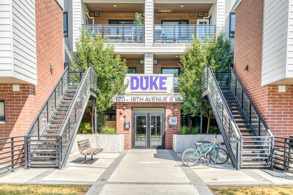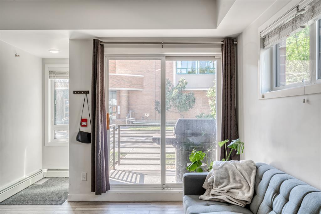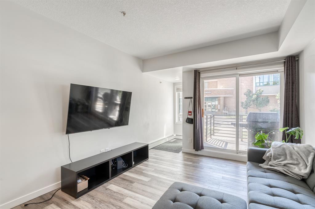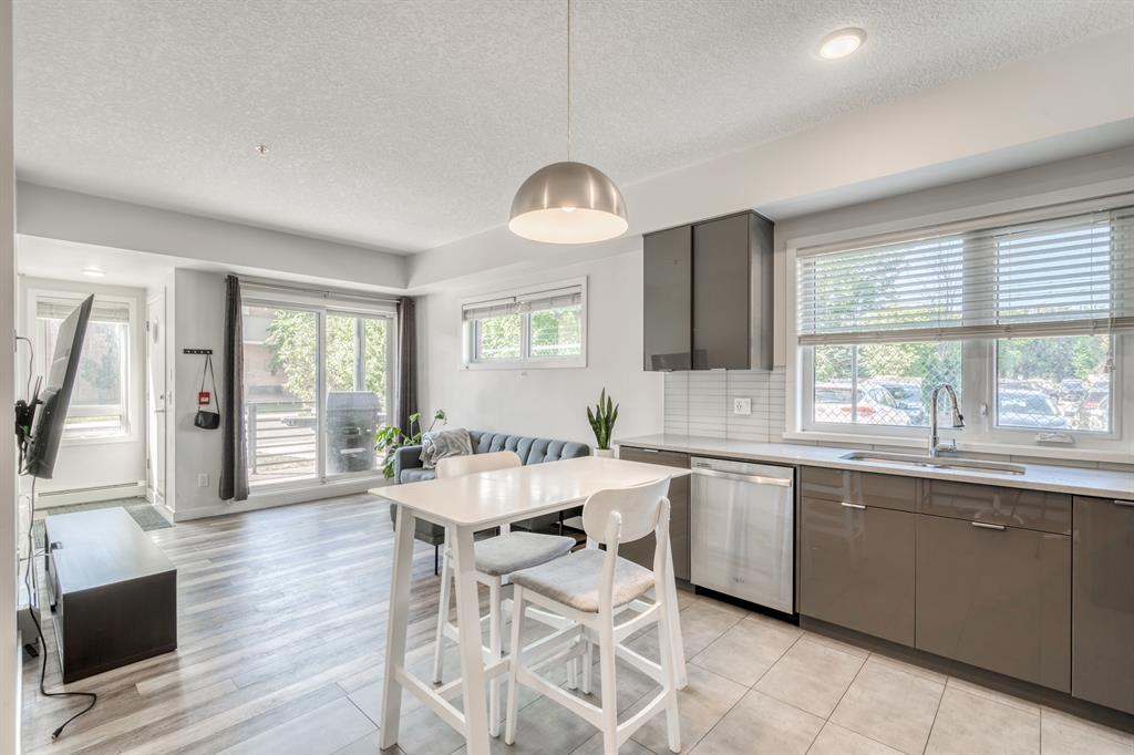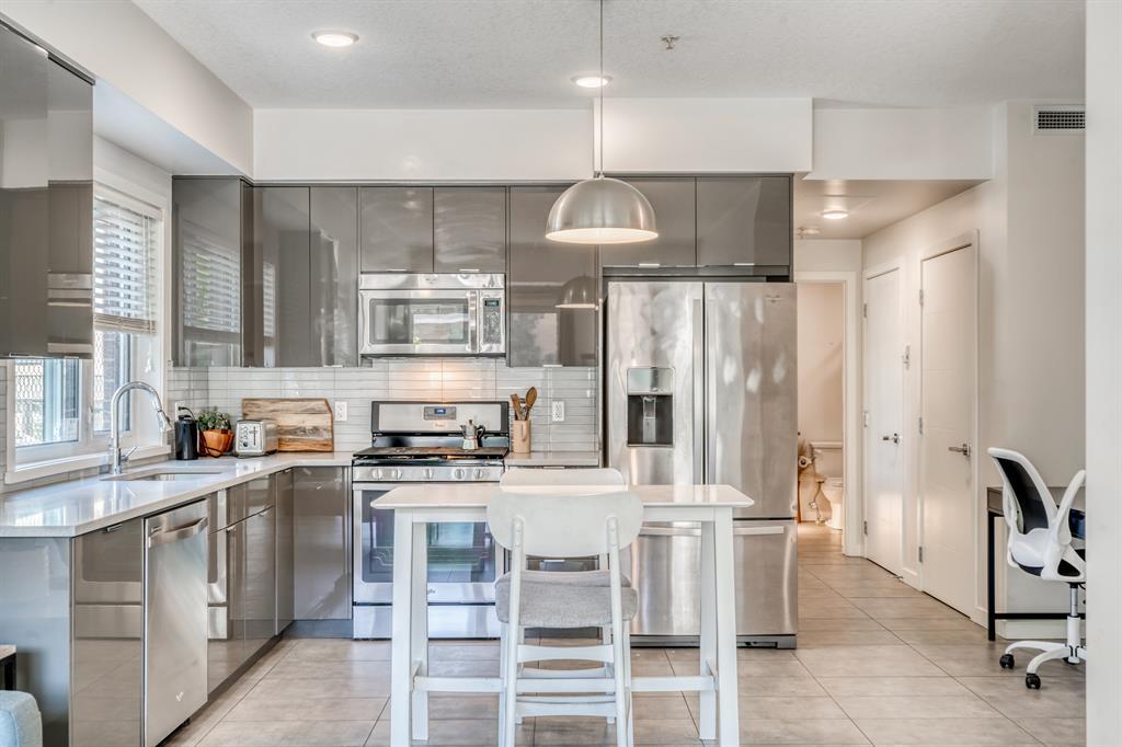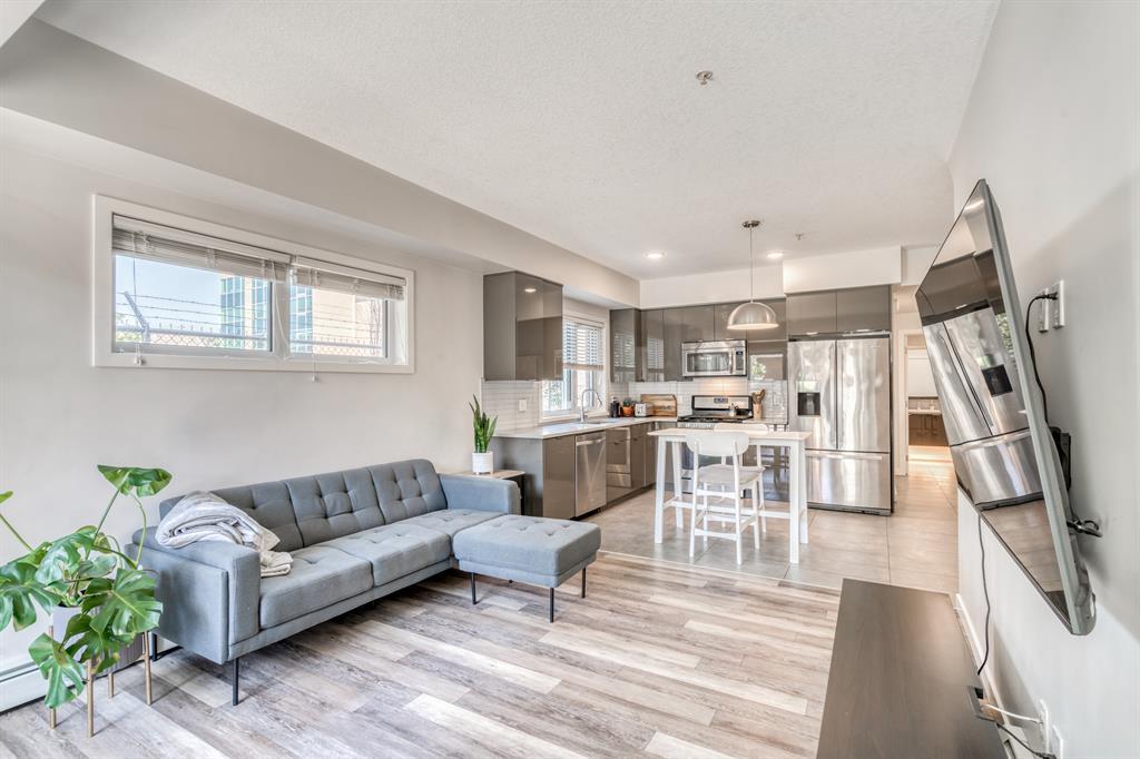Sophisticated ground level, end unit condo in an unbeatable inner-city location perfect for any active lifestyle. Just steps to lively 4th Street and trendy 17th Ave and within walking distance to the tranquil river pathways, Stampede Park, Erlton LRT Station and the MNP Sports Centre. This stylish and bright condo with gleaming laminate and tile flooring and modern finishes is sure to impress. A rare end location allows for numerous windows that perfectly frame the mature tree views that this community is known for. The living room invites relaxation and boasts unobstructed sightlines into the kitchen, perfect for entertaining. Culinary explorations are encouraged in the sleek eat-in kitchen featuring a plethora of full-height cabinets, tons of prep space, stainless steel appliances, a gas stove and a modern designer style. The sunny south-facing patio with a gas line overlooks the courtyard, enticing early morning coffees or warm evenings barbequing with friends. Inside there is a nook area that is perfect for a work or study space. The bedroom is bright and airy with oversized windows and dual closets. Designed in the same high style as the rest of the home is the 4-piece bathroom. In-suite laundry adds to your convenience. The tenant is on a fixed term lease until December 1, 2023 at $1400 per month, however, they have indicated that they would like to leave early. The Indigo lot just west of the unit offers monthly parking spots for $110. Ideally, located in a well-run, pet-friendly building close to everything! (id:22211)