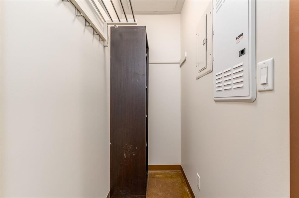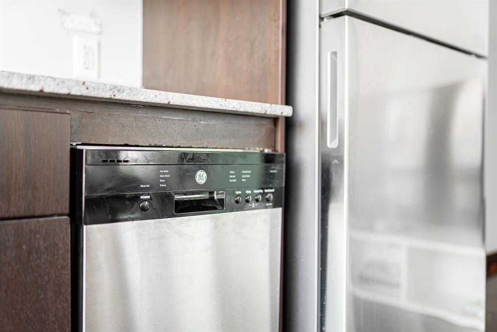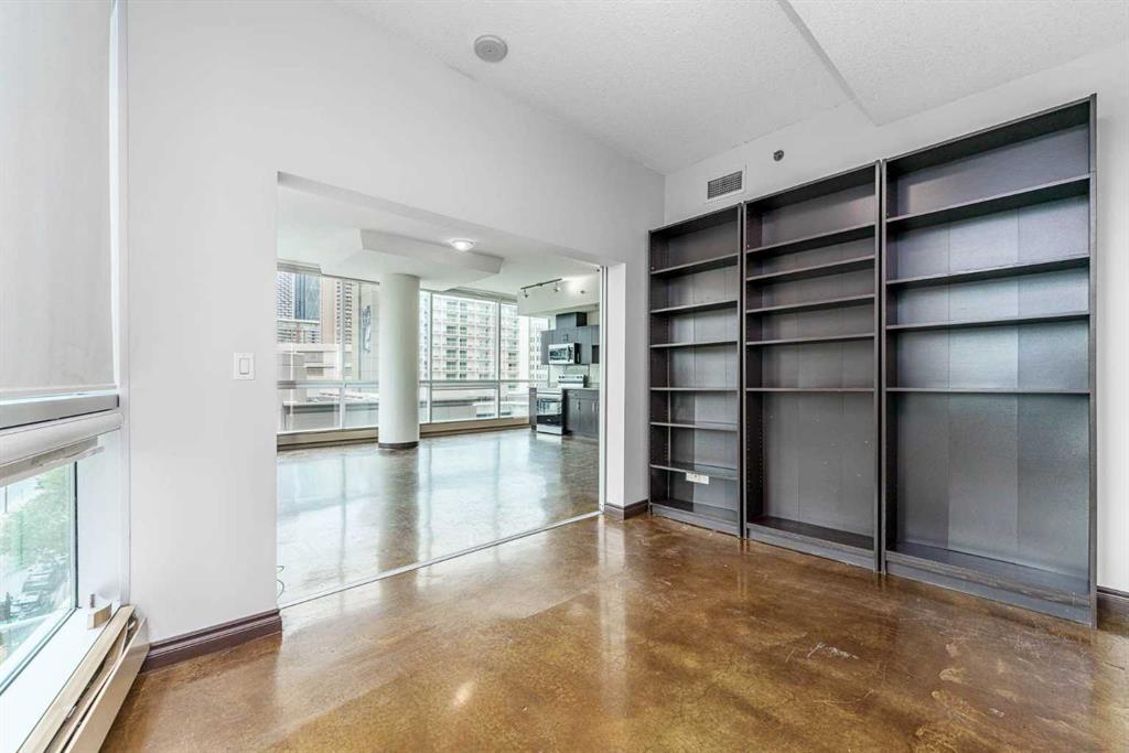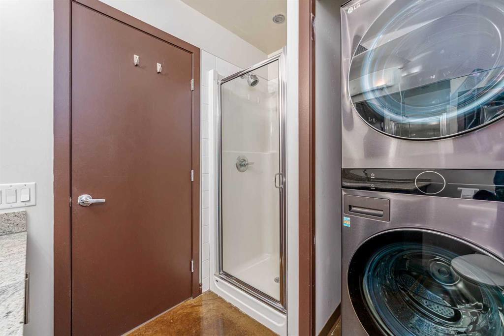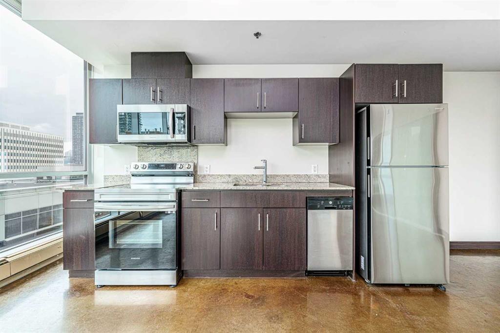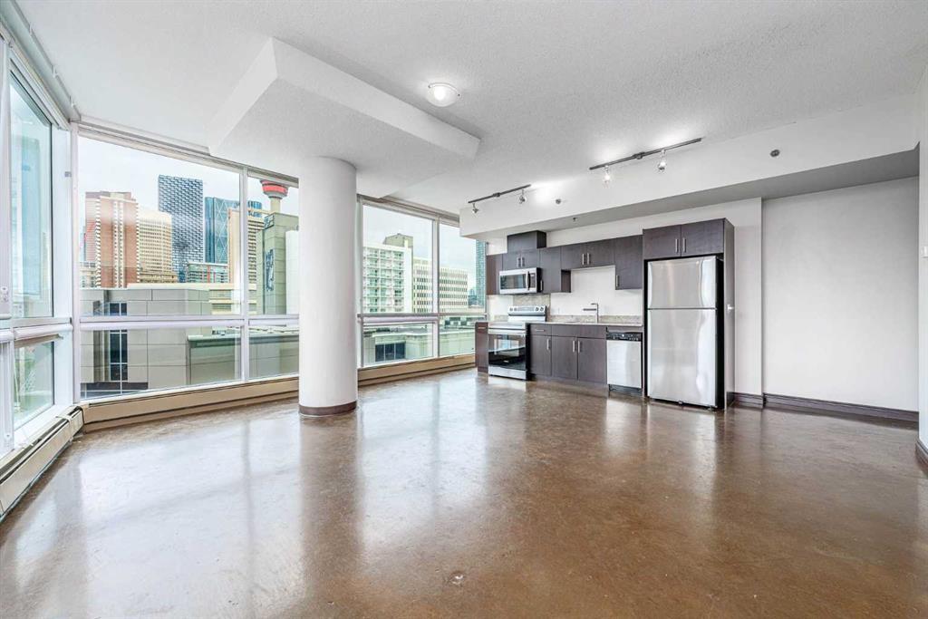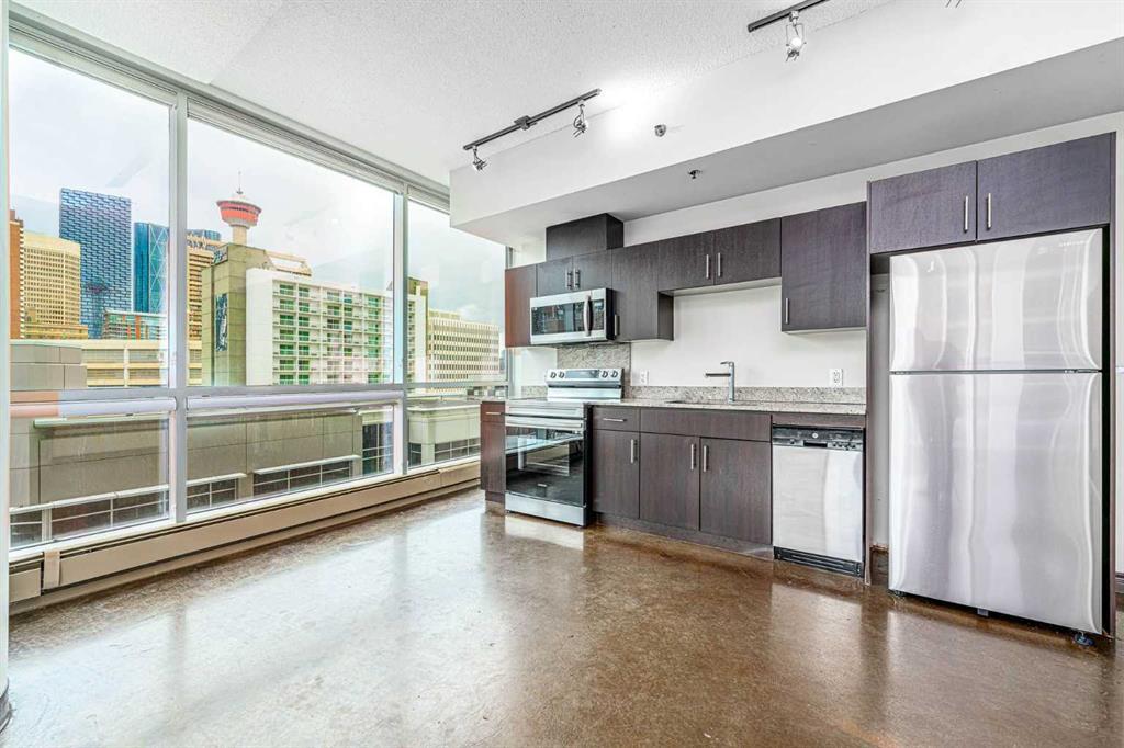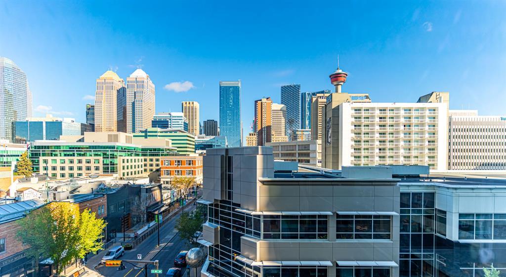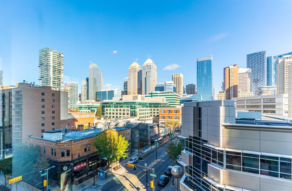 *HOT NEW PRICE * The perfect complement of modern inner-city lifestyle and class. This 5th-floor gem offers a large corner layout with floor-to-ceiling windows and stunning panoramic views of the downtown. The open concept layout has a massive living room, 3 pc bath + in-suite laundry with newer machines and features newer paint and polished concrete floors throughout. The efficient kitchen has a new stainless-steel fridge, stove and microwave( new pics to come ) dark cabinets, and granite countertops. The primary bedroom is a good size with high ceilings, his/her closets, and a 4 pc ensuite bathroom. The 2nd bedroom or flex room could make a great home office with its nice size and useful built-in storage. Enjoy your summer nights with the central AC, a cool drink on the balcony, and BBQ on the built-in Gas line. The location is the true prize being walking distance to award-winning bars, restaurants, coffee shops, and Calgary’s downtown core. Park your car in the underground parking, store your bike in the bike storage, and build some community at the 4th-floor terrace while meeting other condo owners/residents. A great fit for the young professional, couple or even the savvy investor as the condo board is friendly to the Air/B and B rental structure. (id:22211)
