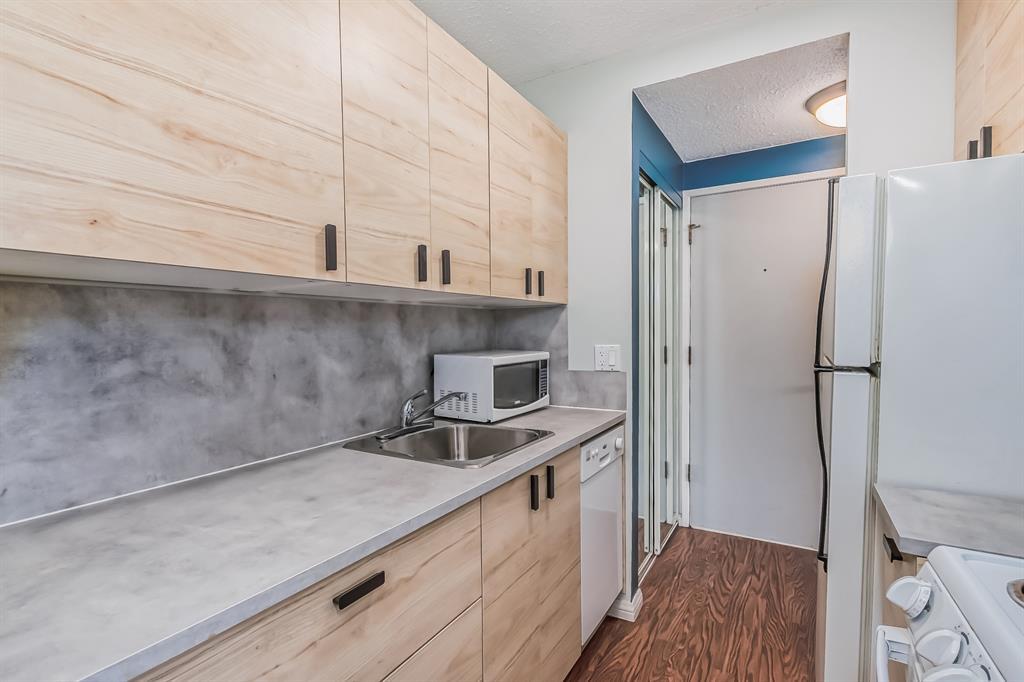 This bright an sunny south-facing unit is the perfect starter home or investment property. The spacious bedroom has a large window and tons of natural light, huge double closets with built in shelving and enough space for a king sized bed. The galley kitchen has been recently updated with new light wood cabinetry. The spacious living room has large windows that look out to the serene park view. This end unit has no neighbors on either side and laundry is conveniently located right next door. Located in the vibrant inner city community of Hillhurst, backing on to the community center complete with tennis courts, soccer pitch and a baseball diamond. Steps from Riley Park, Safeway, Hayden Block, and all of the specialty shopping and restaurants of Kensington. Walking distance to SAIT, the downtown core and the LRT Station. Low monthly condo fees. Contact your agent to view today! (id:22211)
