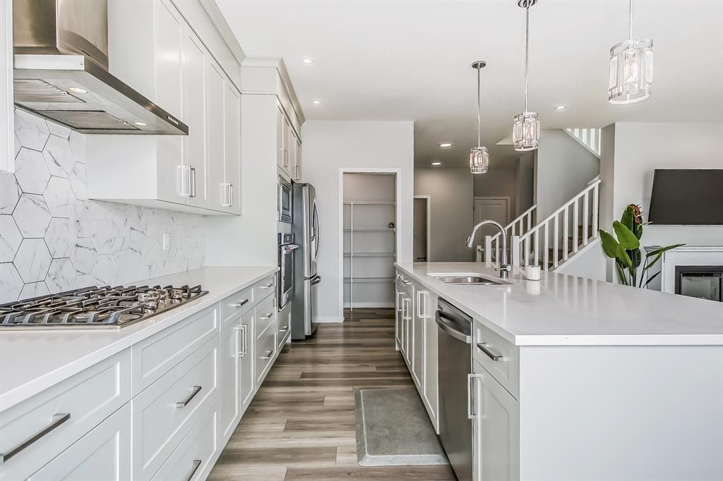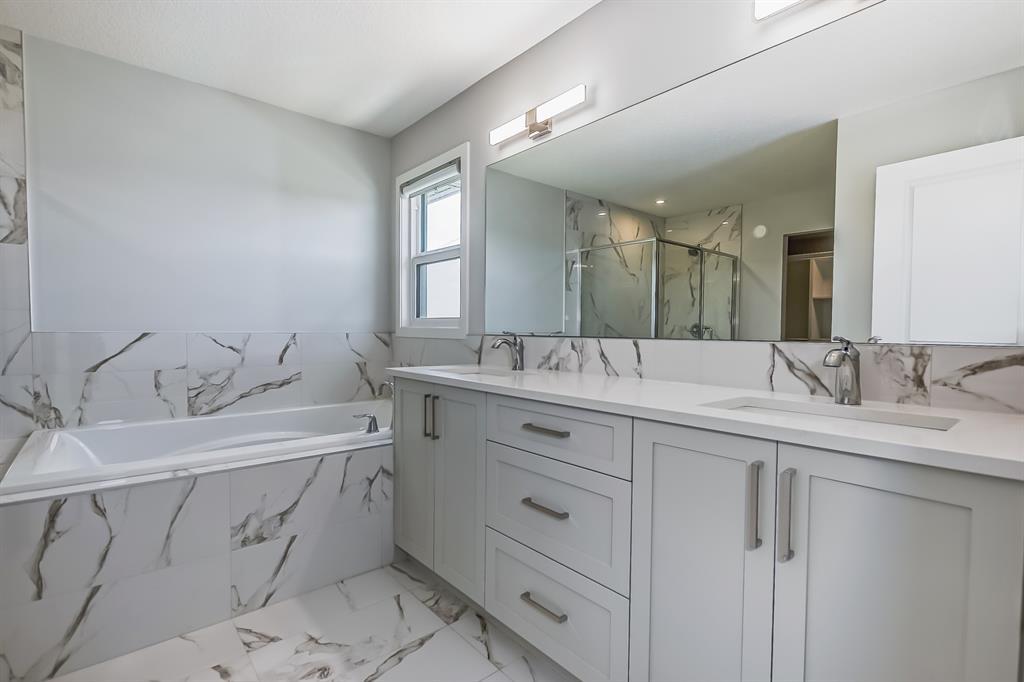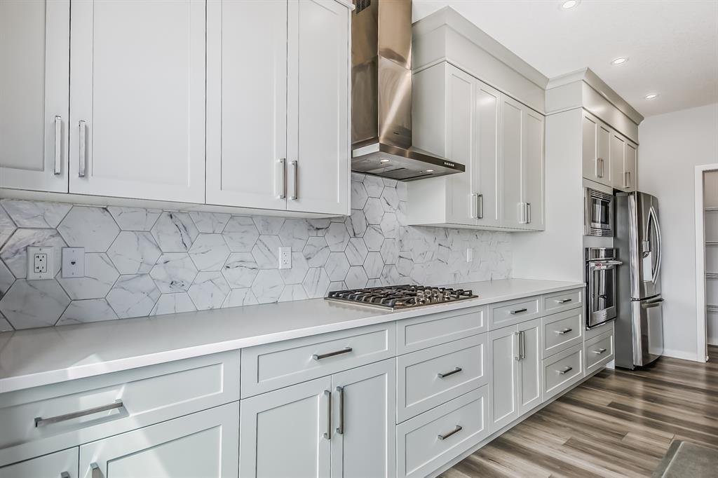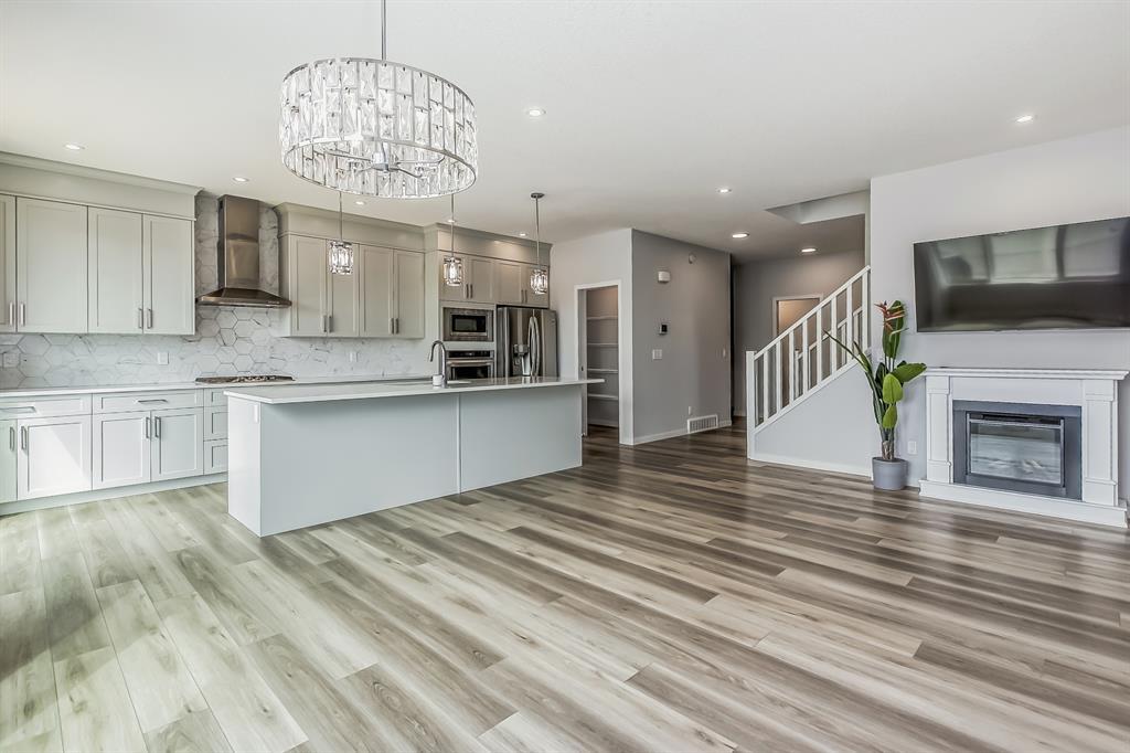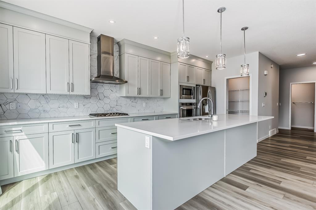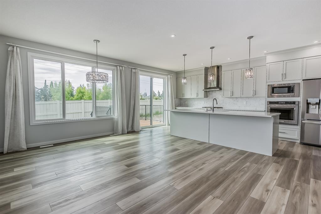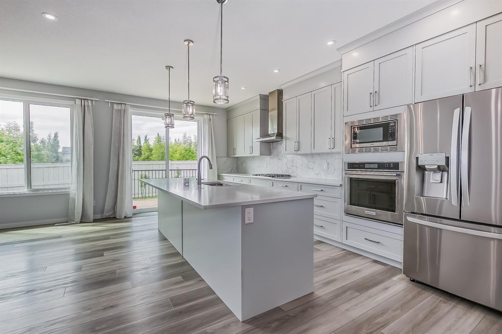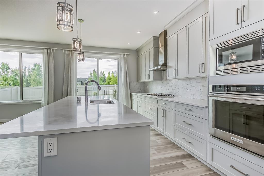 Built in 2022 ||OVER 2150 SQFT || NEW HOME WARRANTY ||fully developed basement with 9’ ceiling||South face Yard|| Triple panel Glass|| Immediate Possession|| Open house 3-5PM June 10 and 12-2PM June 11|| This beautiful upgraded home is located in the highly sought-after community West Springs, built by Award winning builder Cedarglen. From the moment you step into the large foyer, you’ll appreciate the open floor plan. The 9’ ceilings, oversized, south exposure windows bring in an abundance of natural light flowing through the main floor. Chef inspired kitchen delivers a decent size walk in pantry, oversized island & an abundance of cabinets/drawers, quartz counters, upgraded SS appliances including gas range, chimney hood-fan, built in microwave & wall oven & water/ice fridge. The open-concept living room, and dinning space continue the home’s spacious atmosphere, a sliding door connects to back yard. The luxurious primary suite has a 5 piece en-suite & great walk in closet. There is also a central bonus room separating the bedrooms.Two secondary bedrooms can accommodate large families, with a modern 5-pc bathroom and upper laundry room easily accessible from each. Downstairs, the spacious basement is upgraded to 9’ ceiling with Engineering hardwood flooring equipped with a large recreation area, a 4th bedroom, and a full 4-pc bathroom w/ tub/shower combo! A good size deck is big enough for a BBQ and complete dining set, while the lower exposed aggregate patio is the perfect outdoor lounge spot. 5minutes to West Spring schools , French International school, St Joan of Arc school, community walking path, play ground, business plaza, Only 10 min to the LRT 69th st station, Rec Centre & library, Ernest Manning high school or Rundle college. This incredible, contemporary family home won’t be available for long; come see it for yourself today! (id:22211)