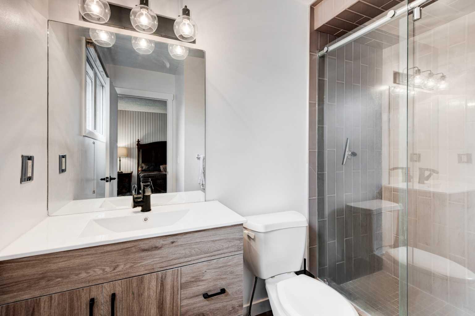 Situated on a beautiful tree-lined street in the highly sought-after inner-city neighborhood of Capitol Hill, this classic two-story home offers a perfect blend of charm and modern updates. Featuring a sunny south-facing backyard and extensive renovations, this 3-bedroom, 3-bathroom home is ideal for a young family or couple. You’re welcomed by lovely landscaping and a charming front porch that leads into a bright, spacious living room with large windows, built-in shelving, and a cozy fireplace. The brand-new kitchen boasts stainless steel appliances, quartz countertops, and all-new cabinetry, flowing into a sunlit dining area with south-facing windows. A rear door opens to a sunny deck and a low-maintenance backyard, leading to an oversized, heated, and insulated double garage with plenty of storage. Upstairs, the large primary bedroom features a beautifully renovated 3-piece ensuite with a glass tile shower and a quaint sunroom—ideal as a home office or reading nook. Two more bedrooms and a 4-piece bath complete the upper level. The fully finished basement includes a spacious rec room, laundry area, and generous storage. Renovations include all new paint, flooring, bathroom vanities, a completely new kitchen, basement development, and updated landscaping, to name only the highlights (2025). Additional upgrades include a new roof (2024), high-efficiency furnace (2016), and hot water tank (2021). With close proximity to schools, SAIT, U of C, North Hill shopping, Confederation Park, and just minutes to downtown, this home offers incredible value in one of Calgary’s premier neighborhoods.