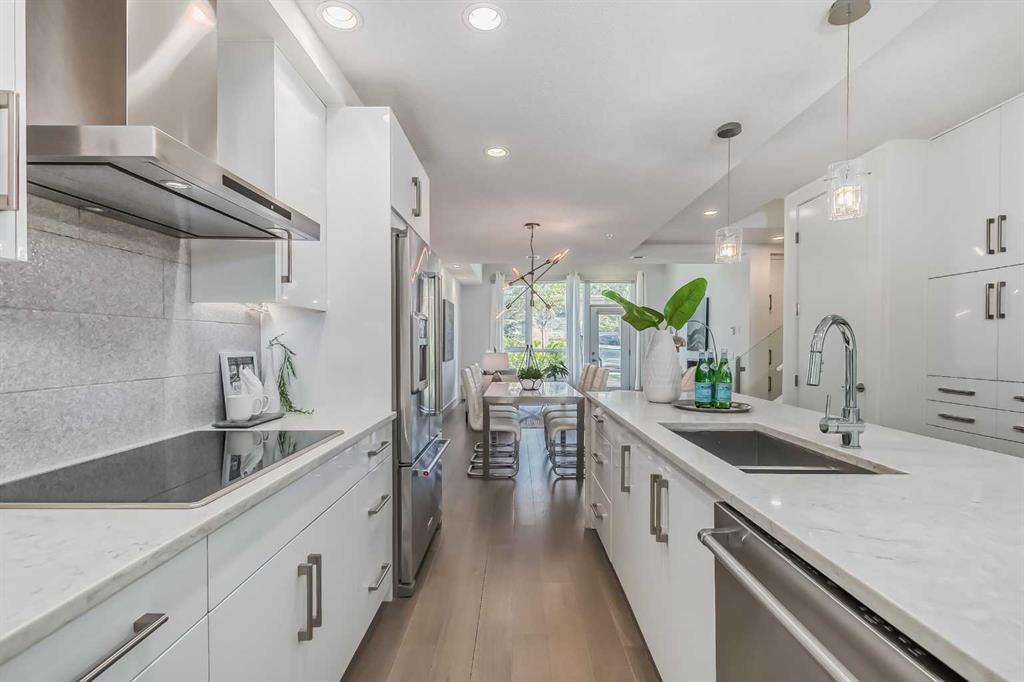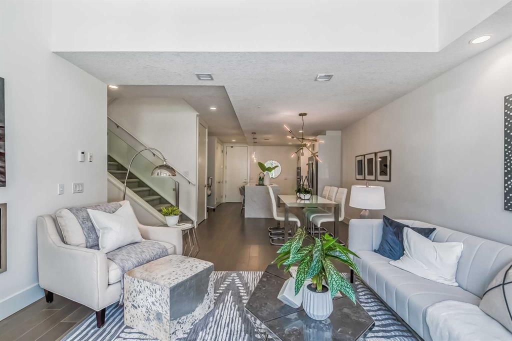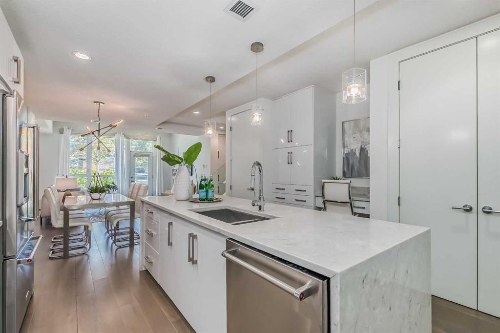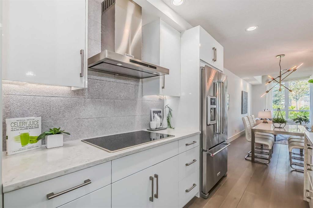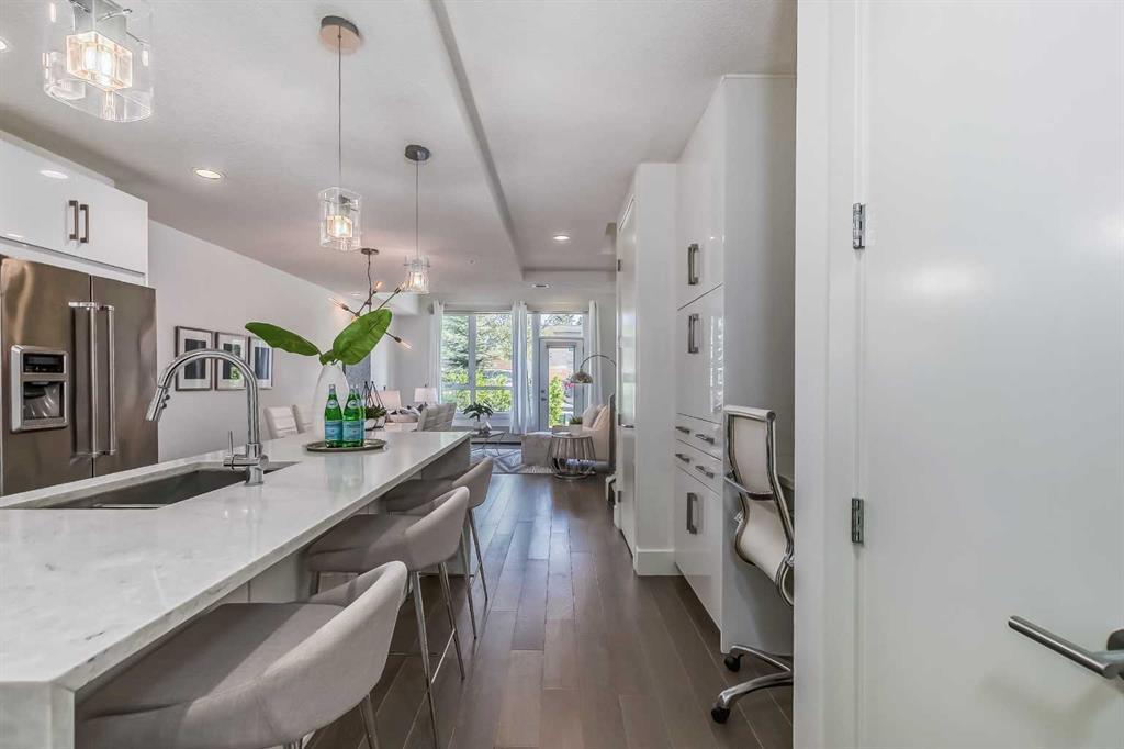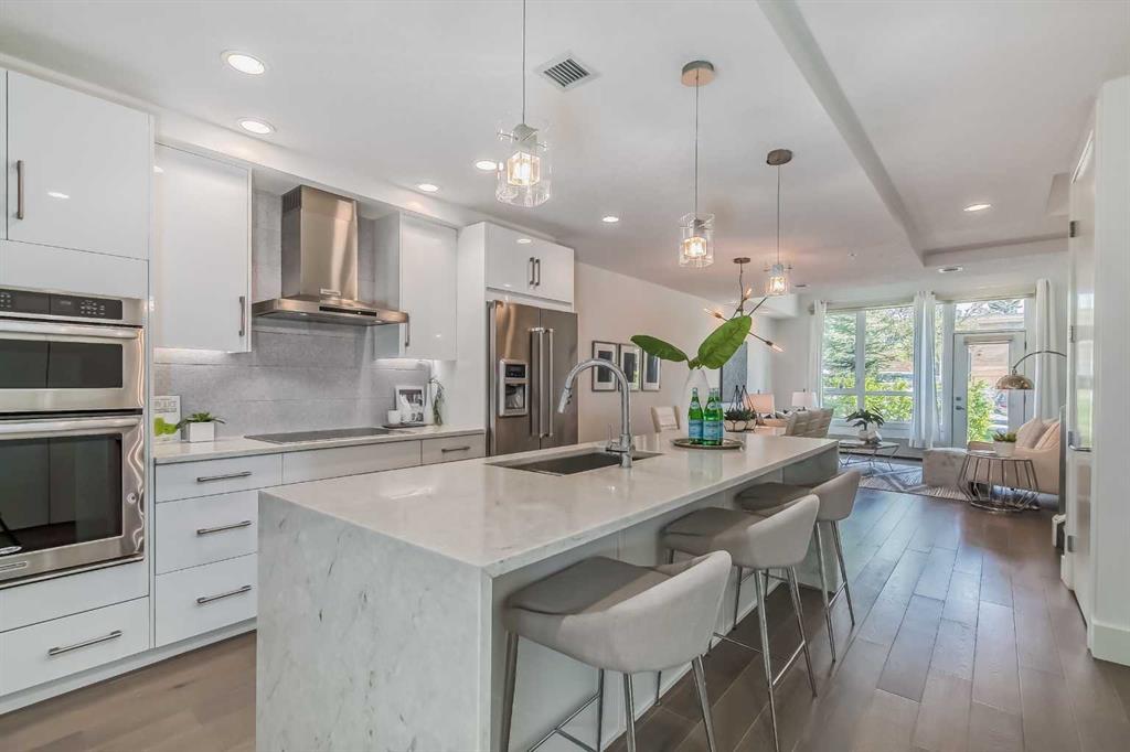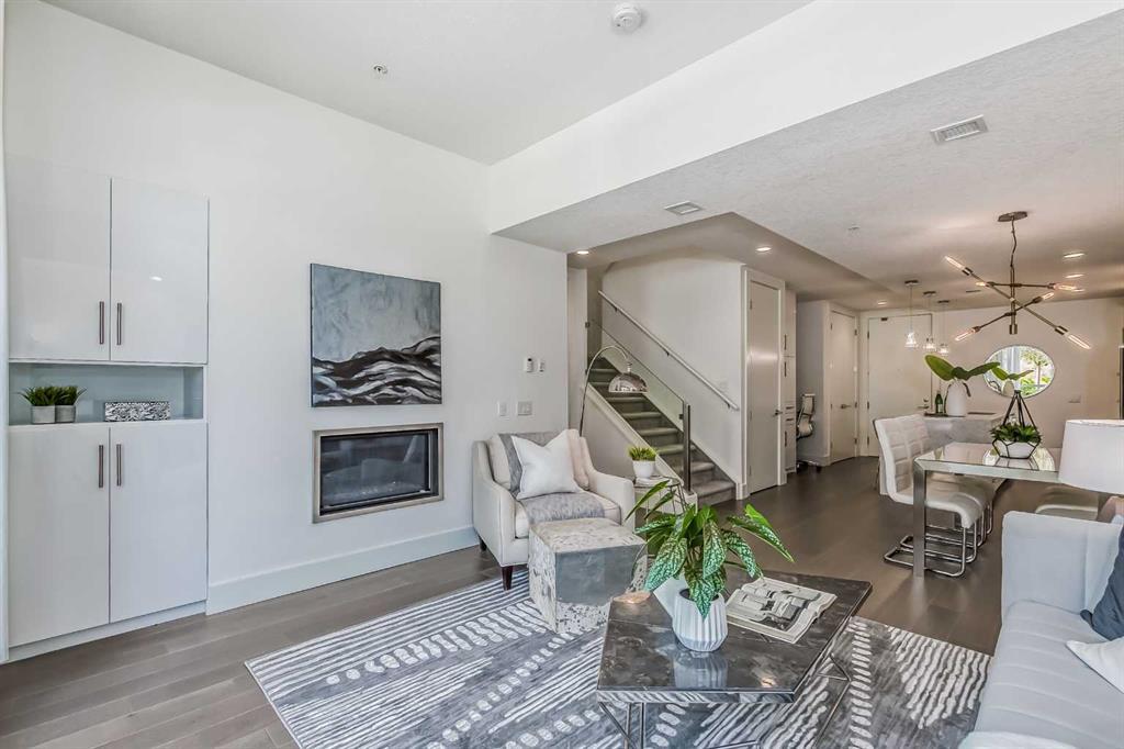 Welcome to ALEX Courtyard Lofts’ in South Calgary! This exclusive community is perfect for those looking for that low maintenance lifestyle. Perfect for ENTERTAINING, this 2 storey END UNIT is the LARGEST in the complex! METICULOUSLY styled and cared for, this ART DECO inspired unit was designed by Paul Lavoie! HIGH END finishings not only include gourmet STAINLESS APPLIANCES (hello induction stove and high end wall oven!) and QUARTZ countertops, but CUSTOM tile work and gloss white cabinetry. Extra large loft-like windows allow plenty of NATURAL LIGHT to flood the space. With THREE BEDROOMS, upstairs laundry, walk in closets and VIEWS OF DOWNTOWN, you also have both in-suite and private STORAGE! A large PATIO with gas hookup and private underground parking complete the package. Restaurants, shopping, transit, parks, sports, schools, entertainment - all at your fingertips! Live, work and play in SOUTH CALGARY! WELCOME HOME! (id:22211)