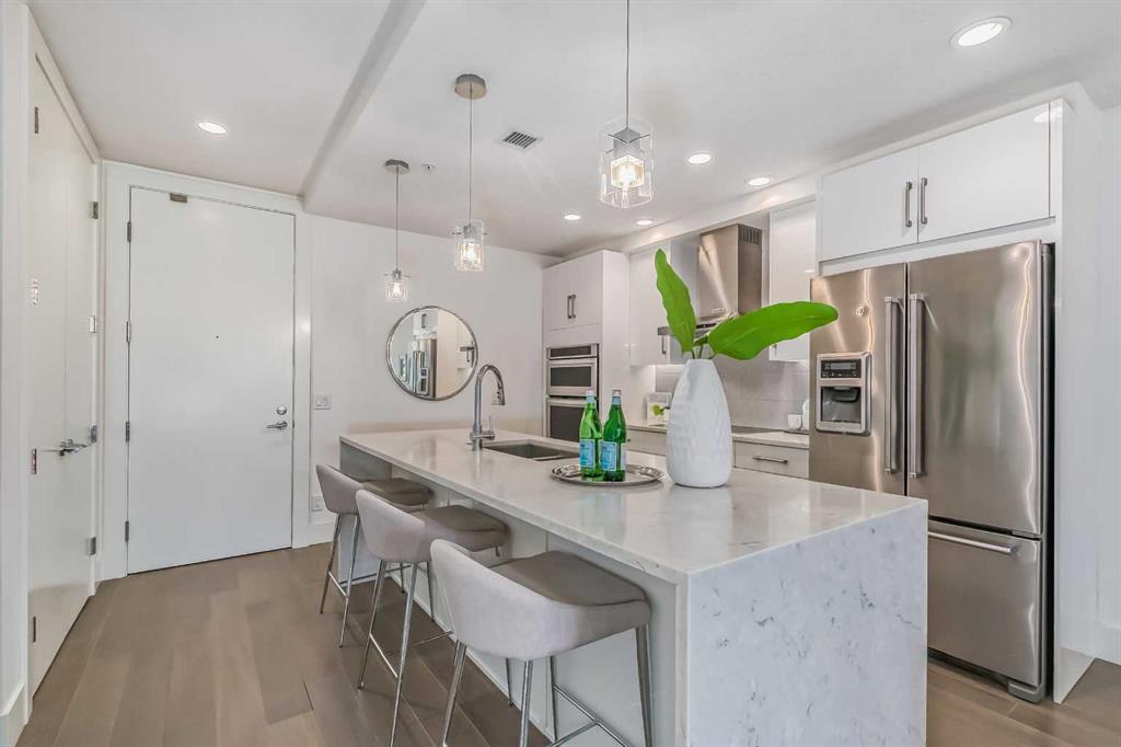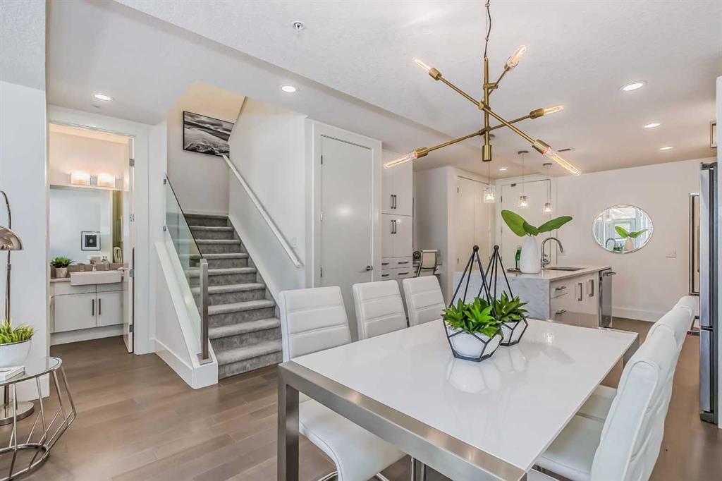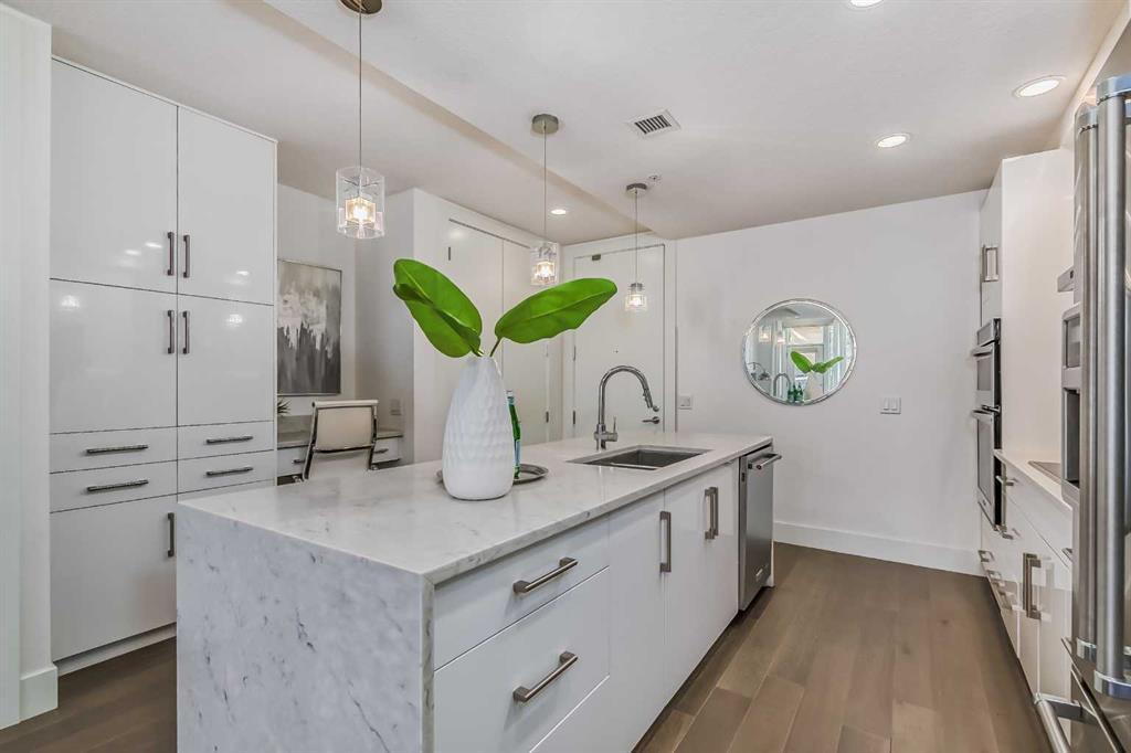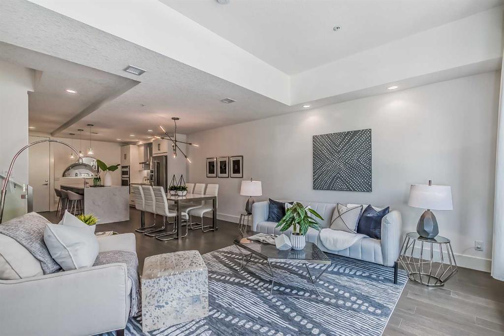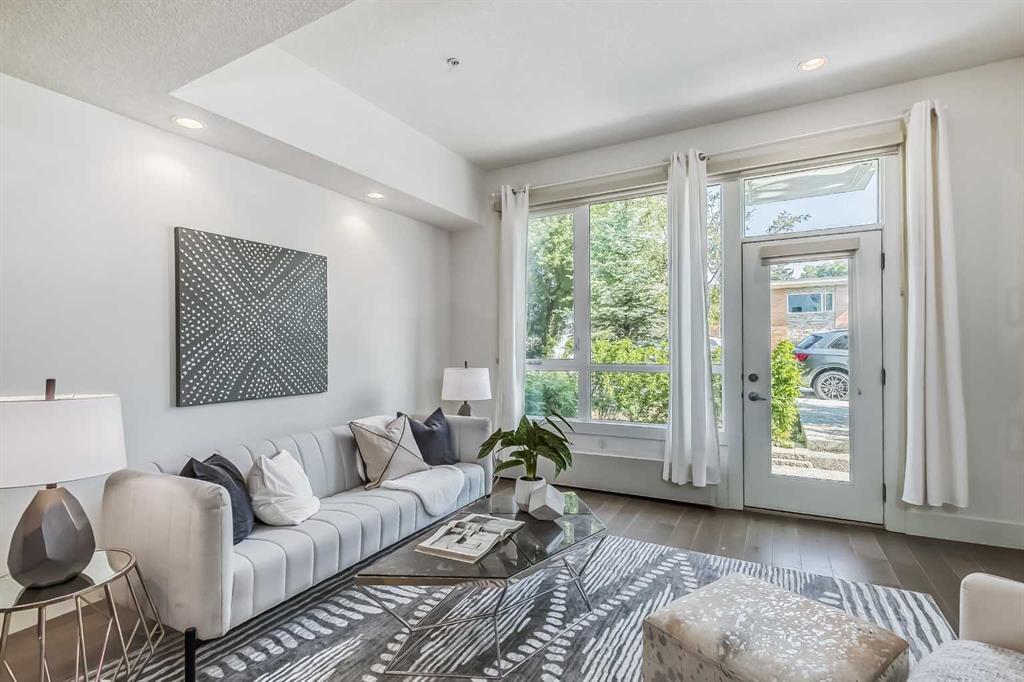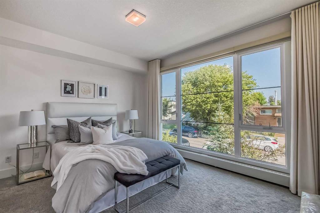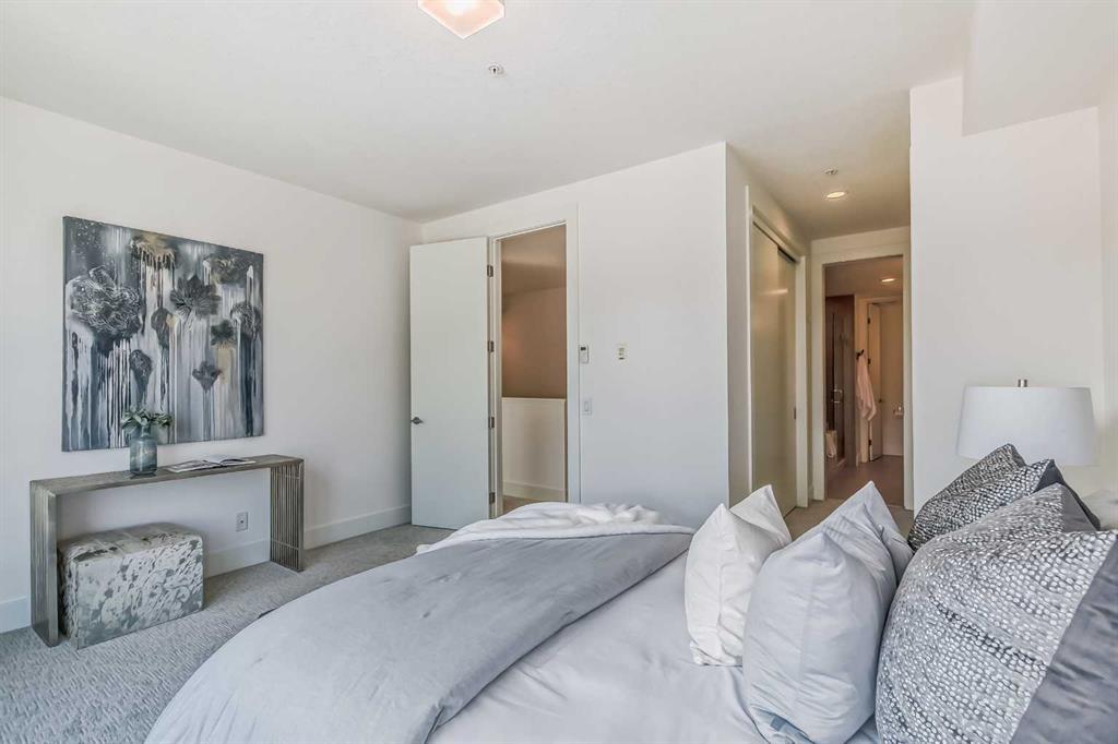 Welcome to ALEX Courtyard Lofts’ in South Calgary! This exclusive community is perfect for those looking for that low maintenance lifestyle. Perfect for ENTERTAINING, this 2 storey END UNIT is the LARGEST in the complex! METICULOUSLY styled and cared for, this ART DECO inspired unit was designed by Paul Lavoie! HIGH END finishings not only include gourmet STAINLESS APPLIANCES (hello induction stove and high end wall oven!) and QUARTZ countertops, but CUSTOM tile work and gloss white cabinetry. Extra large loft-like windows allow plenty of NATURAL LIGHT to flood the space. With THREE BEDROOMS, upstairs laundry, walk in closets and VIEWS OF DOWNTOWN, you also have both in-suite and private STORAGE! A large PATIO with gas hookup and private underground parking complete the package. Restaurants, shopping, transit, parks, sports, schools, entertainment - all at your fingertips! Live, work and play in SOUTH CALGARY! WELCOME HOME! (id:22211)