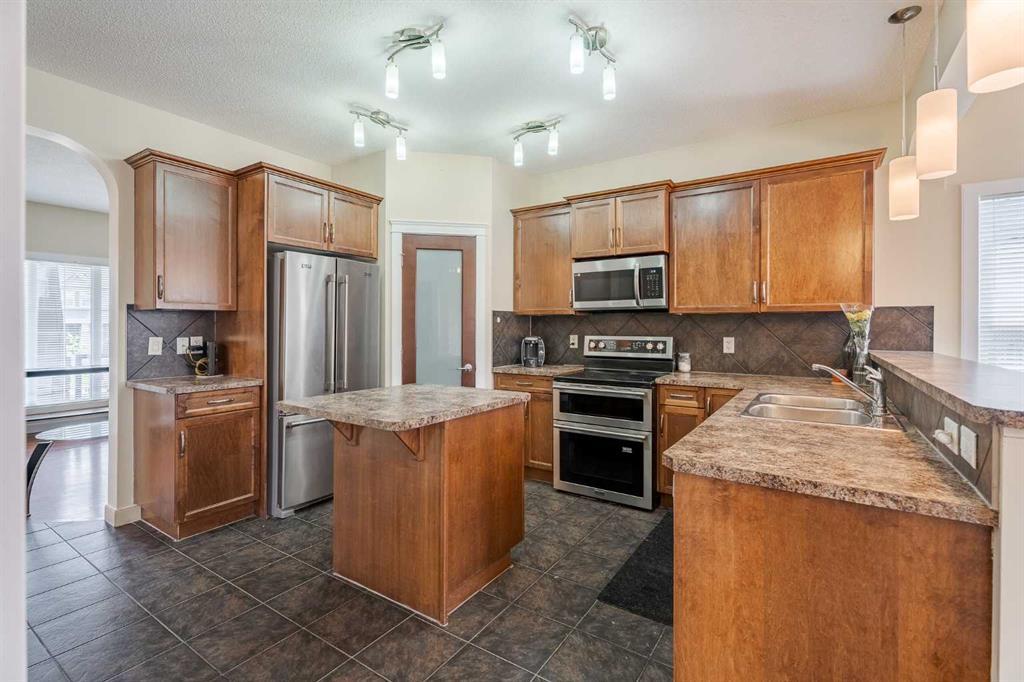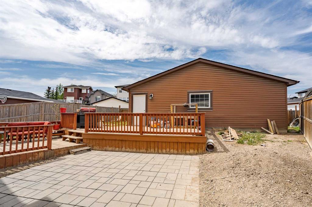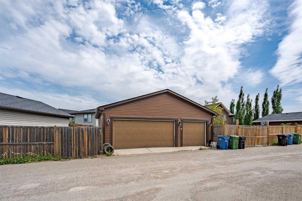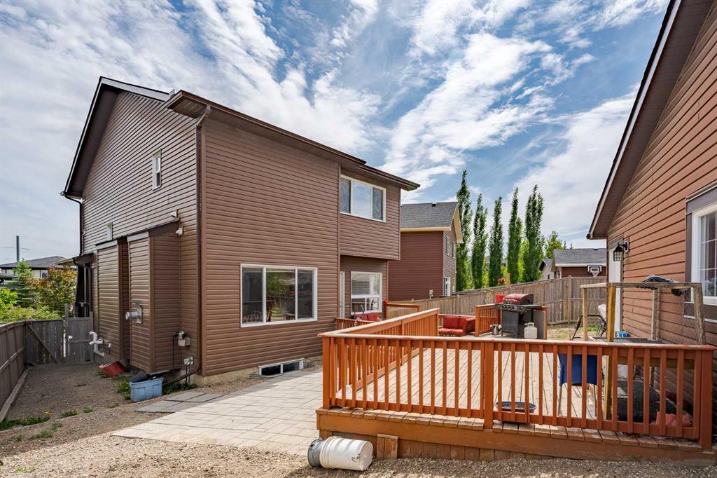 TRIPLE GARAGE + Rear Lane, Sunny spacious pie lot, all situated on a quiet cul-de-sac and only steps from a playground you will find your new home. The charming 2 storey home sits on a MASSIVE PIE shaped lot has a 2-tiered deck, stone patio and gas line for your BBQ. Summer nights have never been so enjoyable! With a little time and landscaping this could be transformed into a dream yard back yard oasis. Have you had an oversized garage on your wish list forever? Then your wait is over! Here you have a TRIPLE CAR garage plus TRAILER parking and it’s even on a lane. An ideal situation for any car enthusiast or growing family needing extra parking and a space for their trailer without paying for costly storage. Larger than a lot of houses in the area this home features over 2400 square feet of professionally developed living space. The idyllic front porch welcomes you from the street. The main floor has a bright front living room as well as a comfortable family room giving your family lots of room to stretch out. This is a perfect set up for all families. The family room is located off the large kitchen and showcases a GAS FIREPLACE and hardwood floors. The generous kitchen and dining area can accommodate even the largest of gatherings with loads of cabinets, ample counter space, a corner pantry, and new STAINLESS STEEL APPLIANCES. You will be hosting the next event at your house as soon as you move in! Upstairs there are two spacious bedrooms plus a tremendous primary suite. The primary suite has a DREAM WALK IN CLOSET complete with a sunny window and double glass doors. You also have a private laundry room and 3 piece ensuite. The professionally developed basement has a 4th bedroom, full bathroom, and large rec room. It is even wired for sound with in ceiling speakers. This home has been professionally painted and is ready to move into. Rarely do you find a home offering so much space, a massive yard, and a triple garage in a wonderful neighborhood. Evanston is designed for family living with ponds, parks, pathways, schools, shopping, and restaurants. Make this home yours today! (id:22211)