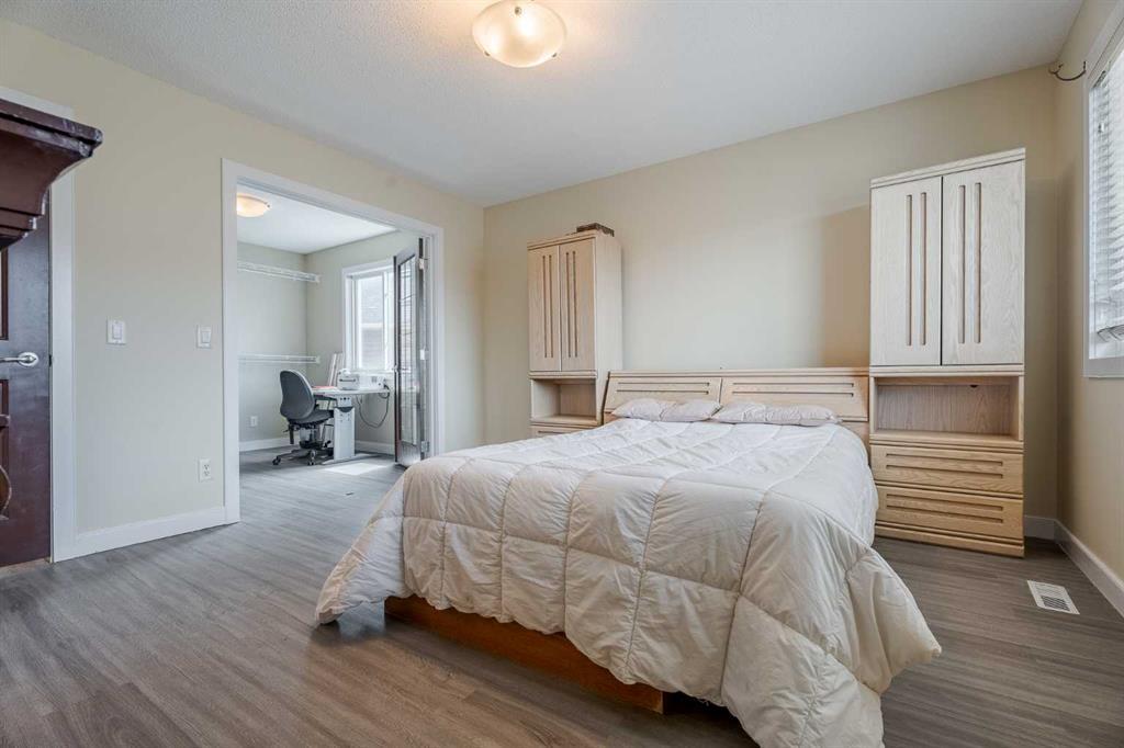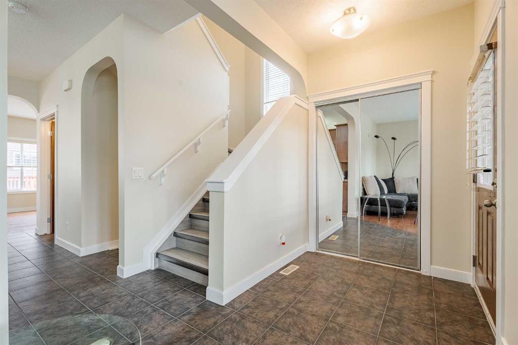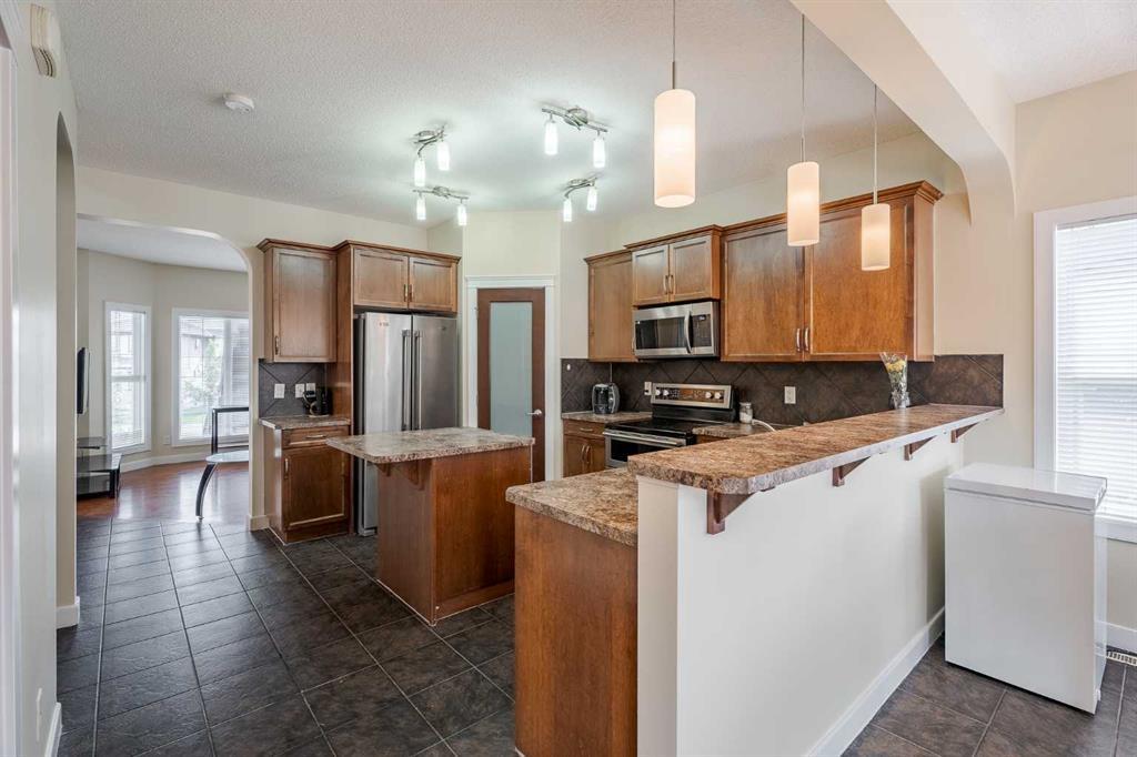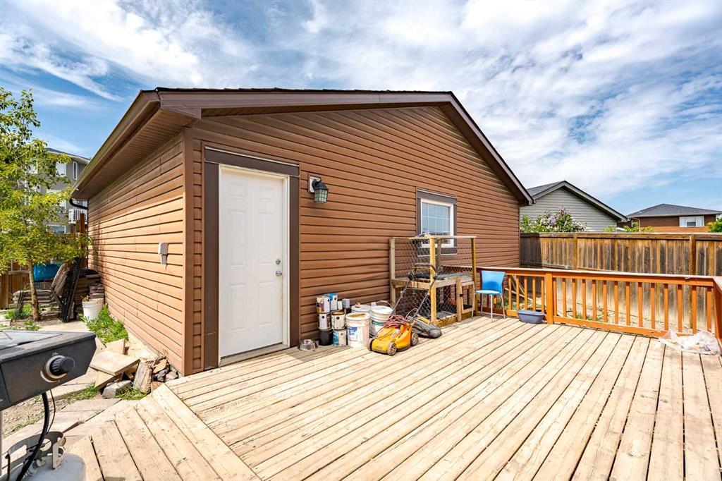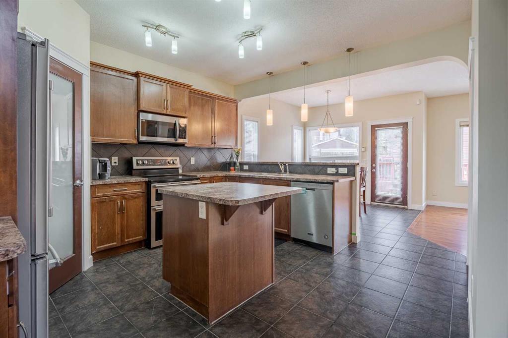 TRIPLE GARAGE + Rear Lane, Sunny spacious pie lot, all situated on a quiet cul-de-sac and only steps from a playground you will find your new home. The charming 2 storey home sits on a MASSIVE PIE shaped lot has a 2-tiered deck, stone patio and gas line for your BBQ. Summer nights have never been so enjoyable! With a little time and landscaping this could be transformed into a dream yard back yard oasis. Have you had an oversized garage on your wish list forever? Then your wait is over! Here you have a TRIPLE CAR garage plus TRAILER parking and it’s even on a lane. An ideal situation for any car enthusiast or growing family needing extra parking and a space for their trailer without paying for costly storage. Larger than a lot of houses in the area this home features over 2400 square feet of professionally developed living space. The idyllic front porch welcomes you from the street. The main floor has a bright front living room as well as a comfortable family room giving your family lots of room to stretch out. This is a perfect set up for all families. The family room is located off the large kitchen and showcases a GAS FIREPLACE and hardwood floors. The generous kitchen and dining area can accommodate even the largest of gatherings with loads of cabinets, ample counter space, a corner pantry, and new STAINLESS STEEL APPLIANCES. You will be hosting the next event at your house as soon as you move in! Upstairs there are two spacious bedrooms plus a tremendous primary suite. The primary suite has a DREAM WALK IN CLOSET complete with a sunny window and double glass doors. You also have a private laundry room and 3 piece ensuite. The professionally developed basement has a 4th bedroom, full bathroom, and large rec room. It is even wired for sound with in ceiling speakers. This home has been professionally painted and is ready to move into. Rarely do you find a home offering so much space, a massive yard, and a triple garage in a wonderful neighborhood. Evanston is designed for family living with ponds, parks, pathways, schools, shopping, and restaurants. Make this home yours today! (id:22211)