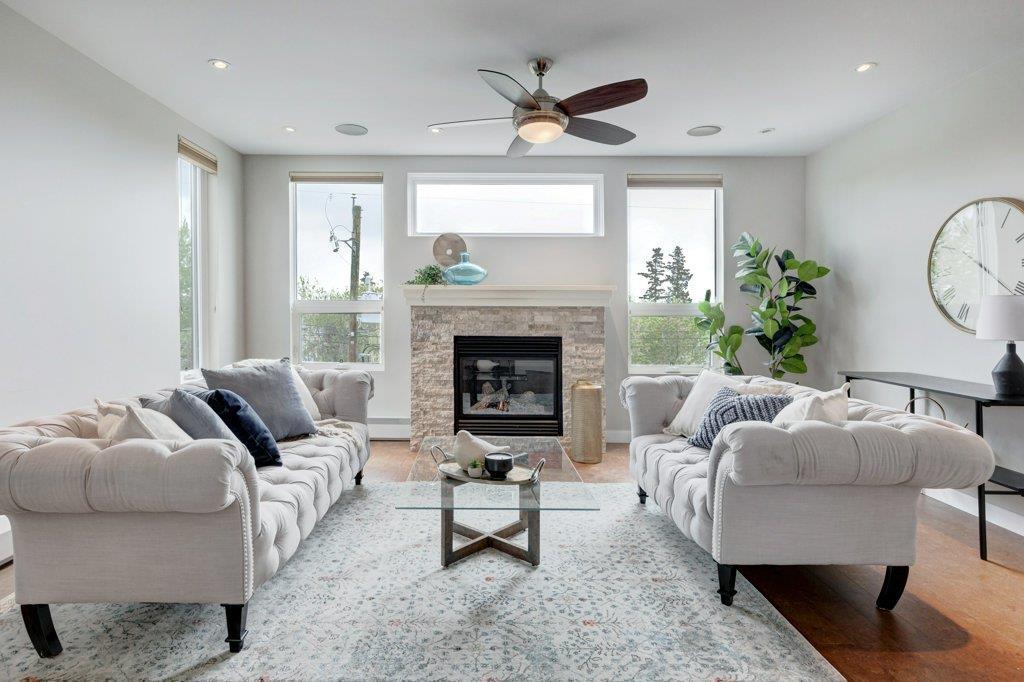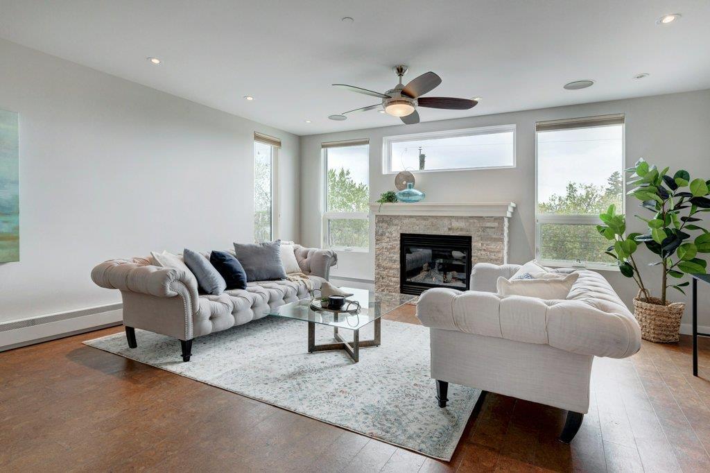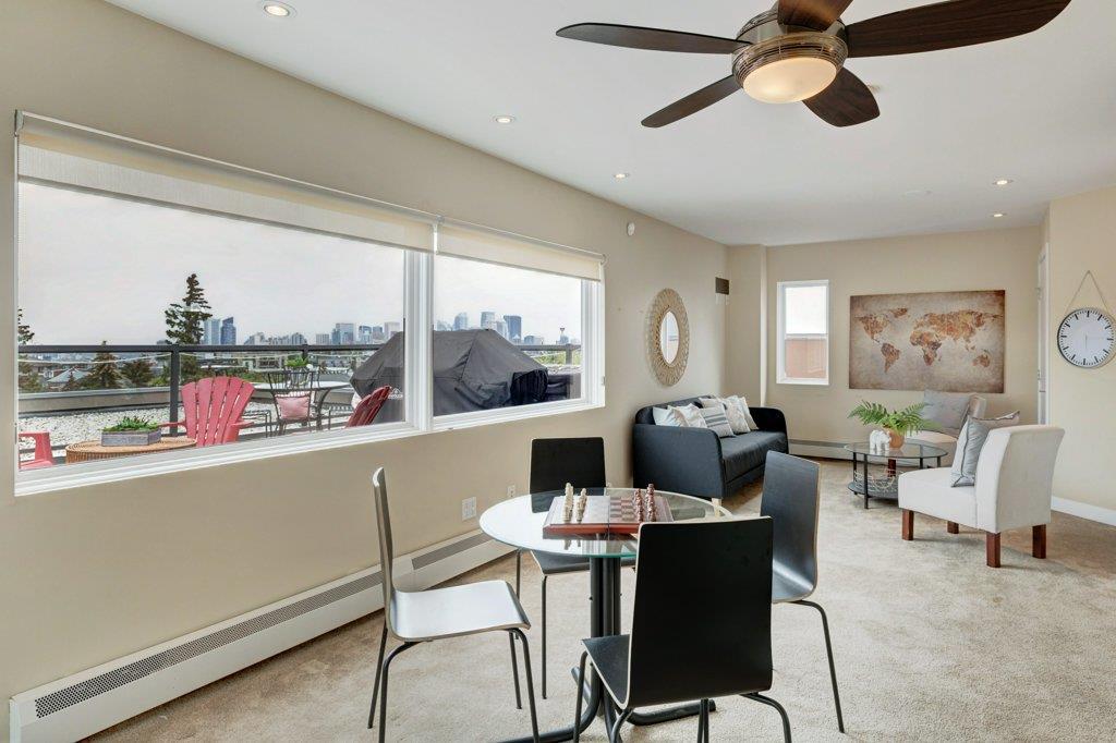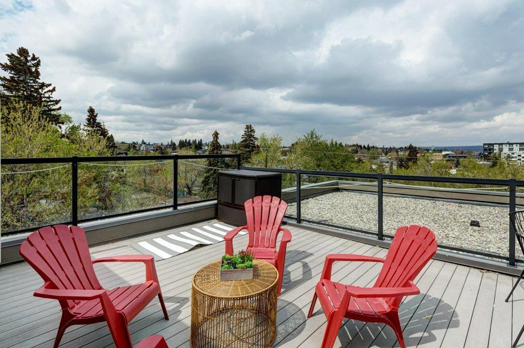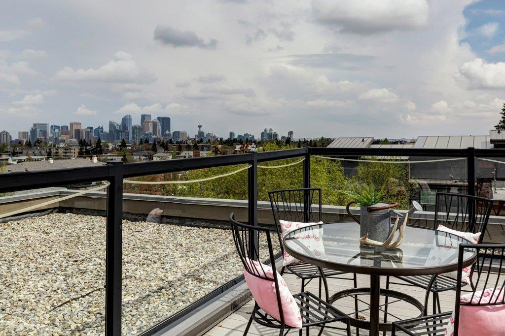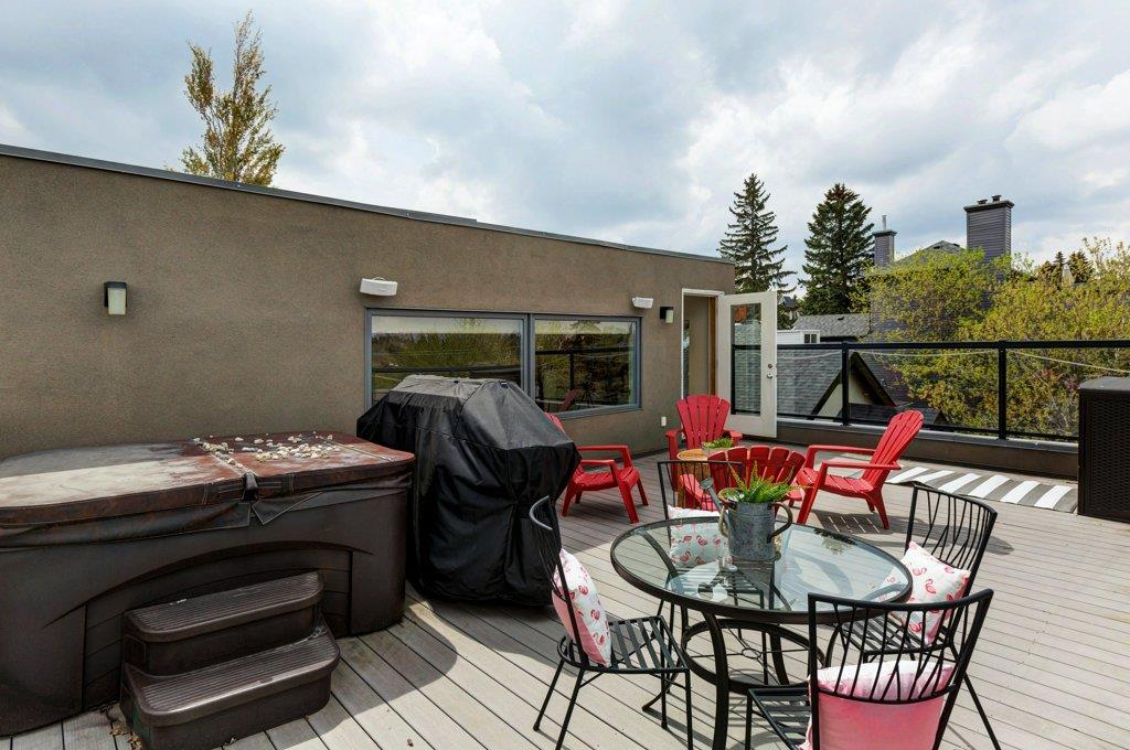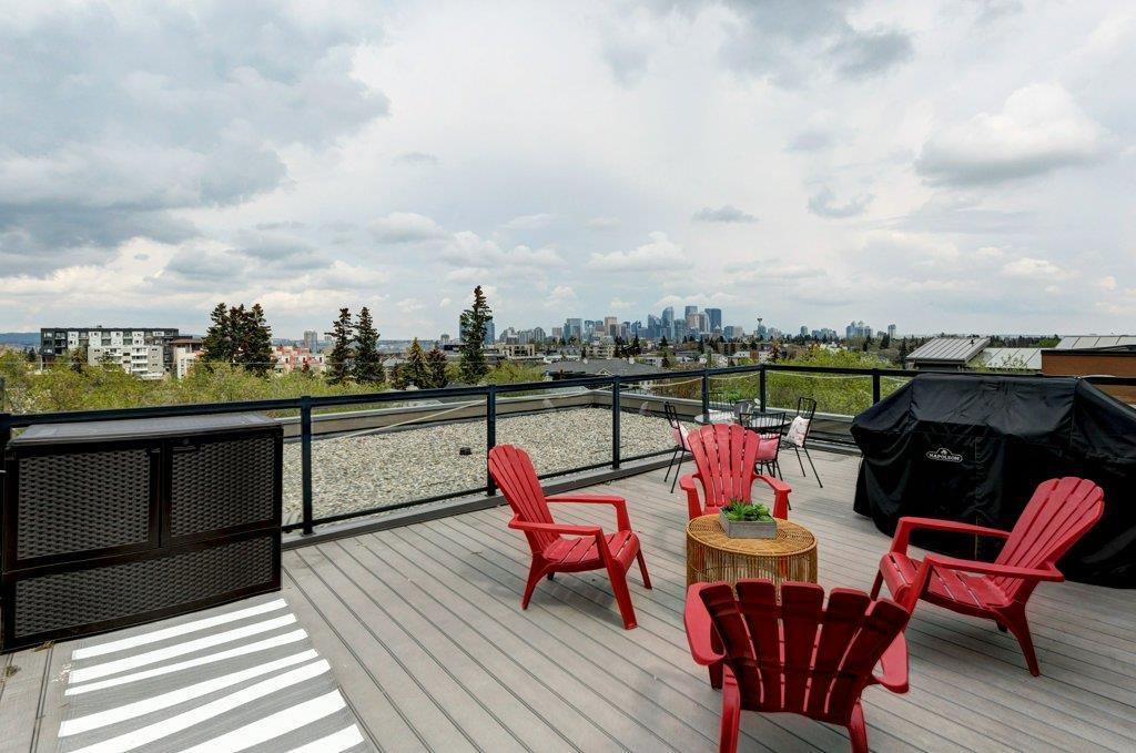 Million Dollar views of the downtown core are awaiting you with this luxurious 2 bedroom, 2 full bath condo boasts 1562 sq ft of open concept living space and is situated in the desirable Marda Loop area. The main floor living area is perfect for entertaining with built in Bose speakers throughout, a large quartz countertop centre island that can easily accommodate seating for 4-5 guests, plus room for a dining table. The spacious living room is a great place to gather around the gas fireplace in the evening hours. The two bedrooms are located on the main floor and are a fantastic size and offer plenty of closet space with custom built ins to maximize storage. The primary ensuite is luxury at its finest, with heated floors, steam shower, a giant air jet tub for two, and even a backlit vanity! The main floor is completed with laundry, several storage closets and a large coat closet. This unit has more storage than any condo you have ever seen! The home was completely renovated in 2014 with new windows, cork flooring, stainless steel appliances, and most recently has had new instant hot water system installed and brand new loft roof! This is the only unit within this 4-plex with a large upper bonus room complete with wet bar, all leading you to the most spectacular spacious roof top deck. Entertain your friends and family with a delicious meal grilled on your high end Weber BBQ. Afterwards, you could all relax in your own hot tub and take in the sweeping unobstructed downtown views. This amazing deck would bring a newfound appreciation to family/friend gatherings and outdoor relaxation, so rare in the inner city! This unit has titled underground heated parking and assigned storage room. Within walking distance of all the shops and services that Marda Loop has to offer! Owner is a licensed Realtor in Alberta. Quick possession available. ** OPEN HOUSE SATURDAY June 10th, 2:00pm-4:00pm and SUNDAY June 11th, 1:00pm-3:00pm ** (id:22211)