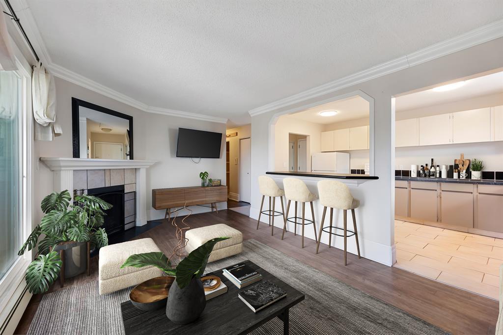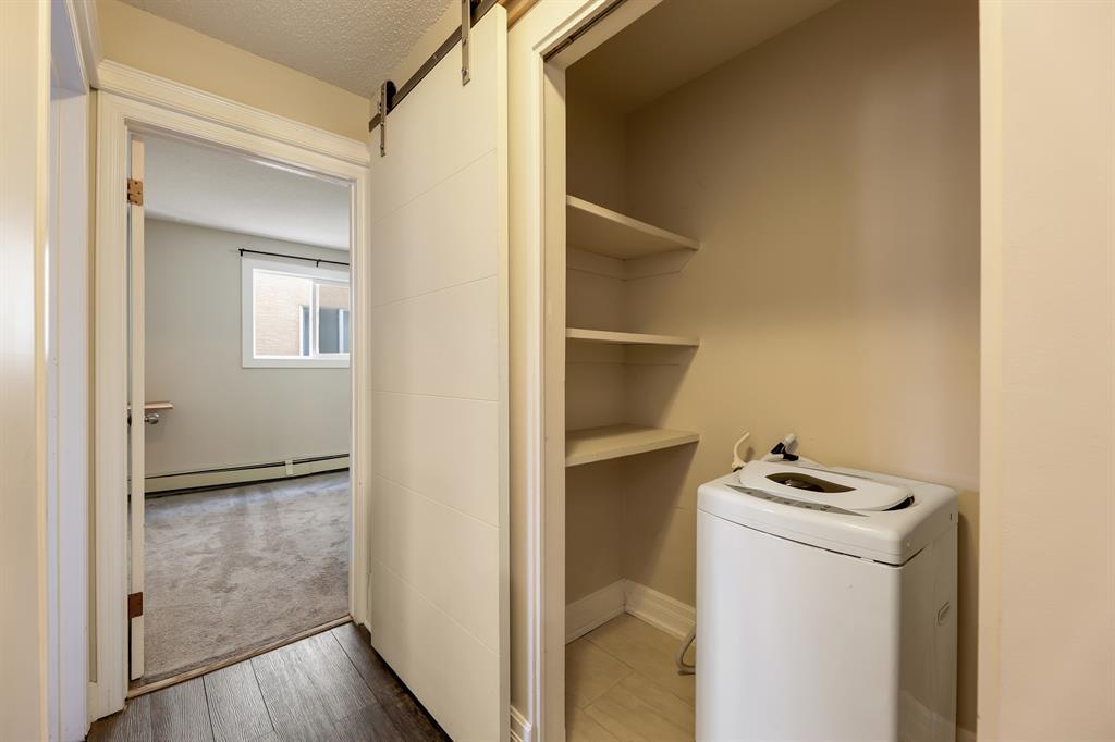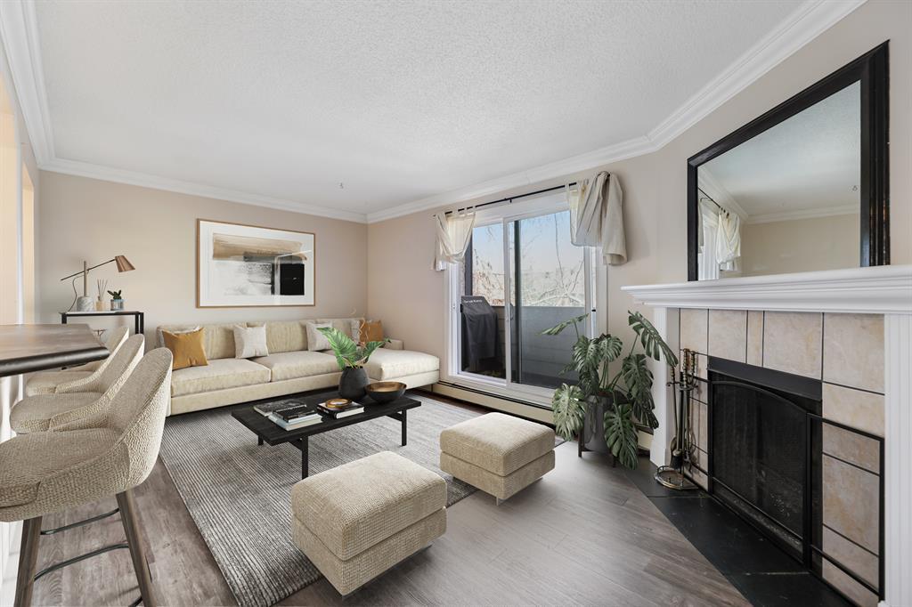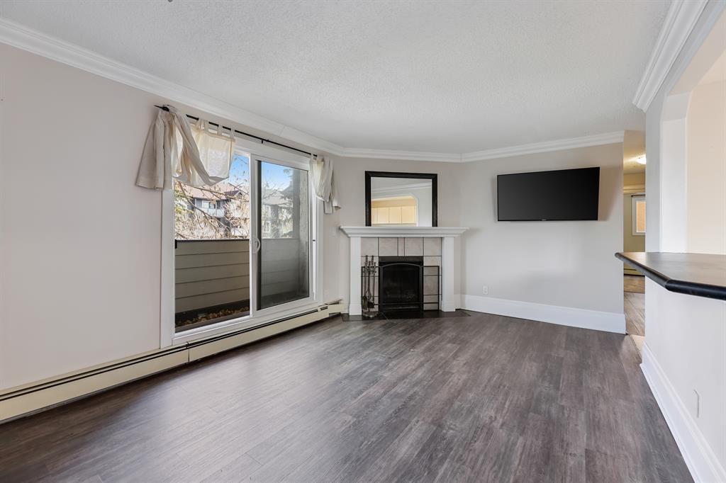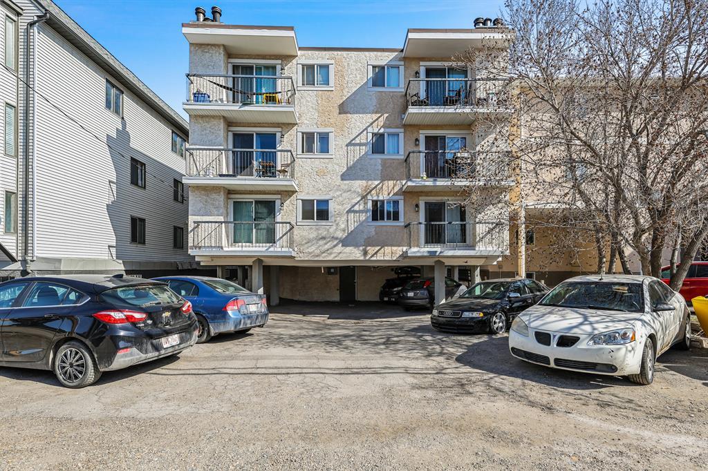This 2 bedroom condo is a great purchase for first timers or investors looking to add to their rental portfolio. Occupying almost 800 sqft, this is an open floor plan that just screams potential! A bright kitchen with lots of counter space, double sink and breakfast bar. Laminate flooring in the living area along with a wood burning fireplace. Step out to the private balcony for some fresh air and to enjoy those summer BBQs. Two ample sized bedrooms along with an impressive walk-in closet in the primary. In-suite storage room along with washing machine with hook ups. There is a space in the 4 piece bathroom to potentially install a euro washer/dryer unit. Newer windows + doors throughout! The unit comes with a designated parking stall out back. You are walking distance to the c-train and mere minutes to all sorts of great amenities such as grocery, coffee shops, restaurants + lounges. Quick possession available. (id:22211)
