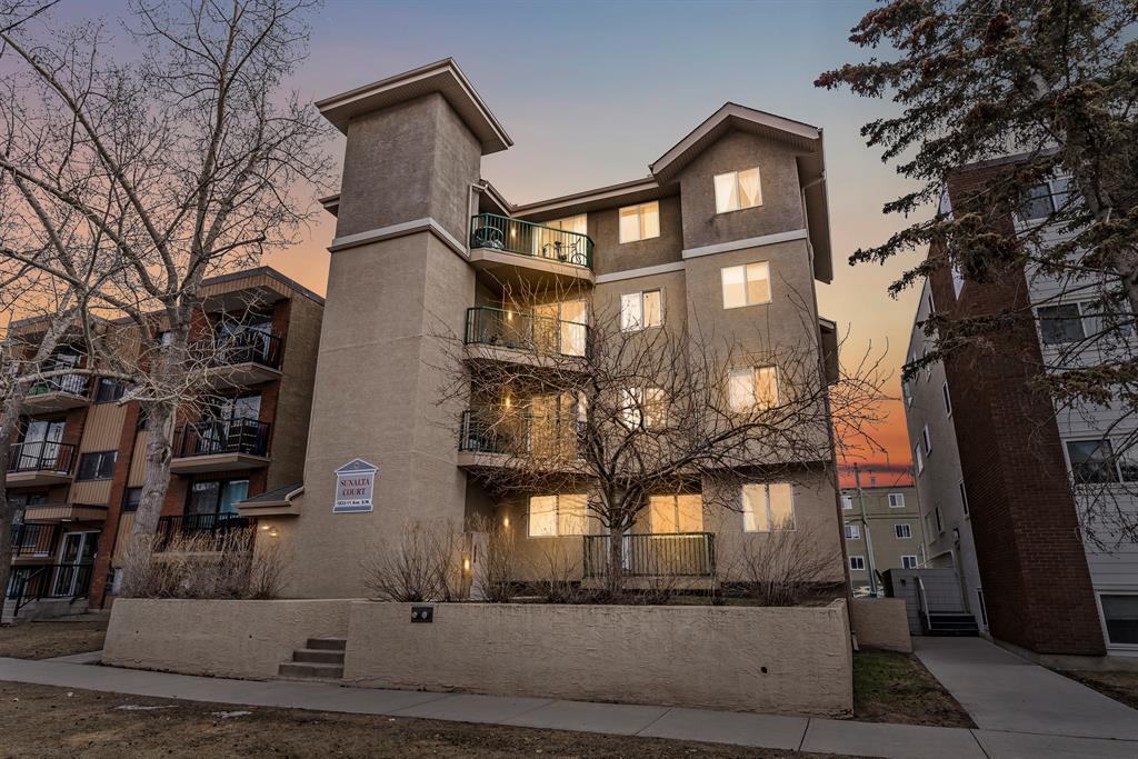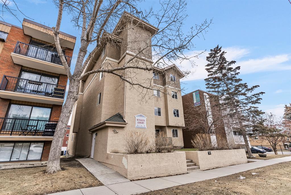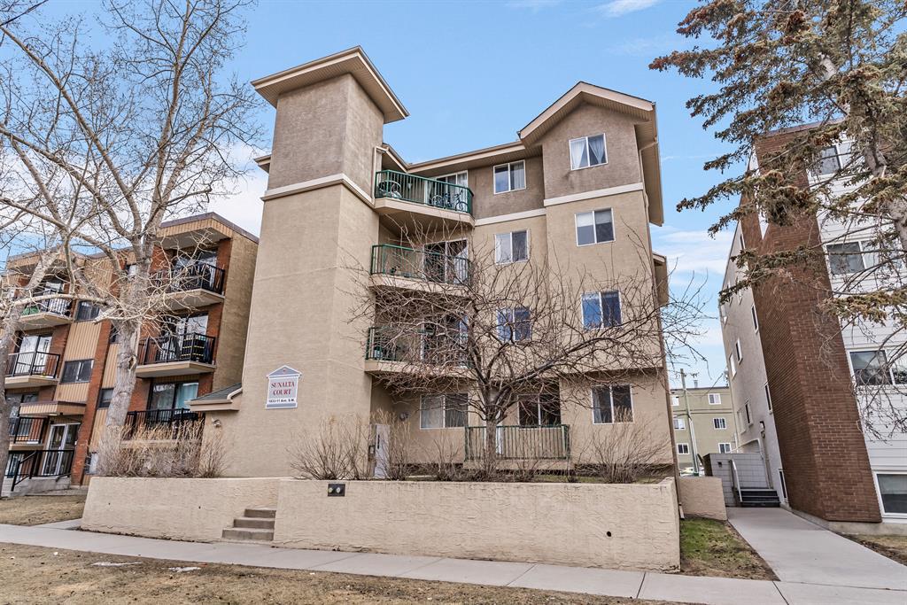 A COZY CONDO CLOSE TO THE BELTLINE, IN THE DESIRABLE NEIGHBOURHOOD OF SUNALTA! 3 BEDROOMS! 2 FULL BATHS! AND UNDERGROUND PARKING! A Great END UNIT that offers close to 1000 SqFt of Quality Living Space. The wider entrance leads to a spacious Living Room with a Fireplace, a separate Dining Area and a Kitchen. There are 3 Bedrooms and 2 Full Baths! The Primary Bedroom has a Walk-in Closet and a 4 Piece En-suite Bathroom.The Living area leads to a decent sized balcony, A GREAT ADDITION TO YOUR UNIT! Laundry room is situated inside the unit for convenience. Overall, a lovely 3 Bedroom Condo that is located close to the Beltline, Downtown, and Bow Trail SW. Perfect for a First Home Buyer! (id:22211)