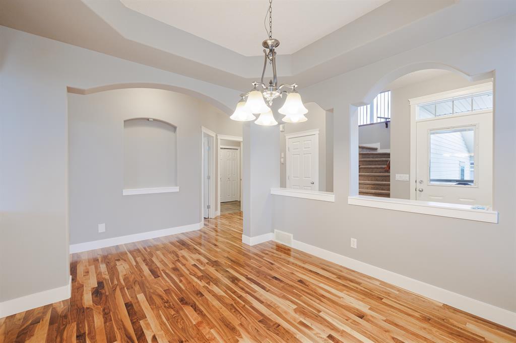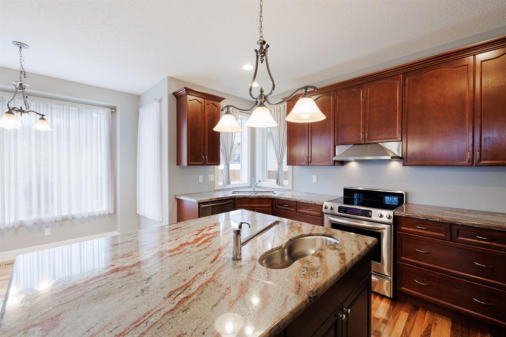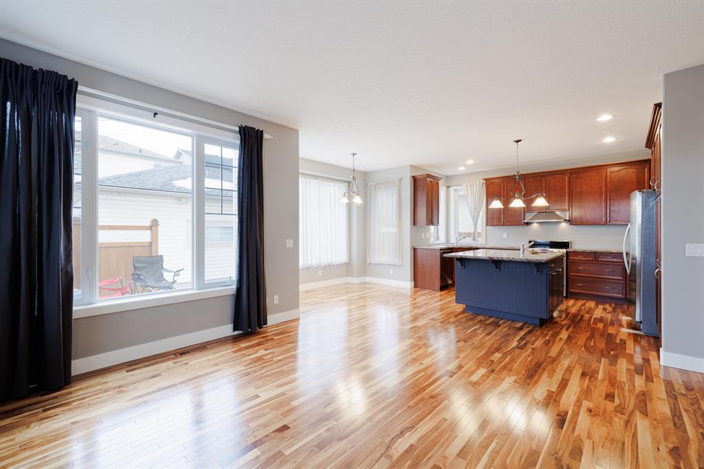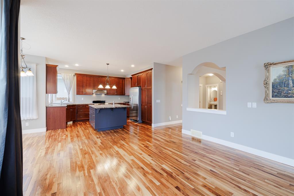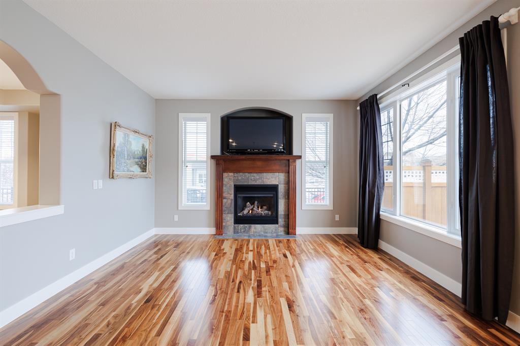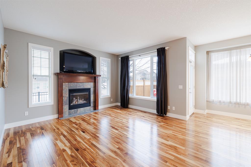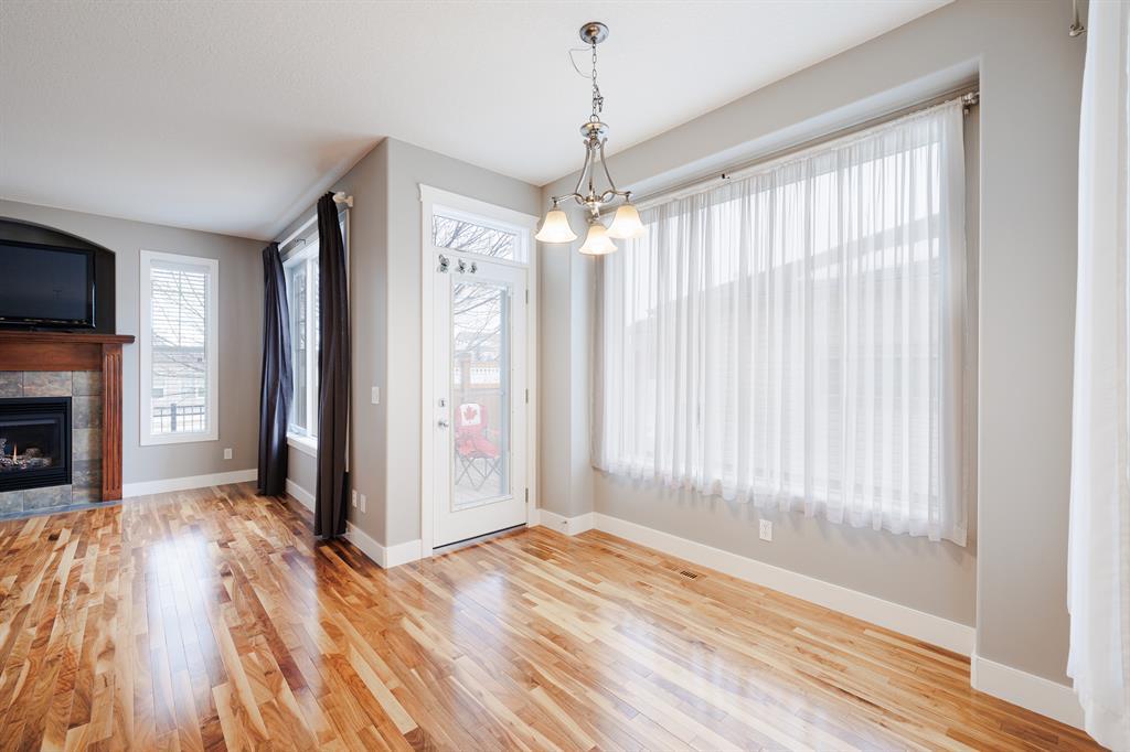 Incredibly upgraded 2 Story home on a corner lot in the desirable community of Evanston! This 2,389 sqft. house features 4 bedrooms, 4 bathrooms, attached double car garage with an additional rear side drive double detached garage and a fully finished basement! Gleaming walnut hardwood floors and high ceilings are featured throughout the main floor. The kitchen features an oversized island, granite countertops, extensive cabinetry, stainless steel appliances including brand-new LG stove and refrigerator and beautiful windows overlooking the backyard space. The living room boasts a feature gas fireplace with a mantle and tile surround and oversized windows to enhance the open concept floor plan. The eating nook provides direct access to the extensive patio area featuring a beautiful mature tree, fully fenced backyard and privacy wall on the patio’s upper level! The main floor is complete with a 2pc powder room, office space and spacious dining room, great for hosting and entertaining guests. The primary suite boasts large windows, and a spa-like 5 pc. ensuite including a double vanity, corner soaker tub, standalone shower and walk-in closet with built-in shelving with a primary retreat space that can be easily converted into a nursery or additional bedroom. The bonus room features oversized windows that flood the space with an abundance of natural light and vaulted ceiling! An additional 2 bedrooms, upstairs laundry room and 4 pc. bathroom complete the upper level. The basement features a gorgeous 4pc bathroom with a spacious walk-in shower, marble tile and heated floors, wet bar, gas fireplace and an incredible wine room with a custom wood door and built-in shelving. The basement is completed with an additional bedroom, hardwood flooring and built-in speakers. Additional features include a water softener, irrigation, central vac with attachments and a heater in the secondary fully finished double car garage. Located across the street from Kenneth D. Taylor School, p arks, and playgrounds! Minutes from all amenities and quick access to Stoney Trail! Pride of ownership is seen throughout! (id:22211)