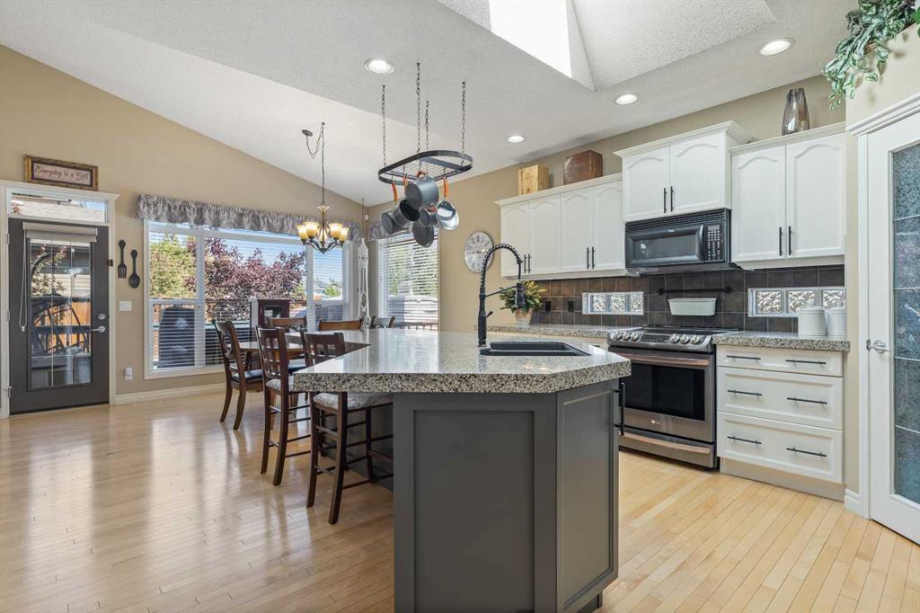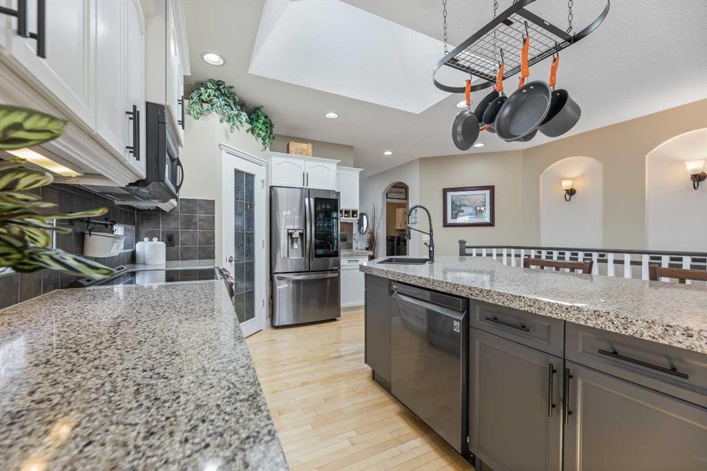 OPEN HOUSE Sat June 10th 12-2pm. Welcome to this perfectly maintained LARGE BUNGALOW with 2459 Sq Ft of total developed living space on a beautiful corner lot with mature landscaping and a 10/10 location in the heart of Royal Oak near schools, parks, the YMCA community centre and just down the road from restaurants and shopping. The main level greets you with pristine hardwood flooring and 9 ft ceilings including a 13 ft vaulted ceiling that provides a sunny OPEN CONCEPT layout connecting the living room with built-in shelving and a gas fireplace, to the dining room and kitchen with a skylight that has been updated including under cabinet lighting, hardware and all new appliances within the last 5 years. Adjacent to the dining room you can step outside to the private and well manicured backyard to relax after a long day, read a book or bbq with the built in bbq gas line. The main floor also hosts the primary bedroom with an ensuite bathroom that has a modern white vanity, a large jet tub, shower and walk-in closet. This large bungalow main floor also rocks main floor laundry, a front room office, A/C, central vacuum, ecobee smart thermostat and a half bathroom. Downstairs you'll be pleased to find that the main living area includes another gas fireplace and plenty of space for entertaining and for use as a family room. The basement also includes two more bedrooms, another full bathroom and a HUGE storage room which is a huge bonus to have plenty of storage. This rare to find bungalow truly is the definition of PRIDE OF HOMEOWNERSHIP, every aspect of this home has been well maintained or updated - it's refreshing to see a bungalow style home in great shape and with such an excellent location at this price point! (id:22211)