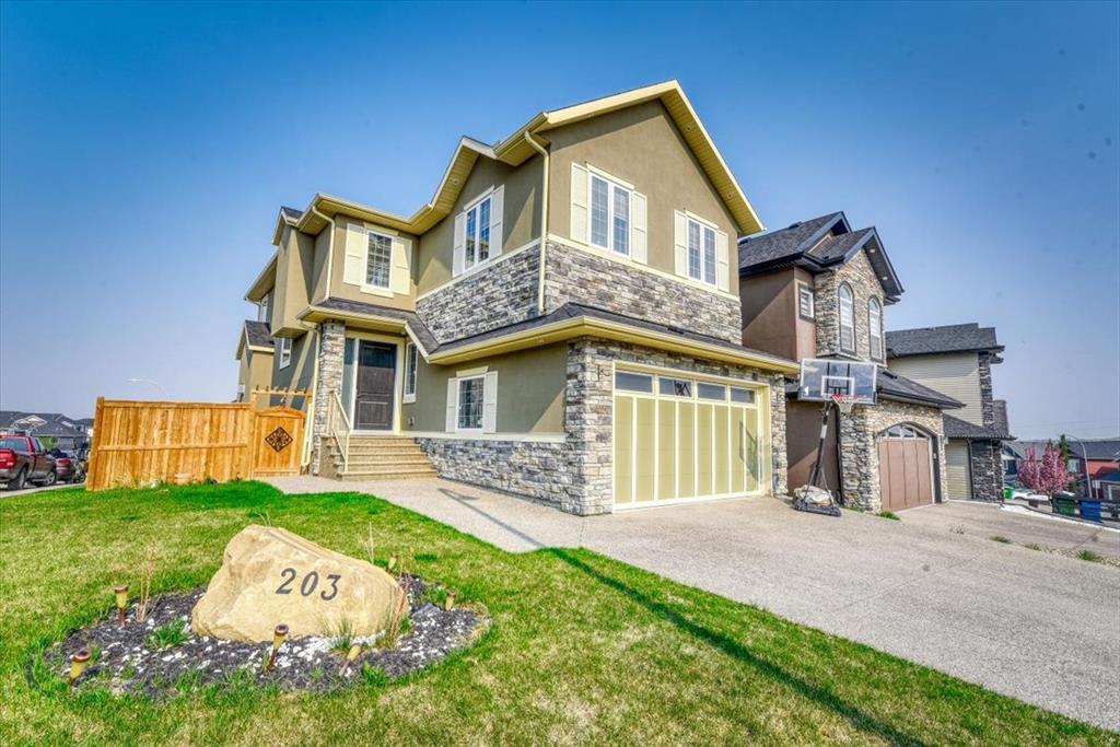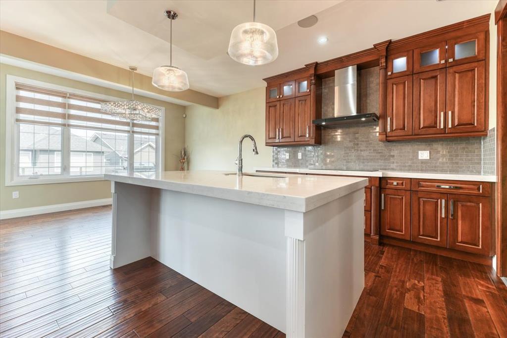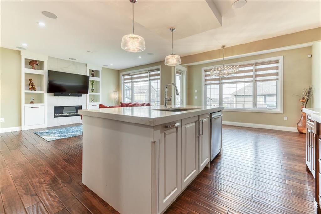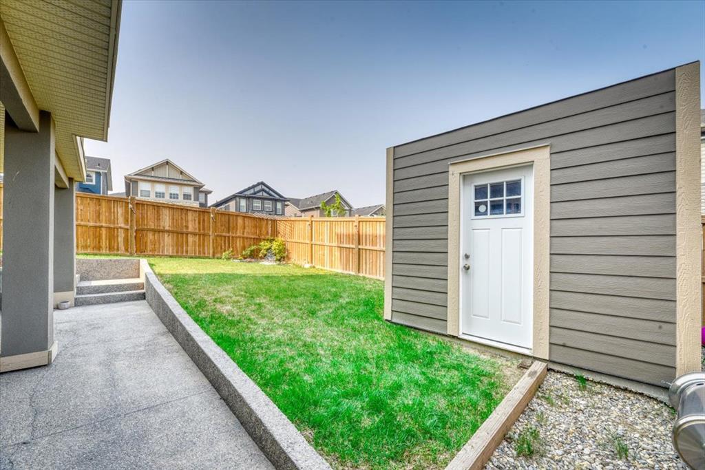 One of the Most Impressive Homes in Nolan Hill! This Custom Built Home was designed with such thought and care everything was upgraded and added. I will start with the list of custom upgrades and then will discuss the ever so thought out layout. This home has all Custom Wood Doors, Designer Quality Quartz (3 inch in the Kitchen), Custom Wood (in the Kitchen, Bathrooms, Laundry Room, Wet Bar, Spice Kitchen) Cabinets, 9 foot Ceilings (all 3 levels), Custom Spice Kitchen with sealed door, 5 zoned b/in Surround Sound, Central Air, Central Vac, JENNAIR Appliances, Luxury Grade Carpets, Lux 3 paned Windows, Oversized Heated and Fully Finished Garage and the list goes on.... This home truly does have all the Bells and Whistles. The layout of the home is very welcoming. One walks into a large entry perfect for welcoming guest. The office is located in the front of the home along with the mud room and entrance to the Spice Kitchen. This home has a gorgeous 'Chef Inspired' main kitchen with a gorgeous island and to the ceiling cabinets. The Open Concept Kitchen flows to the dining room and spacious living room with oversized windows. The upper level boasts a huge Bonus room with a Cathedral ceiling and built in cabinets, a full sized laundry room, 2 spacious guest/kids bedrooms, main bath and a Huge Primary Bedroom with a Spa Like 5pc Ensuite and Spacious Walk In closet with b/in Cabinets/organizer. The Primary Bedroom has the most Spectacular Prairie views! The WalkOut level has a beautiful wet bar with wine fridge and dishwasher, tons of space for entertaining in the rec space, a large bedroom and a large 3pc bath. Outside the yard is nicely landscaped and there is a covered aggregate concrete patio area and a huge storage shed. Plenty of space to enjoy on this corner lot. This home is truly a beautiful home with all the upgrades one could want! Located steps away from a great kids park and plenty of walking paths also add to the desirability of this home. (id:22211)