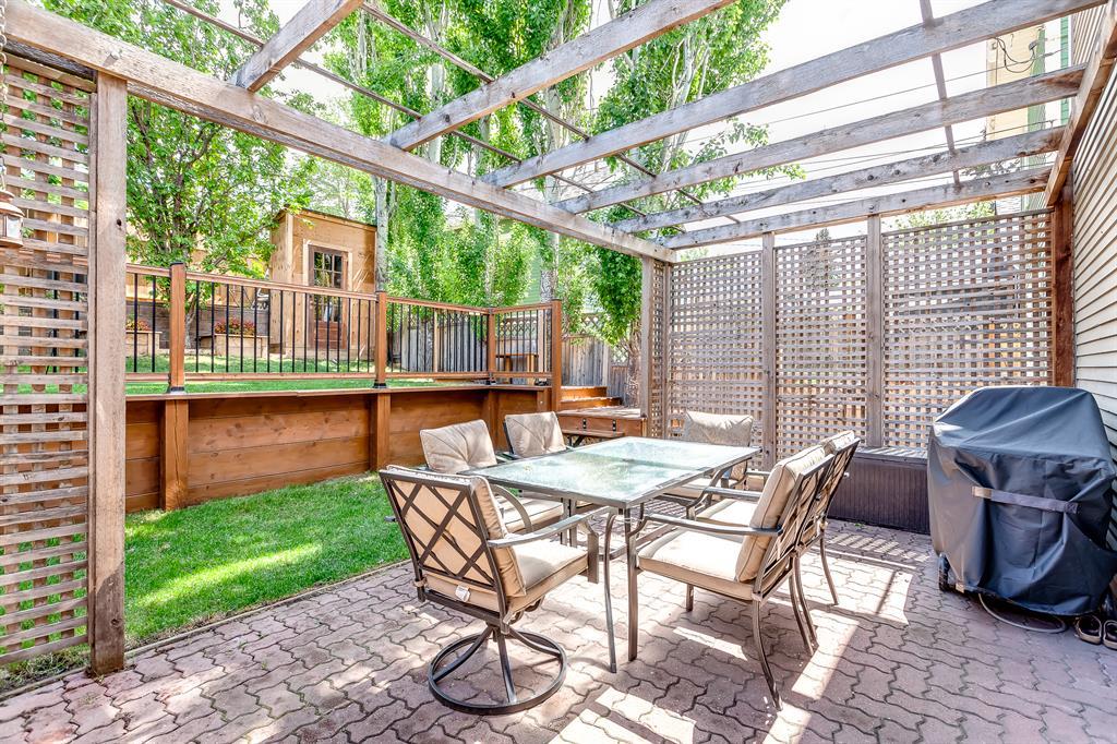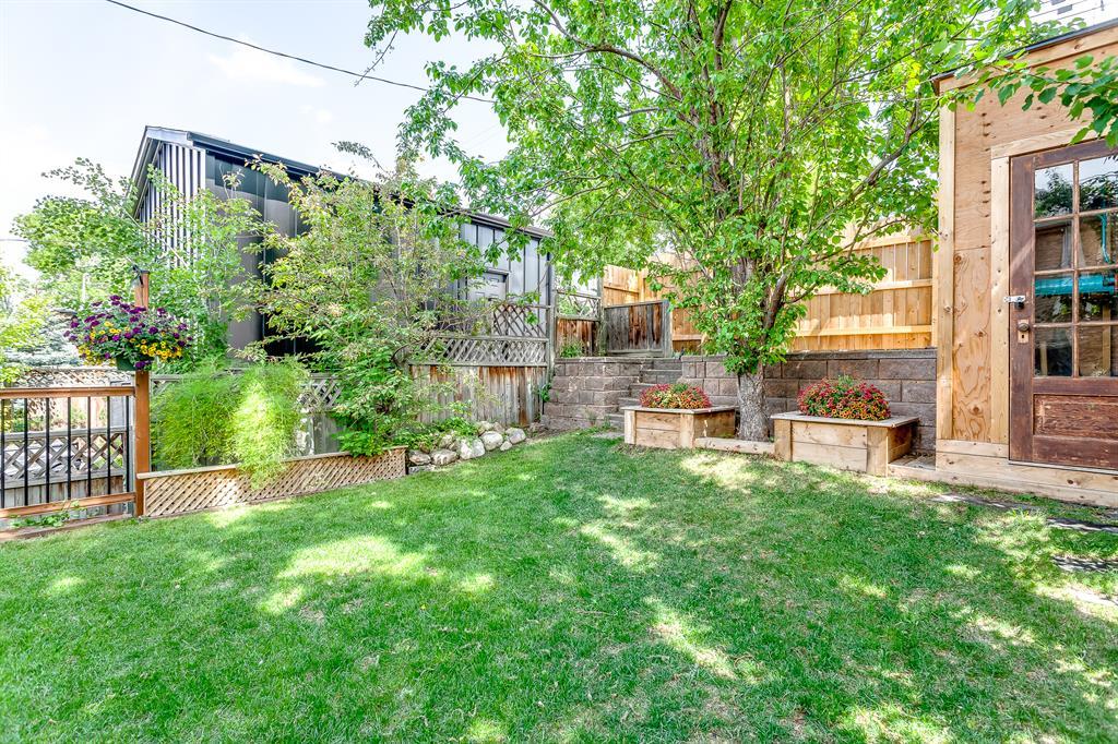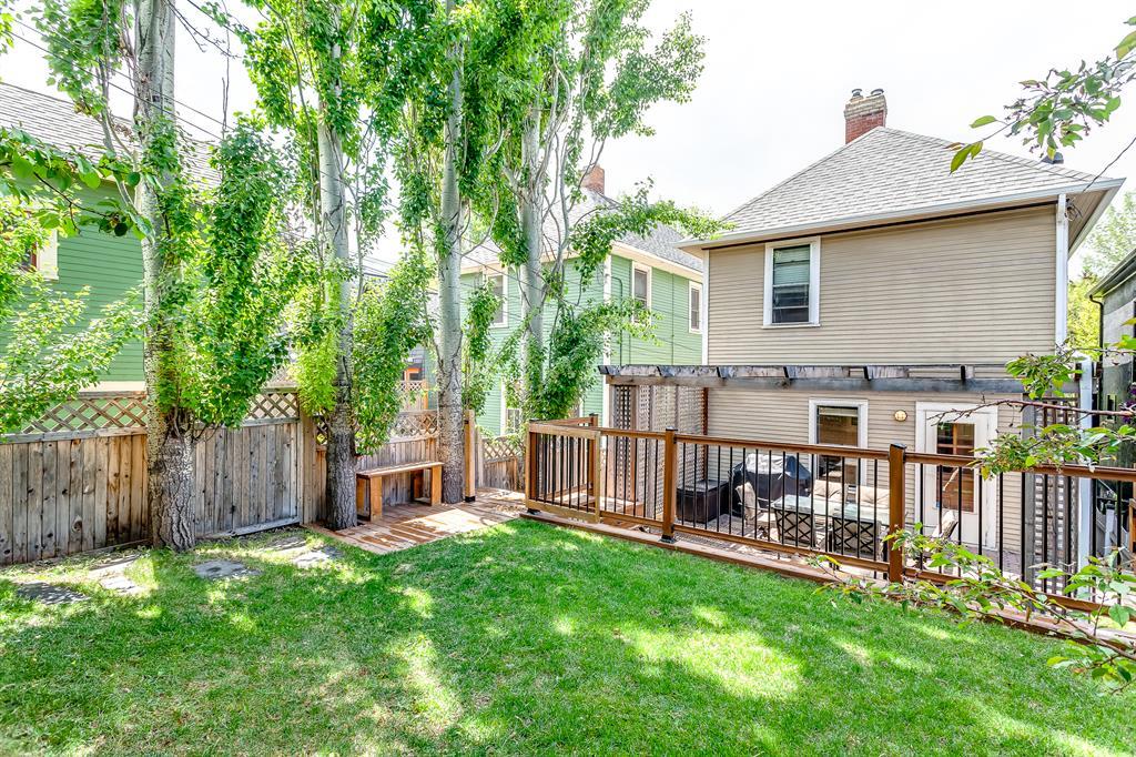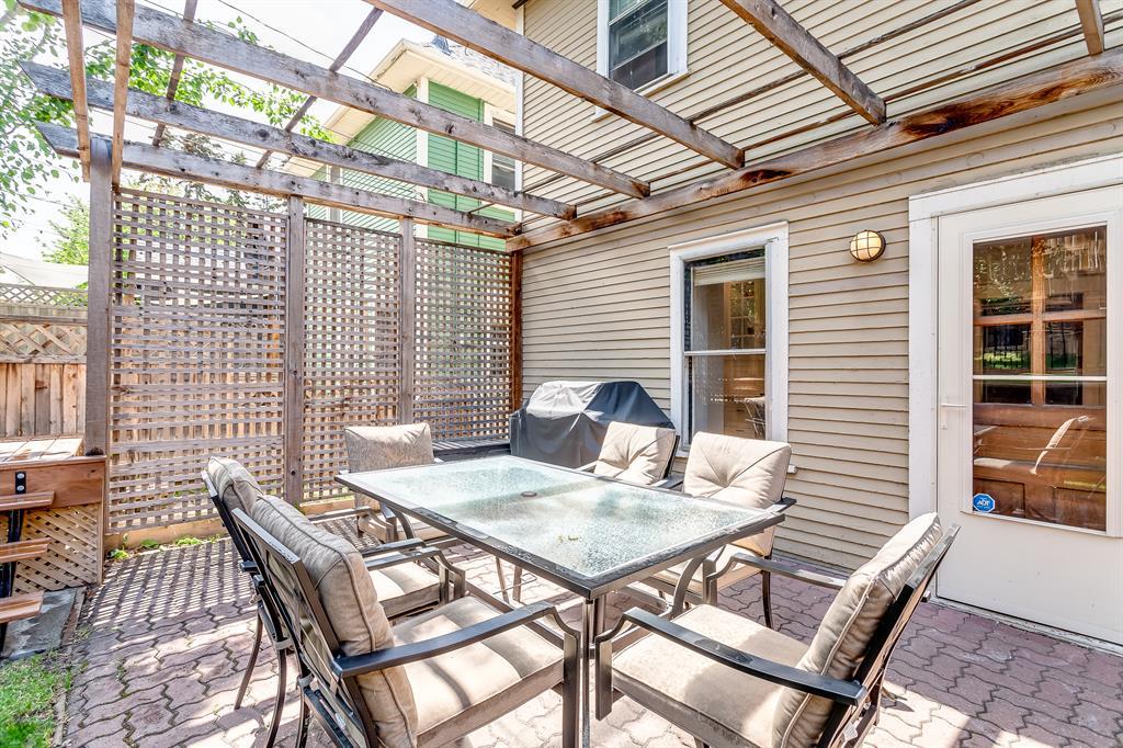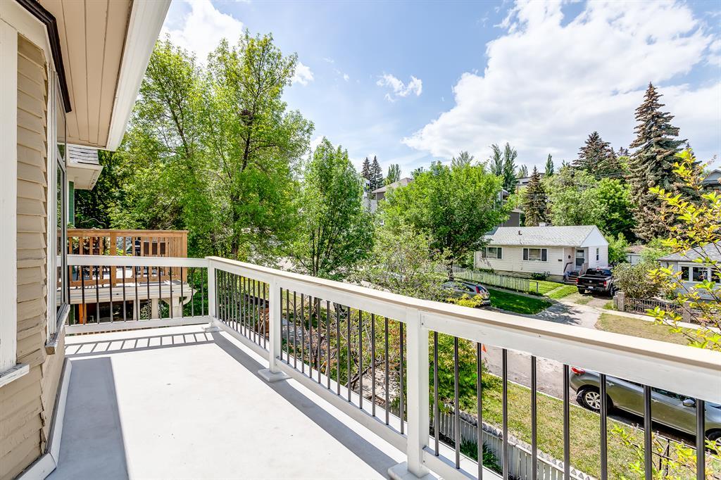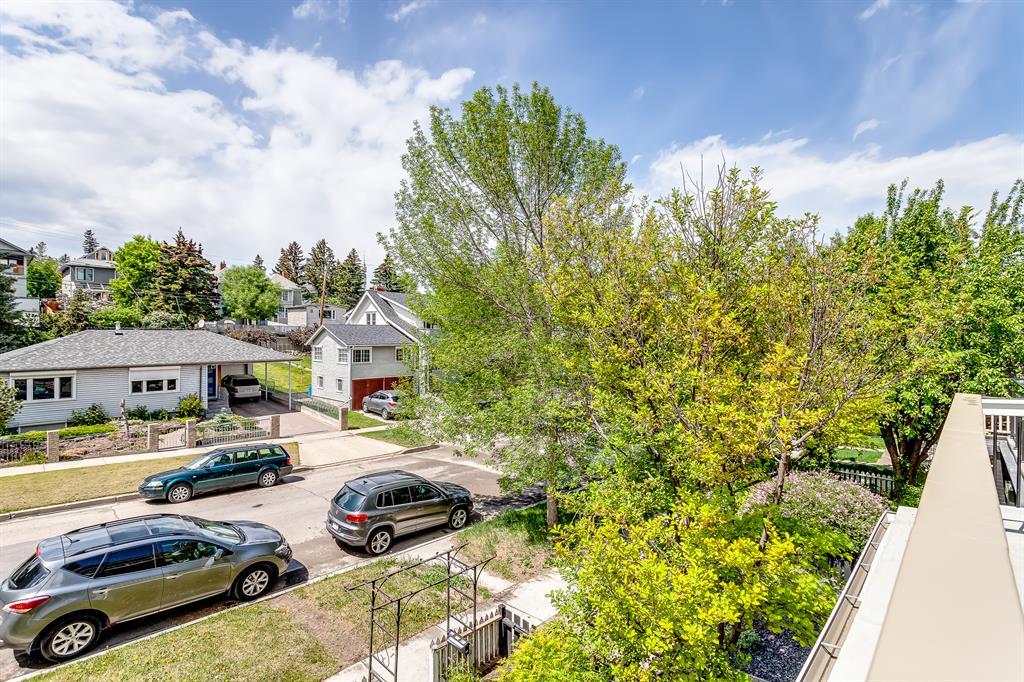 | Updated Kitchen | Quiet, Tree-lined Street| Landscaped Backyard | Welcome to the heart of Bankview. This 3-bedroom, 2-bathroom charmer offers a perfect blend of comfort and character. The modern, renovated kitchen is a chef's delight, with pristine quartz countertops, stainless steel appliances, a gas range and abundant cabinet space. This bright home offers several options for relaxing and entertaining, including a large dining room with well-crafted coffered ceilings and adjoining living room connected by original pocket doors. Upstairs, you will find a large primary bedroom with a full 3-piece ensuite and direct access to a west-facing balcony, providing privacy and serene sunset views. Experience outdoor tranquility on your charming front porch or in the beautifully landscaped and tiered backyard, shaded by mature trees for those hot summer days. The property's prime location is only minutes away from downtown, schools, the river pathways, multiple city parks, shops and night life, making it an ideal home for those seeking urban convenience and an active lifestyle in a tranquil setting. This home represents an amazing opportunity to live on a quiet, single-home-lined street with a true community feel in the inner city. Add in the great-sized backyard and no condo fees, and you will need to act quickly to secure this rare find. Your dream home awaits! (id:22211)