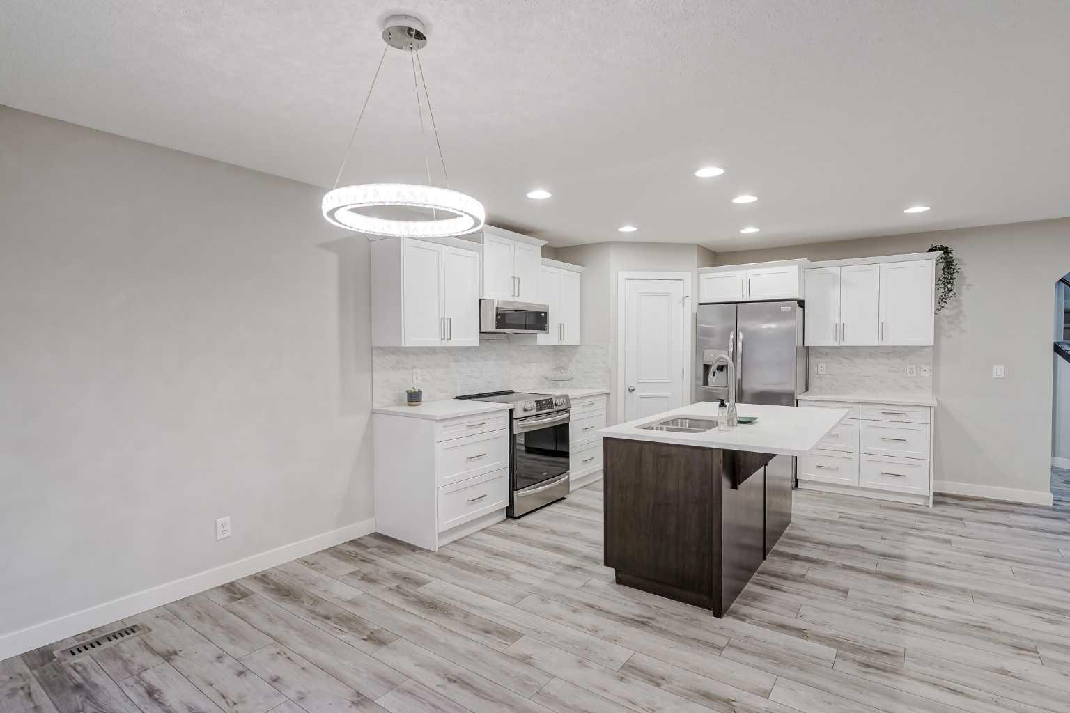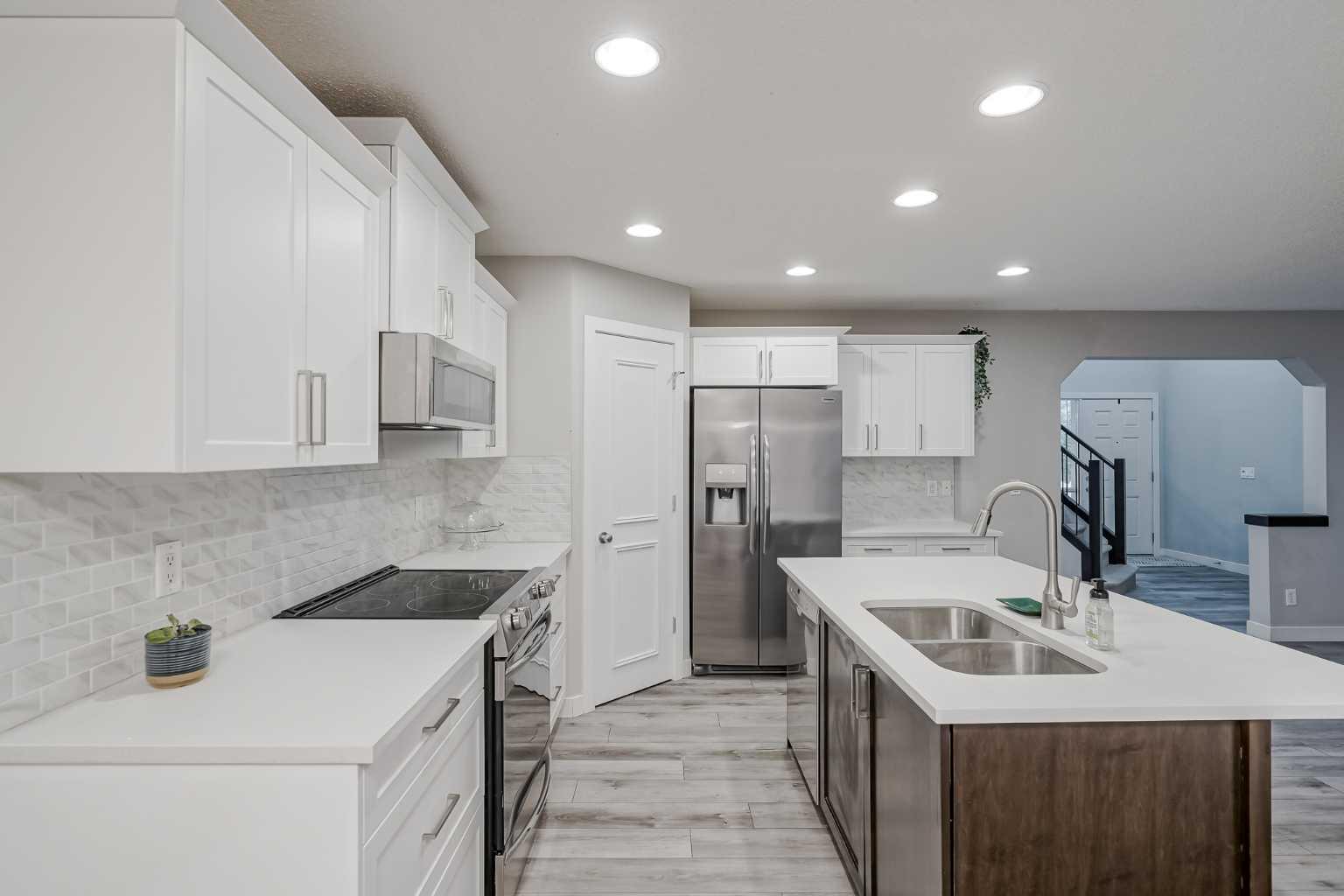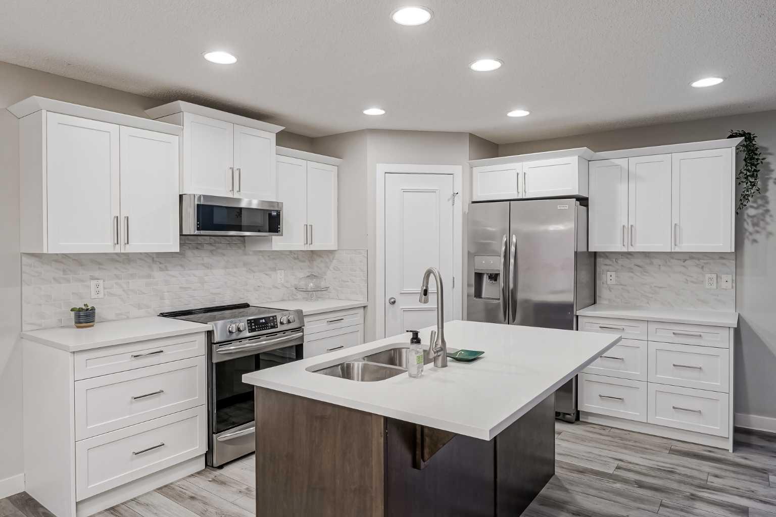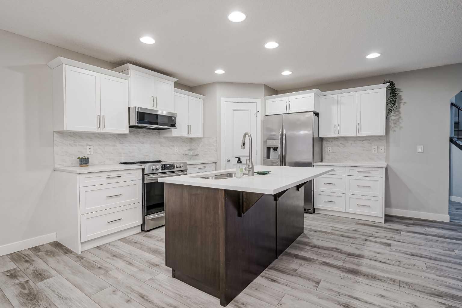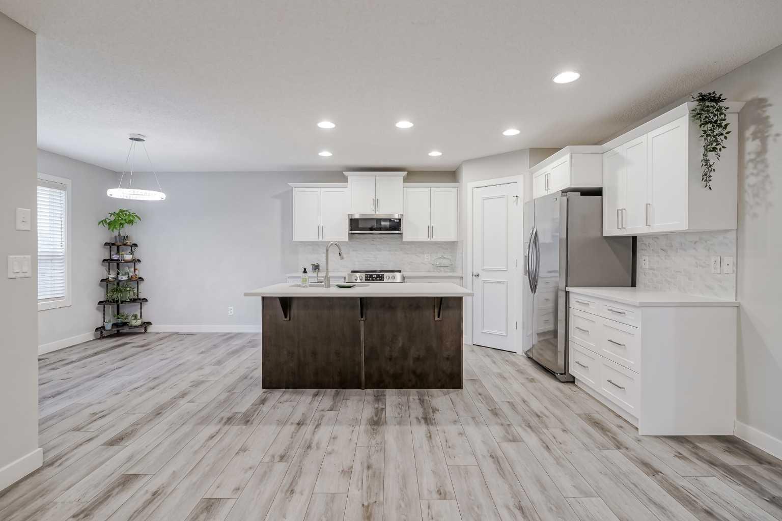Get ready to fall in love with this beautiful home in the highly sought-after community of Cranston! Imagine waking up to sunshine in your south-facing backyard, stepping out onto your brand new deck, and having greenspace and walking paths right at your doorstep – it's an outdoor enthusiast's dream! Inside, the main floor welcomes you with an open, inviting layout and gleaming laminate flooring. The spacious, newer kitchen is a true highlight, boasting sleek stainless steel appliances, lots of cabinets, a large island, quartz countertops and ample room for all your culinary adventures. Convenience is key with main floor laundry and a handy half bath. Upstairs, a versatile bonus room offers extra space for family fun or a quiet retreat. You'll find three comfortable bedrooms, including a primary suite with a luxurious 4-piece ensuite, plus a well-appointed 4-piece main bath. The excitement continues in the fully finished walk-out basement, where a large family room provides endless possibilities for entertainment and relaxation. A private bedroom with its own 3-piece ensuite offers a perfect guest haven or a teenager's retreat, with direct access to the private backyard, complete with a concrete patio and plenty of room for play and gardening. Notable updates include Central Air 2024, Hot water tank 2022, new roof 2022 and new appliances and flooring on the main floor 2021. And the location? It's simply unbeatable! Enjoy the convenience of nearby shopping, local restaurants, and charming coffee shops. With three schools within walking distance, Fish Creek Ridge just moments away for incredible outdoor adventures, and easy access to Deerfoot and Stoney Trail, everything you need is at your fingertips. Plus, the South Campus hospital is just minutes away for peace of mind. This is more than just a house; it's the lifestyle you've been dreaming of! Come and experience it for yourself!