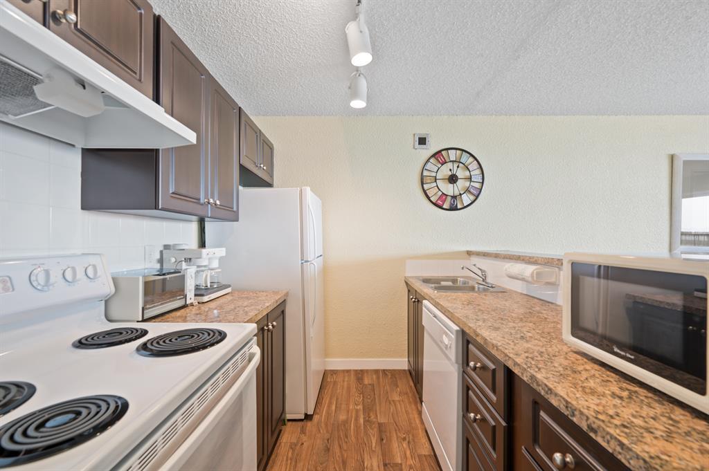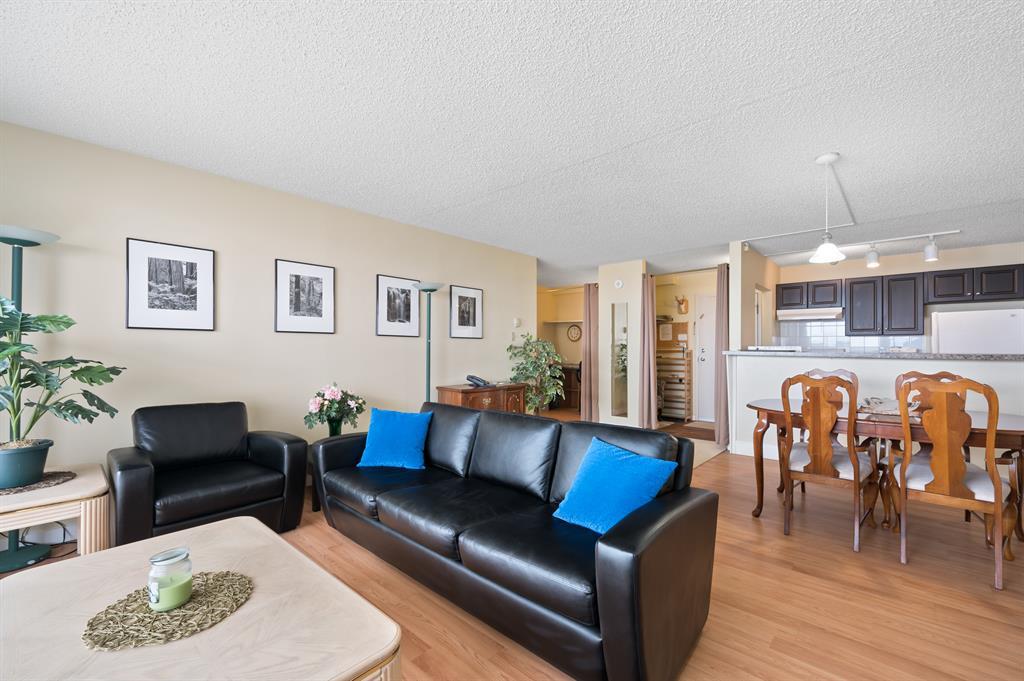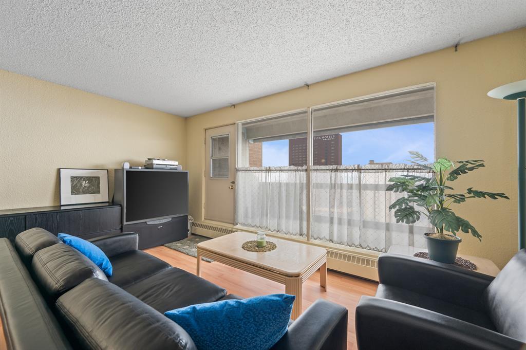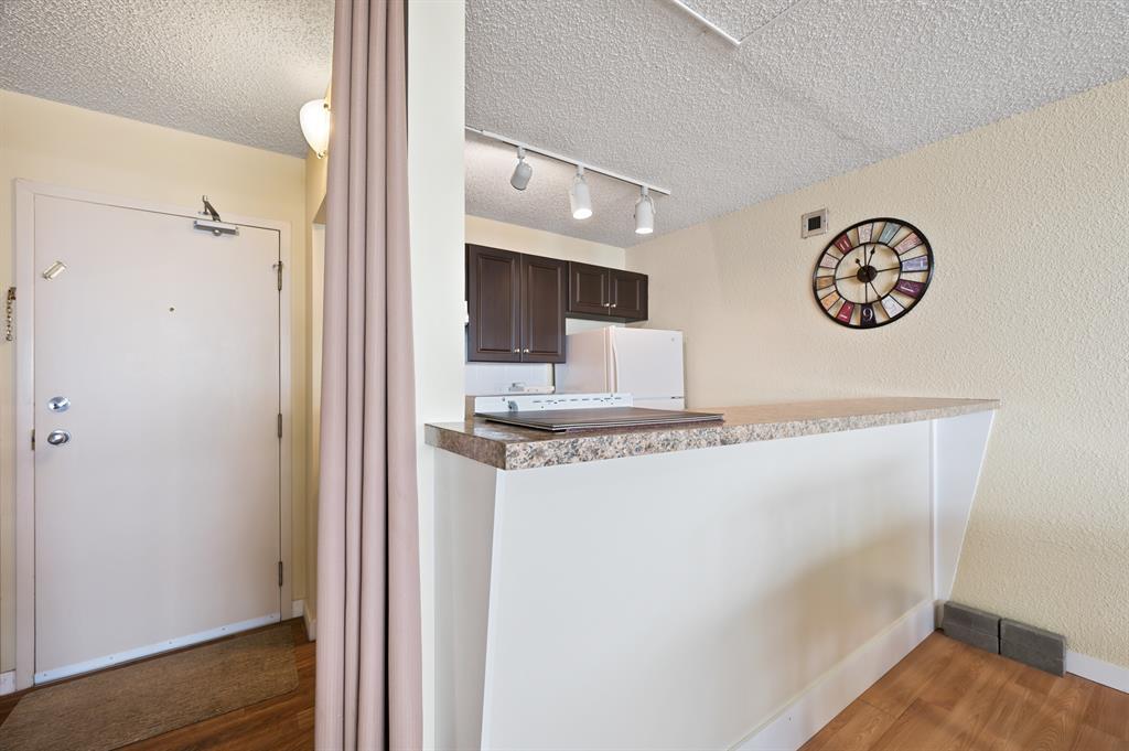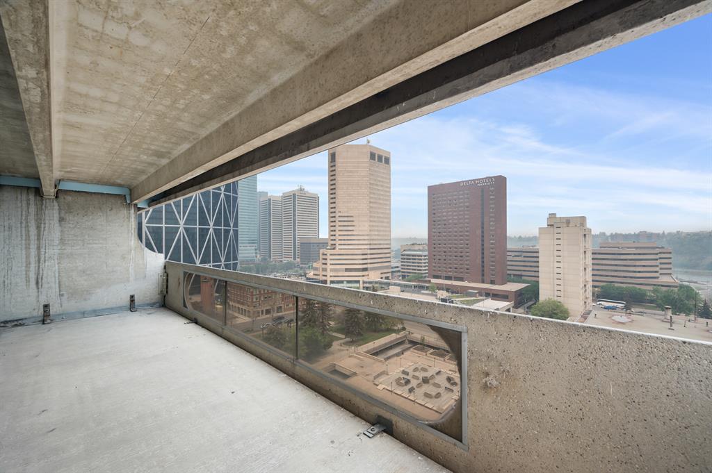 Welcome to Rocky Mountain Court in the heart of Downtown Calgary. This one bedroom, one bathroom, NE end unit condo has been kept in pristine condition with spectacular river and bridge views. This 16th floor unit has a bright and open floorplan and an abundance of light coming in from the large windows facing the balcony. The kitchen boasts ample cabinet space and a large breakfast eating bar. The kitchen is open to a good sized dining and living area with a door leading out the the large, full length balcony that boasts beautiful views of the Bow River and bridge. Large main bedroom and a 4 piece main bathroom. The den just across from the bedroom is perfect for an office space or extra storage. The unit has one assigned parking stall in a secure parkade. The complex is very secure with an on-site manager and security personnel. The building has laundry facilities on every level, fitness center with a sauna, a basketball court, and access to a beautiful rooftop patio. Steps from the Central Library, restaurants, shopping, and transportation. Ideal for the single professional, investor, student, or couple. Furniture is available and ideal for a furnished rental. Great location, exceptional value! (id:22211)