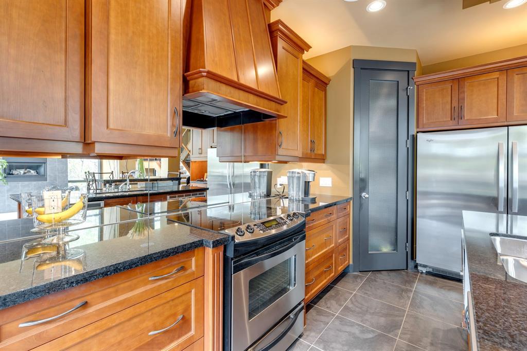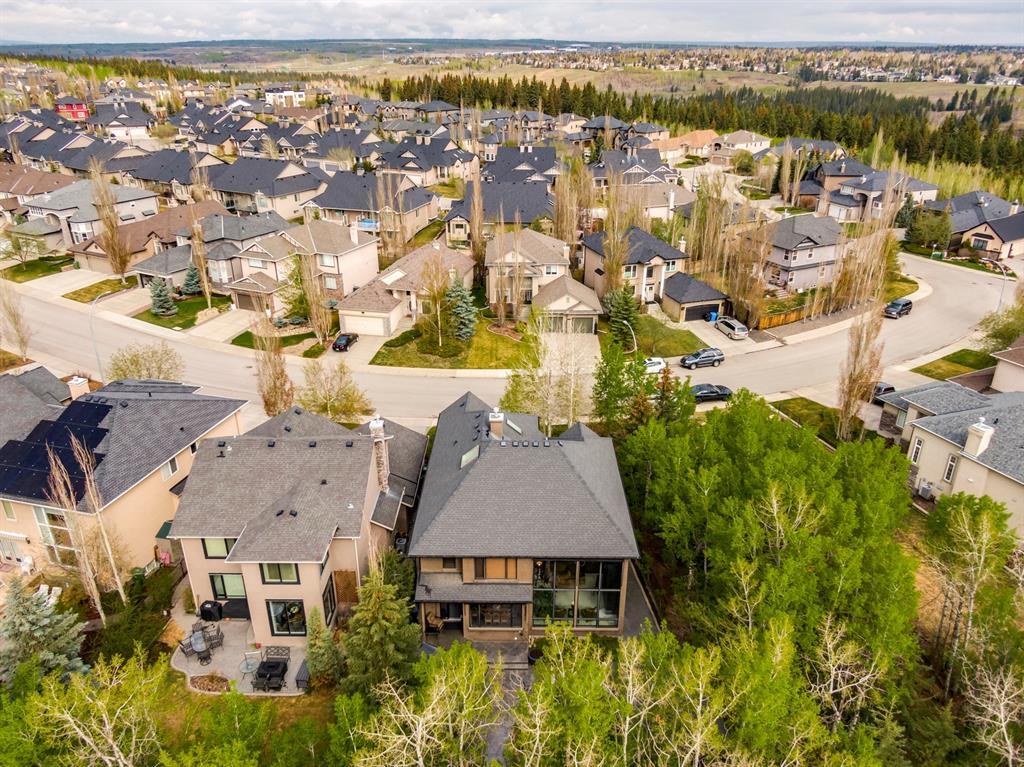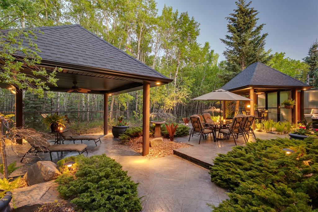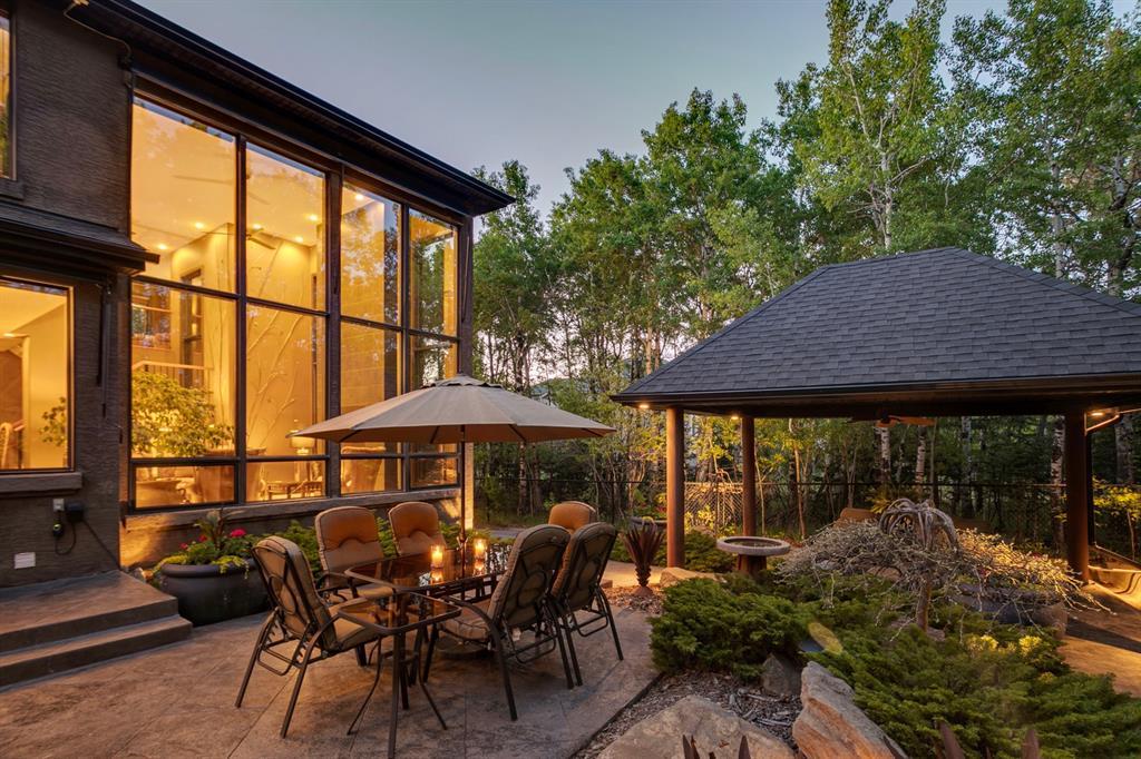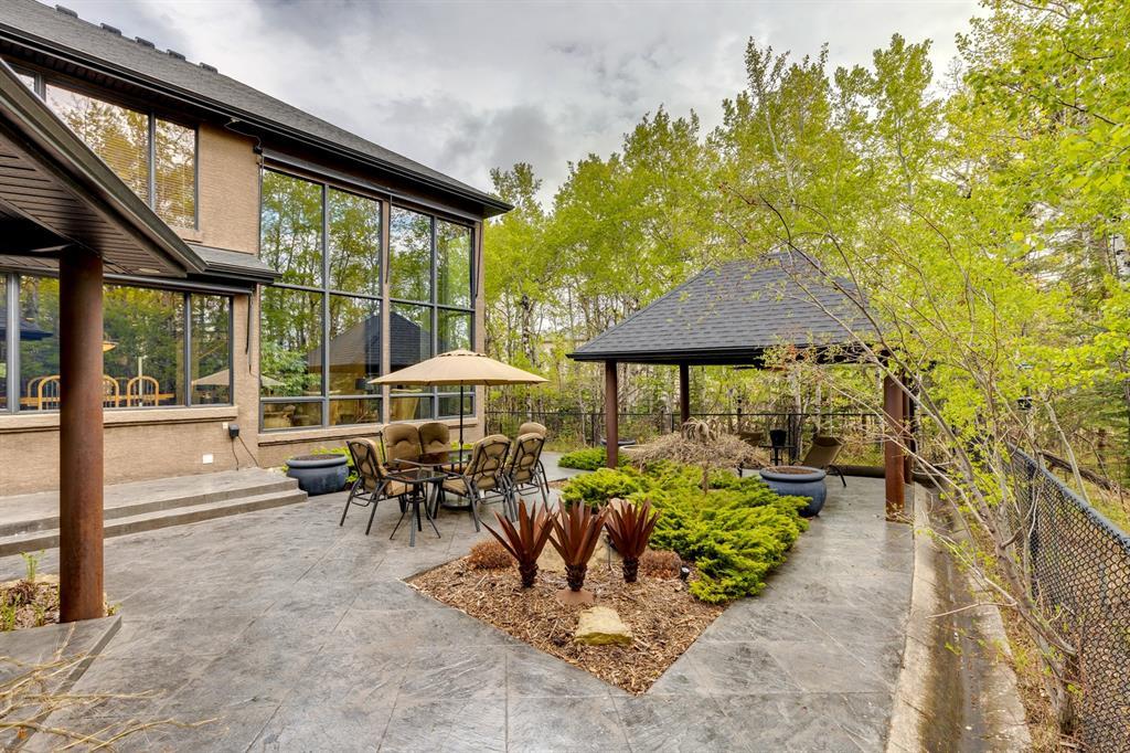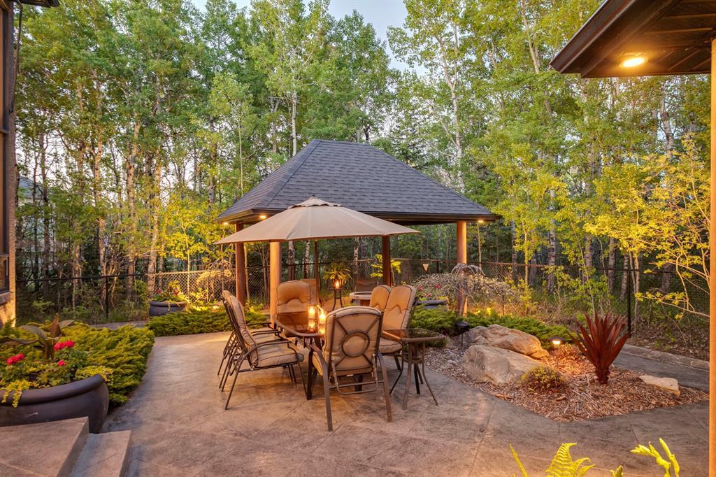 A Sam award finalist and featured in Avenue Magazine this home offers Over 4300 sq' of developed living space in this absolutely stunning west coast designed two storey on one of the best lots in Evercreek Bluffs Estates! Total privacy and world-class landscaping will take your breath away as you view this rare opportunity. Backing and siding onto a heavily wooded forest with direct access to Fish Creek Park, the privacy and development is second to none. Massive stamped concrete patios, two gazebos, both with garden lighting and energized outlets, and summer fans for the ultimate in outdoor living. Enjoy the grandeur of a massive 11' foyer, imported tile floors, a two storey ceiling in the great room with custom window coverings , and floor-to-ceiling windows that frame the stunning yard. Upgraded kitchen has 42" cabinets trimmed in moldings, quality stainless steel appliances, a "split island", granite countertops, and a mirror backsplash. Solid core 8' interior doors, estate casing and baseboard, open riser staircase with step lights, upper family room, two bedrooms up could easily be converted to three. Tile floors, new designer carpets, professional basement development featuring space for a theatre room, fitness, rec/games room, bedroom full bath, and storage. Upscale finishing throughout, Power Awning, exposed aggregate driveway and walkways, new A/C units, new roof, skylights, upgraded lighting, and in immaculate condition throughout. A one-of-a-kind location with a stunning one-of-a-kind custom-built beautiful family home! (id:22211)
