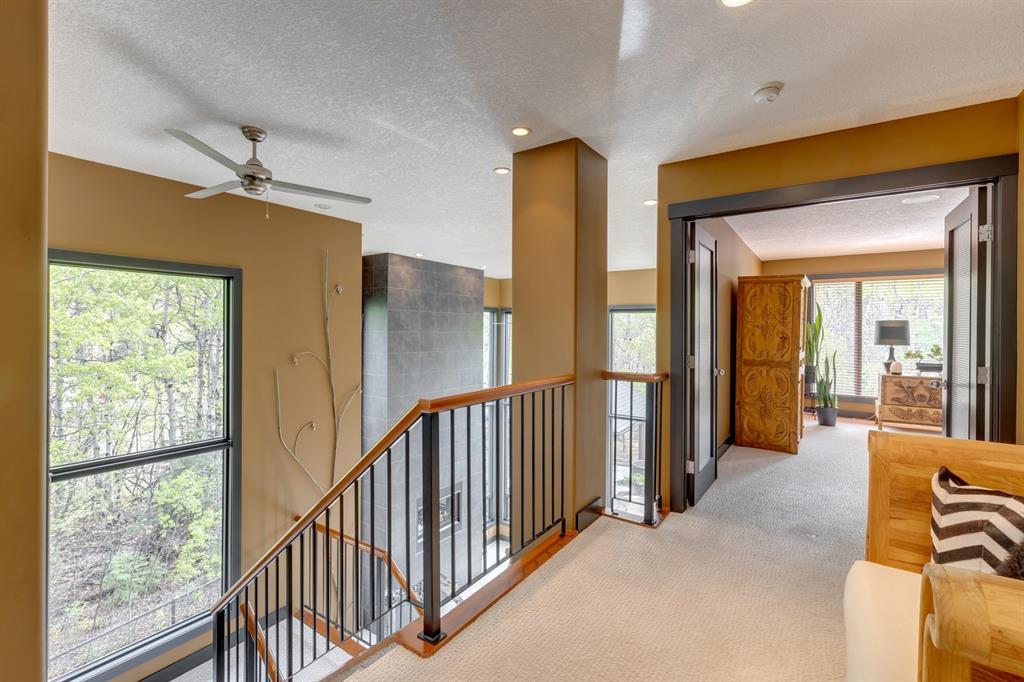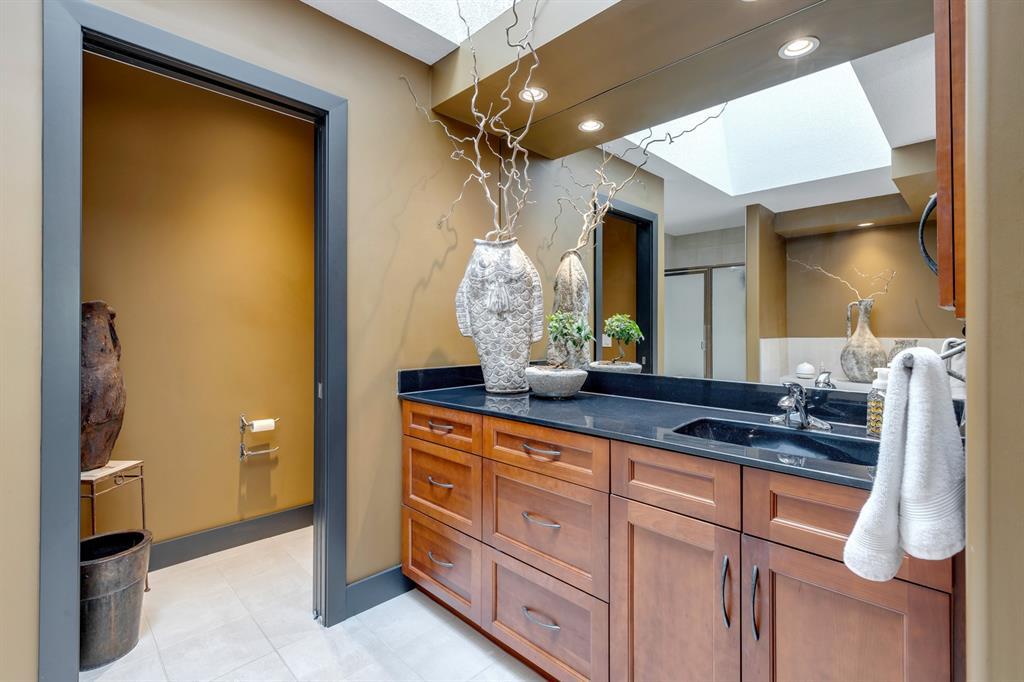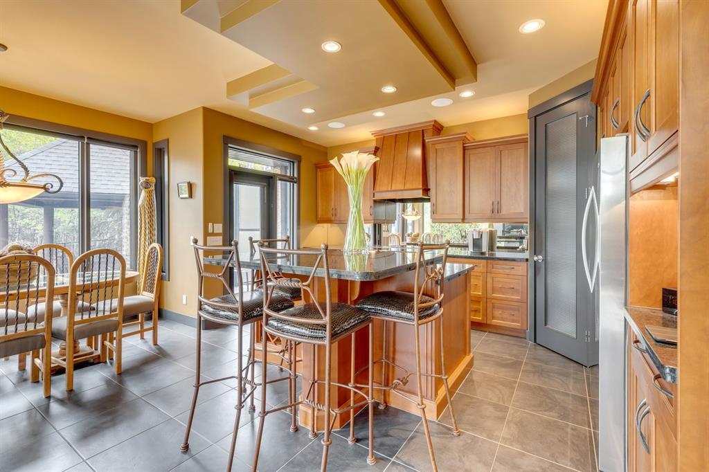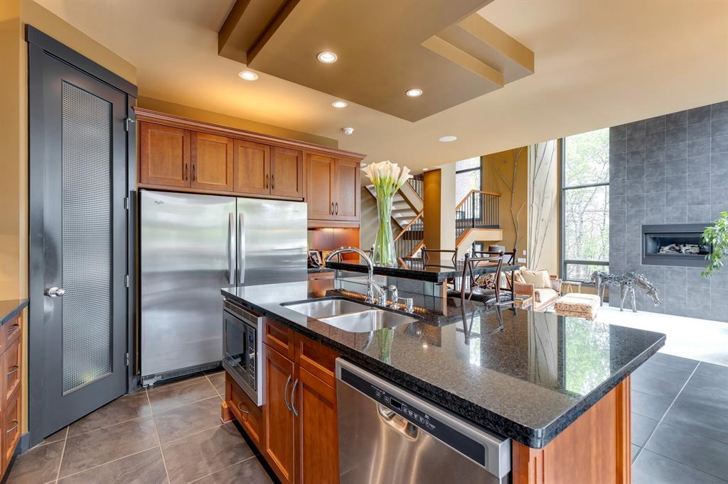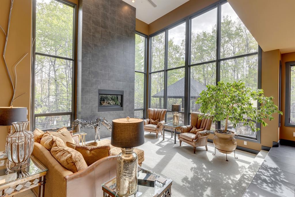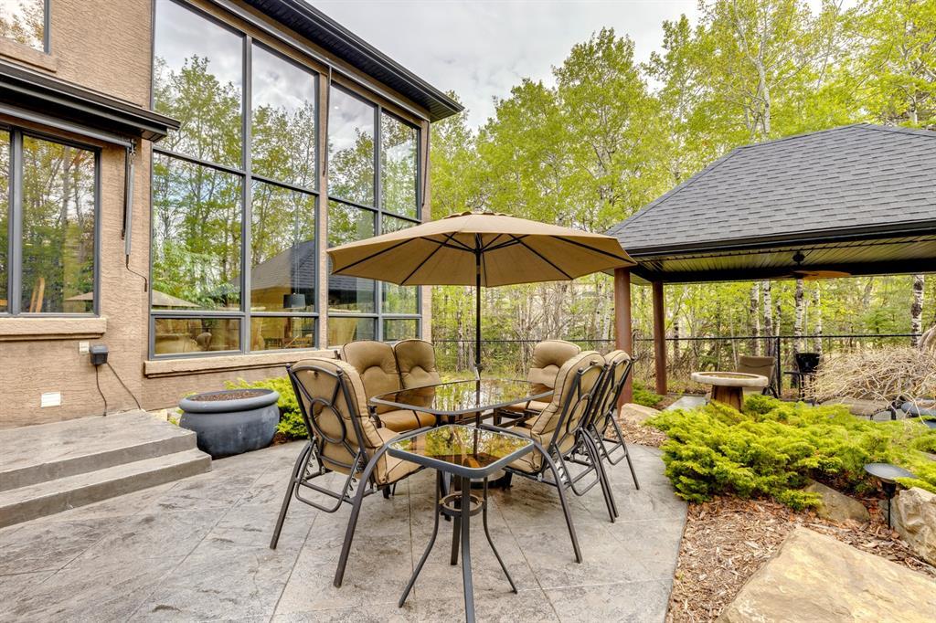 A Sam award finalist and featured in Avenue Magazine this home offers Over 4300 sq' of developed living space in this absolutely stunning west coast designed two storey on one of the best lots in Evercreek Bluffs Estates! Total privacy and world-class landscaping will take your breath away as you view this rare opportunity. Backing and siding onto a heavily wooded forest with direct access to Fish Creek Park, the privacy and development is second to none. Massive stamped concrete patios, two gazebos, both with garden lighting and energized outlets, and summer fans for the ultimate in outdoor living. Enjoy the grandeur of a massive 11' foyer, imported tile floors, a two storey ceiling in the great room with custom window coverings , and floor-to-ceiling windows that frame the stunning yard. Upgraded kitchen has 42" cabinets trimmed in moldings, quality stainless steel appliances, a "split island", granite countertops, and a mirror backsplash. Solid core 8' interior doors, estate casing and baseboard, open riser staircase with step lights, upper family room, two bedrooms up could easily be converted to three. Tile floors, new designer carpets, professional basement development featuring space for a theatre room, fitness, rec/games room, bedroom full bath, and storage. Upscale finishing throughout, Power Awning, exposed aggregate driveway and walkways, new A/C units, new roof, skylights, upgraded lighting, and in immaculate condition throughout. A one-of-a-kind location with a stunning one-of-a-kind custom-built beautiful family home! (id:22211)
