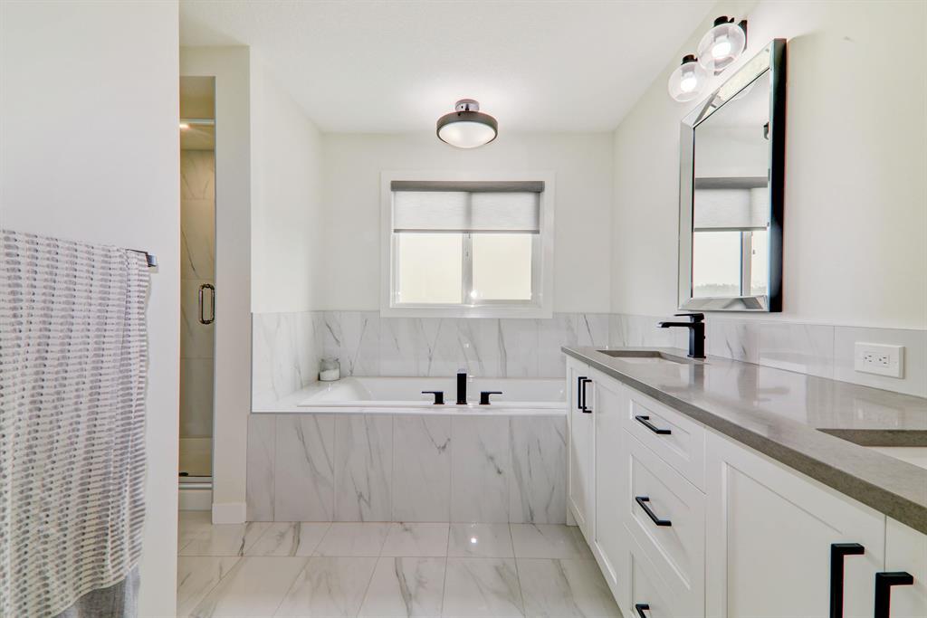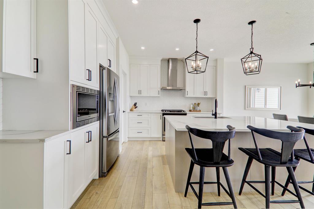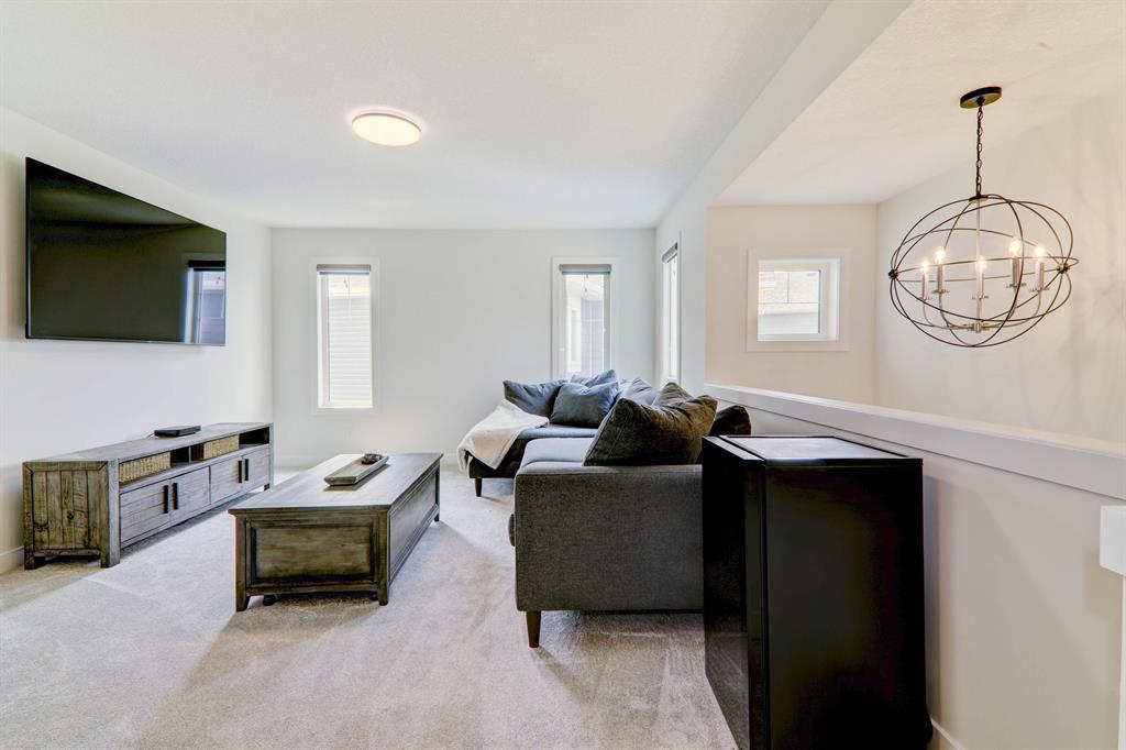 Live in the family friendly community of Legacy close to plenty of parks, paths, schools, shops, & amenities. This home is offering almost 3,100 developed sq ft and is situated in a quiet cul-de-sac on a massive pie shaped lot! A meticulously maintained like new Calbridge home offering 9' knockdown ceilings, and hard surface flooring throughout the main floor. This open concept home has a large chef inspired kitchen with cabinets to the ceiling, timeless herringbone tile backsplash, SS appliances including GAS STOVE, gorgeous quartz counters and a massive island meant for ENTERTAINING! This opens to the bright dining room with direct access to your Southeast backyard. This yard could be your very own outdoors oasis with a stamped concrete patio, BBQ gas line, fully landscaped and fenced including an additional poured hot tub pad with wiring. Adjacent to the dining room is a spacious living room featuring a gas fireplace with mantle. The main floor is complete with a large office, ½ Bath and mudroom including custom bench and built in detail. As you head upstairs you will notice the elegant railing. Enjoy a central bonus room, 4pc main bath with stone counters, a laundry room including Electrolux washer and dryer and two well sized bedrooms down and away. Creating a sanctuary for the primary suite. This spacious room has a boxed up tray ceiling detail and includes a luxurious ensuite with a fully tiled shower including built in detail, massive soaker tub, dual sinks with comfort height cabinets and stone counters, a private water closet, and a WIC with built-ins. The lower level is fully developed with an expansive rec room including a bar, 4th bedroom, and a 4pc bath with stone counters. This home is walking distance to the tranquil 300 acres of environmental reverse, minutes from South Health Campus, close to 4 different golf courses and has easy access downtown with Stoney Trail, MacLeod and Deerfoot. Schedule your private showing today! (id:22211)
