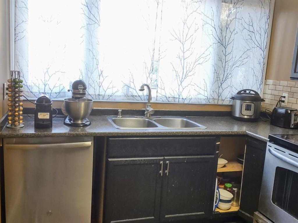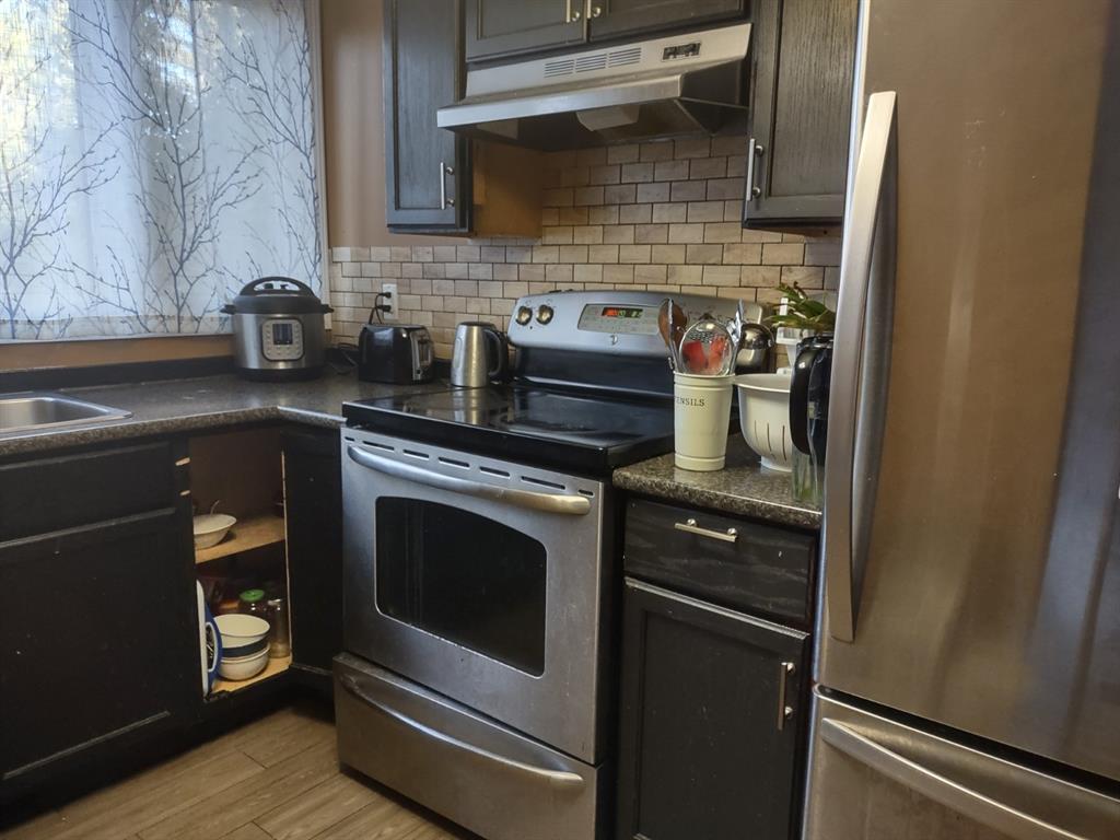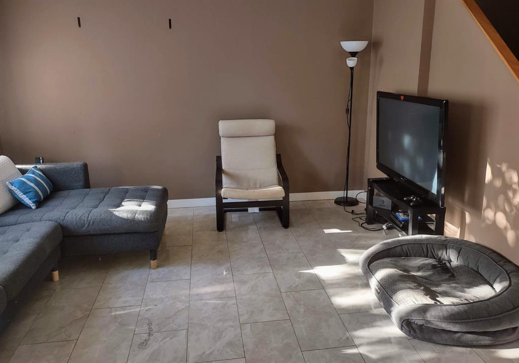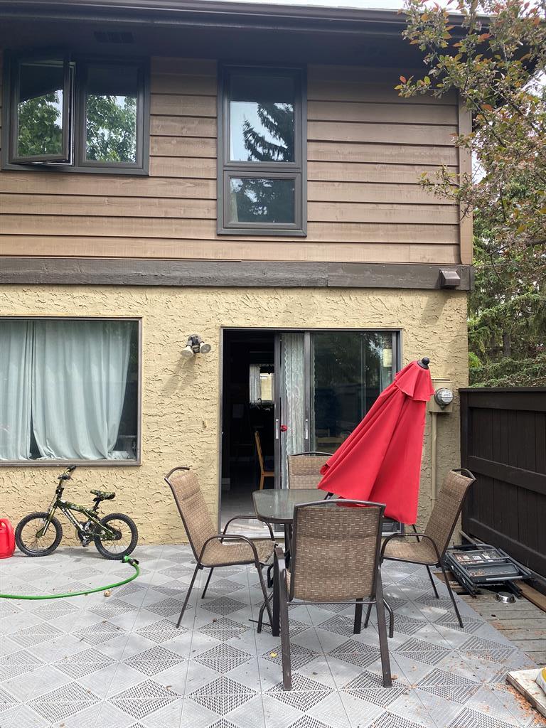 Location Location Location .......Beautiful, well-designed, end-unit townhouse condo with two bedrooms plus a spacious loft, could be a third bedroom. Large foyer with generous closet and adjacent two-piece bath. Spacious inviting living room with a large west window. Dining area with sliding patio doors to the private fenced patio area with interlocking deck tiles, wood storage cabinet, barbecue, and mature trees. The kitchen features an abundance of cabinets, plus newer appliances and new taps. Spacious sunny eating area with full wall built-in cabinets and counter, plus a new large east-facing window. Huge master bedroom with two east windows and generous closet. Large second bedroom and four-piece bath. The basement is fully finished with a bedroom, living room, and full washroom, men's cave, hobby area, and spacious storage and laundry area. Newer furnace and newer dual flush toilets. Newer windows throughout except for the living room and a small window in the master bedroom. Newer front door. Well-managed complex, across the street from Oakmoor shopping center, only 5 minutes to Stony Trail, walking distance to Glenmoore Park and many more parks, very close proximity to Schools and LOW condo fee............................. (id:22211)